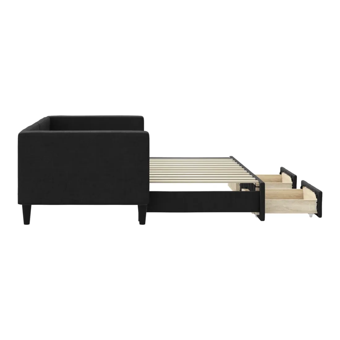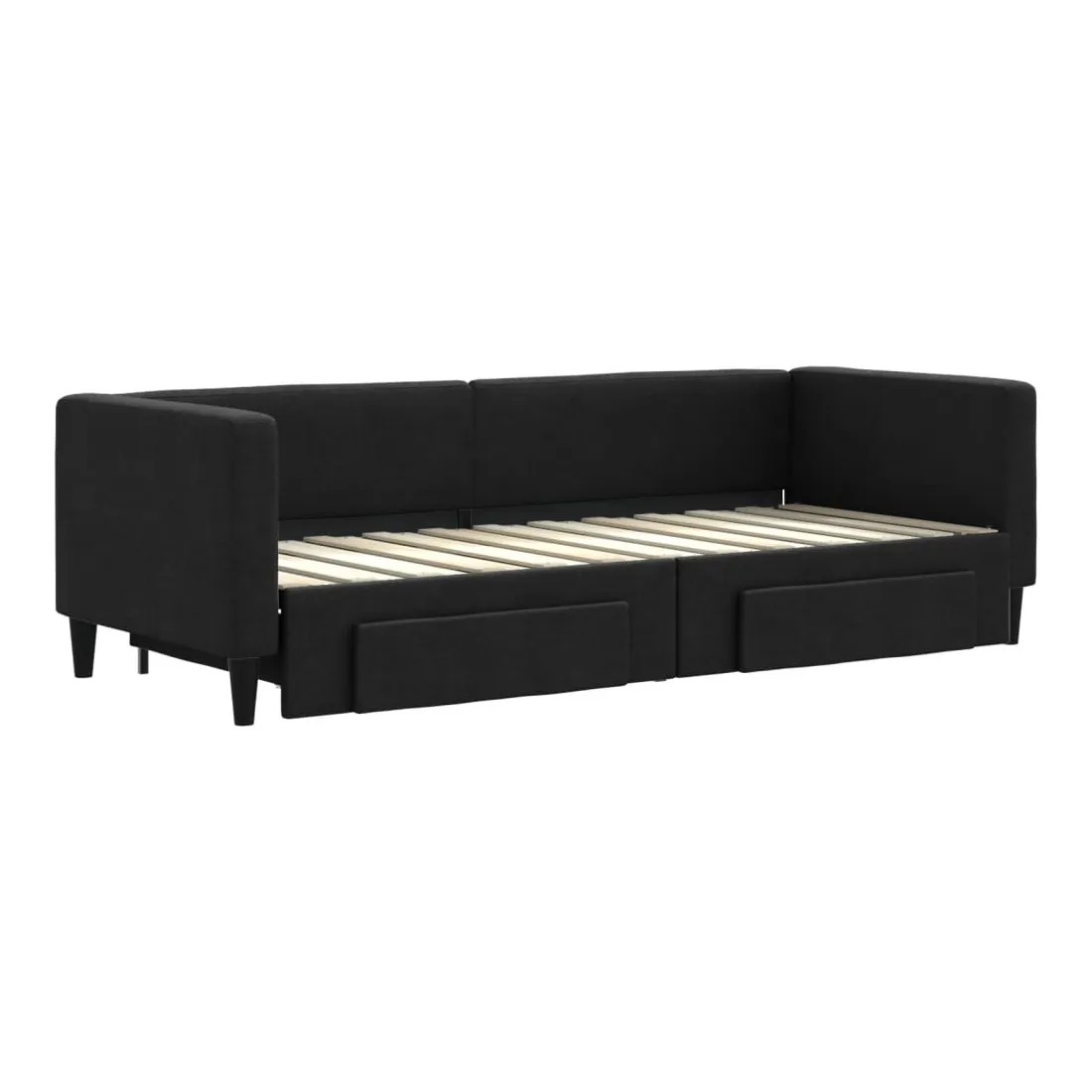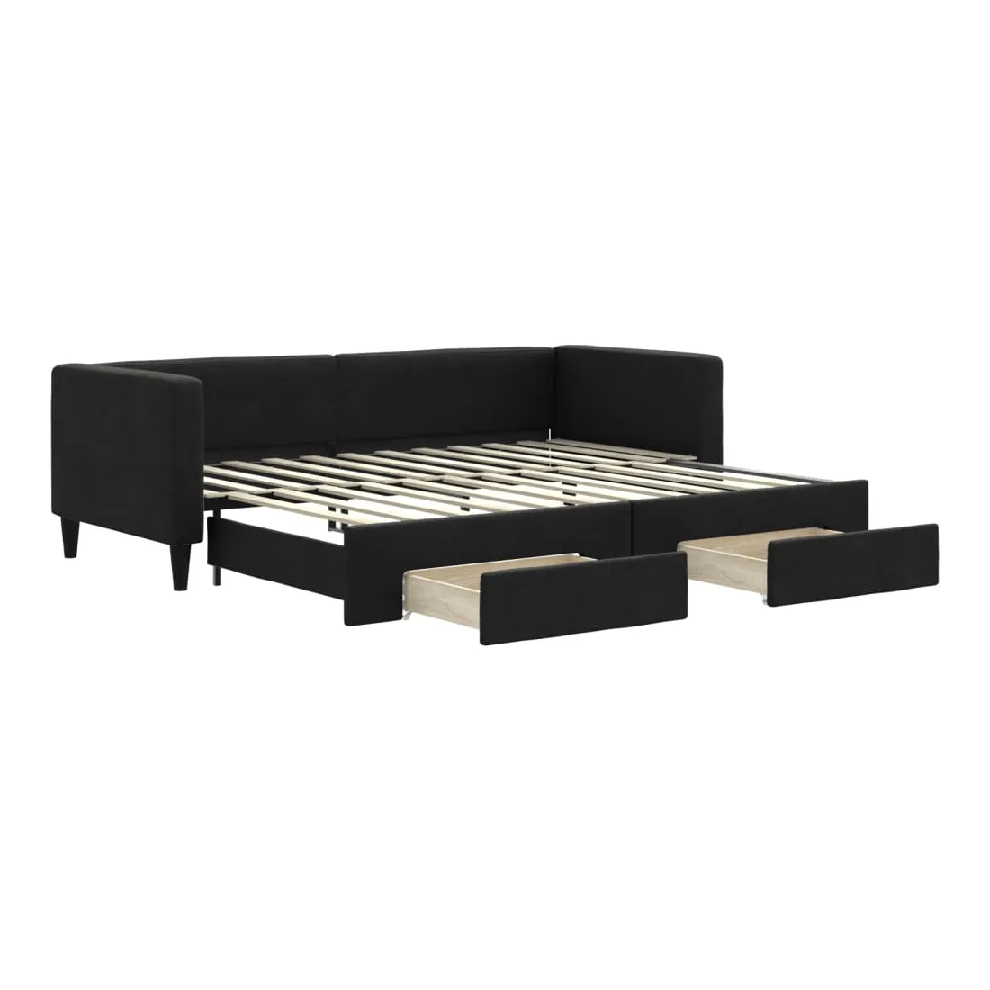 Ce lit de repos 2 en 1 avec lit gigogne, servant à la fois de canapé et de lit, constitue un supplément pratique et accrocheur à votre salon ou chambre à coucher. Lit de repos polyvalent : le canapé-lit fonctionne comme un canapé pendant la journée et se transforme facilement en lit double la nuit en retirant le lit gigogne, offrant une solution pratique pour accueillir des invités et maximiser l'espace. Grand espace de rangement : ce lit d'appoint dispose de deux tiroirs à roulettes qui offrent suffisamment d'espace pour ranger vos vêtements, chaussettes, jouets, coussins, etc. Tissu durable et construction solide : ce canapé-lit a une structure robuste en bois et en métal et est recouvert d'un tissu durable et confortable. Bon à savoir :Les matelas ne sont pas inclus avec ce lit de repos. Nous proposons une sélection variée de matelas. Vous pouvez consulter notre boutique pour les matelas assortis.