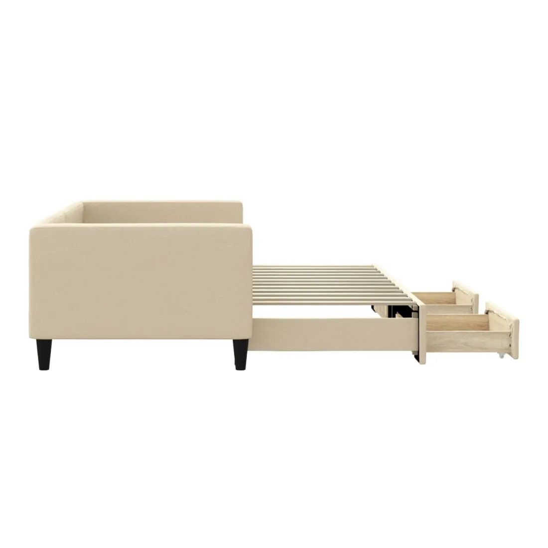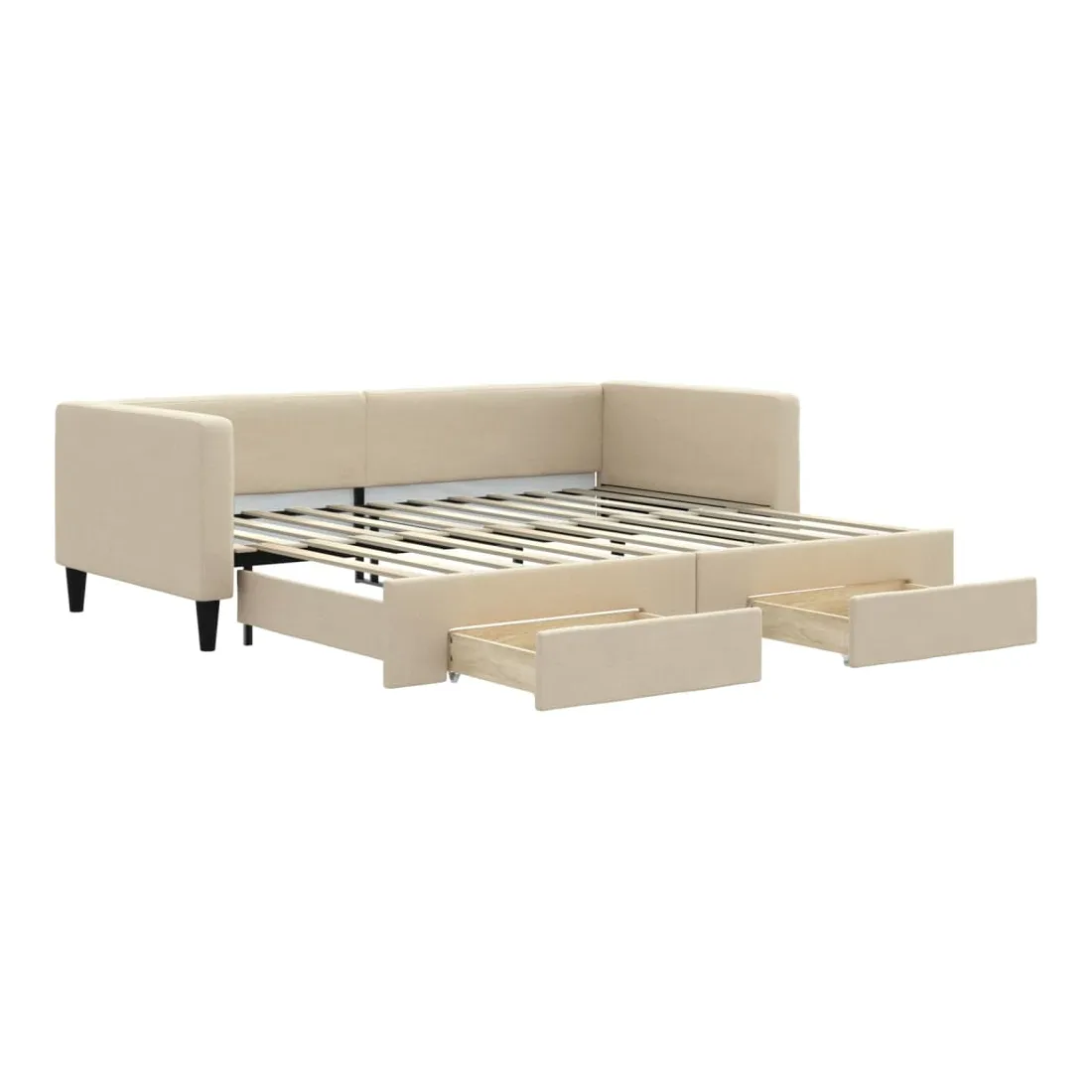 Ce lit de repos 2 en 1 avec lit gigogne, servant à la fois de canapé et de lit, constitue un supplément pratique et accrocheur à votre salon ou chambre à coucher. Lit de repos polyvalent : le canapé-lit fonctionne comme un canapé pendant la journée et se transforme facilement en lit double la nuit en retirant le lit gigogne, offrant une solution pratique pour accueillir des invités et maximiser l'espace. Grand espace de rangement : ce lit d'appoint dispose de deux tiroirs à roulettes qui offrent suffisamment d'espace pour ranger vos vêtements, chaussettes, jouets, coussins, etc. Tissu durable et construction solide : ce canapé-lit a une structure robuste en bois et en métal et est recouvert d'un tissu durable et confortable. Bon à savoir :Les matelas ne sont pas inclus avec ce lit de repos. Nous proposons une sélection variée de matelas. Vous pouvez consulter notre boutique pour les matelas assortis.