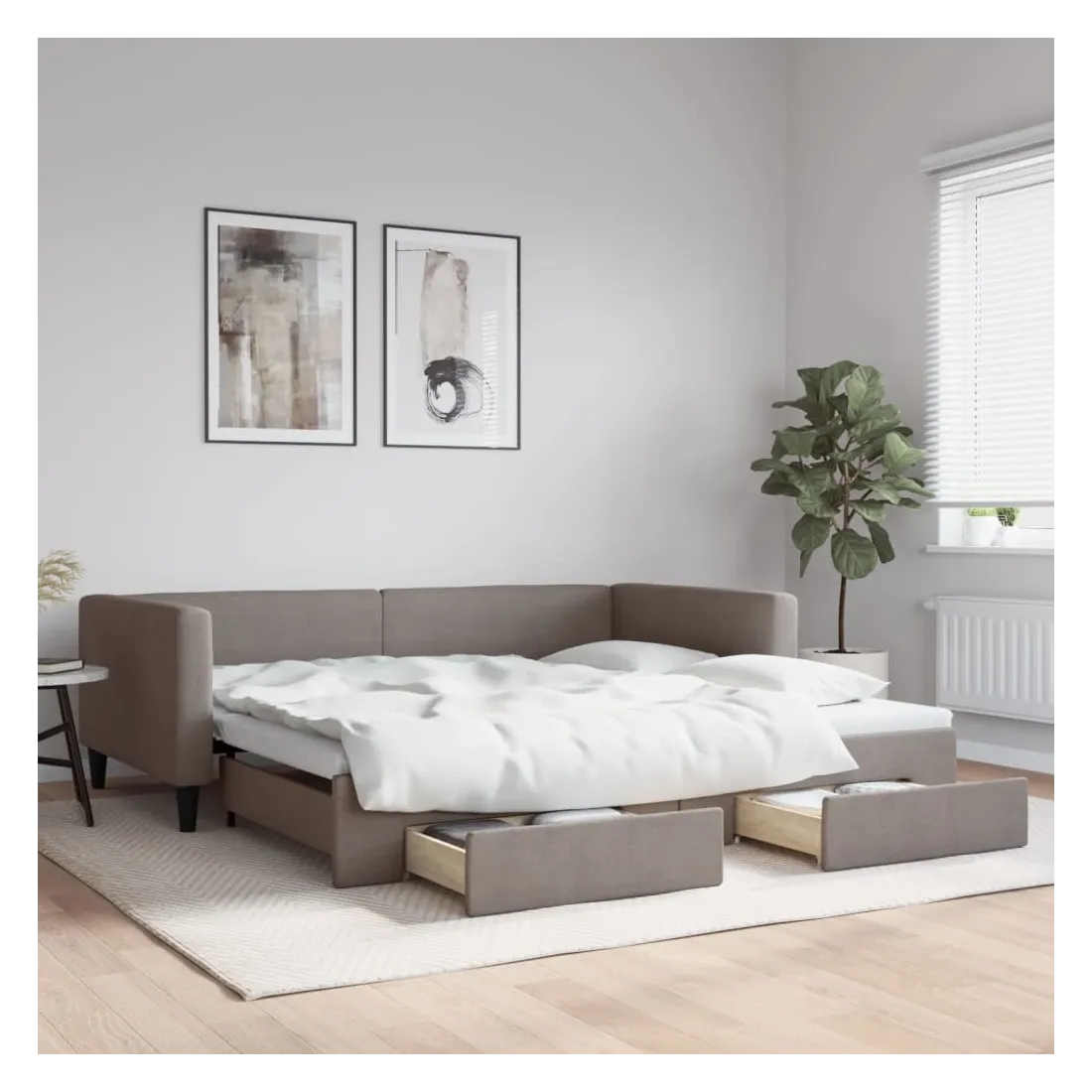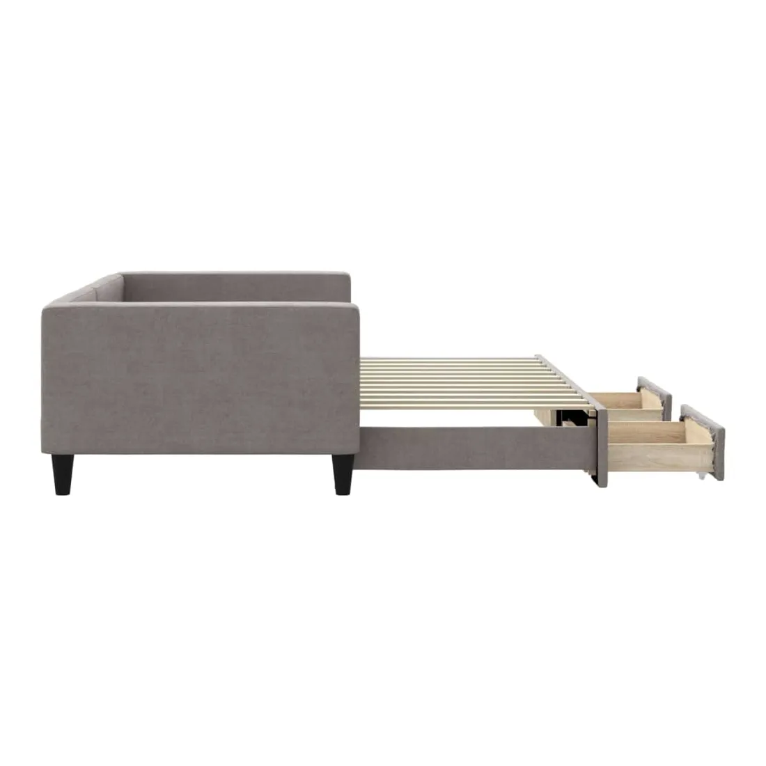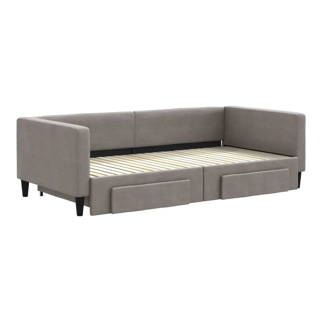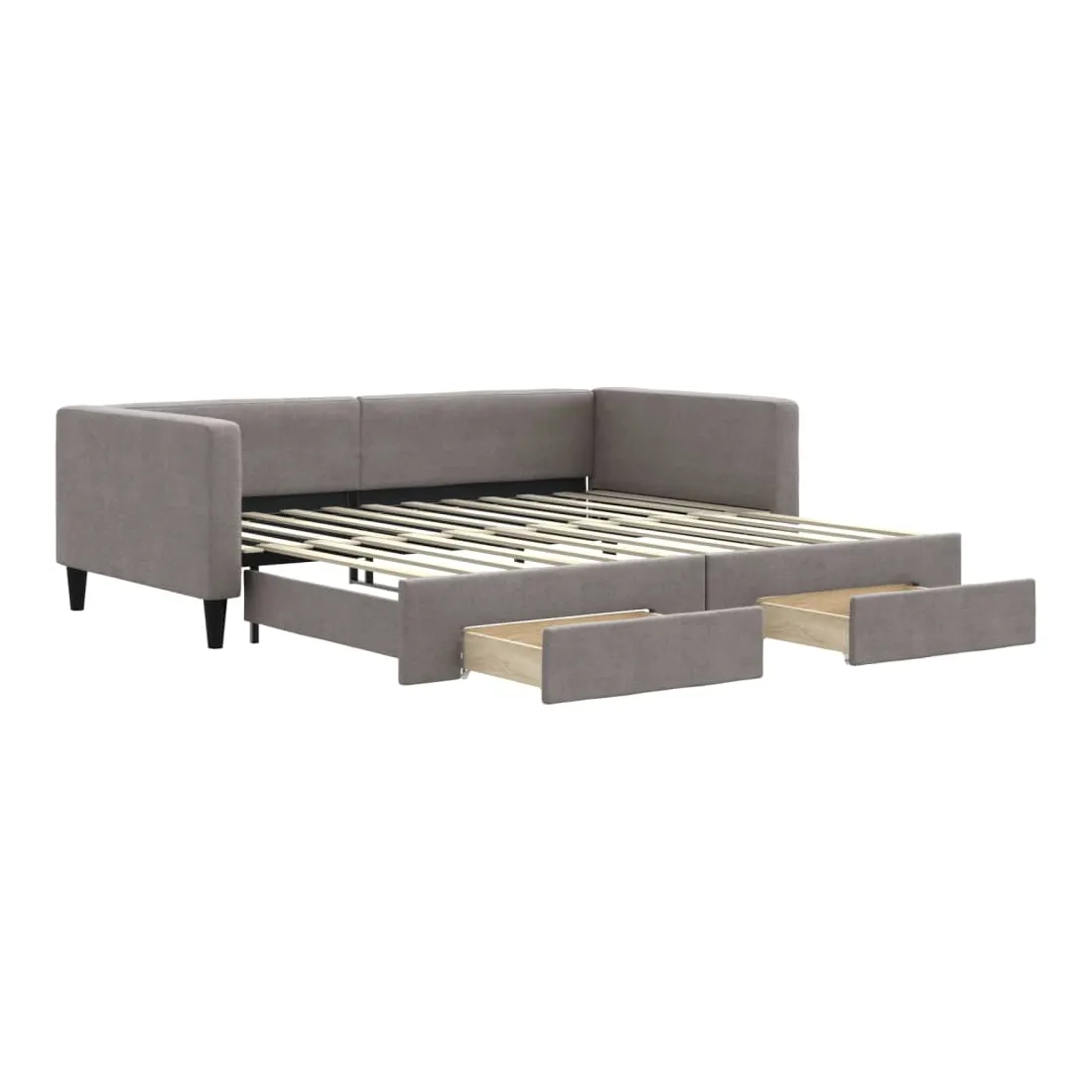 Ce lit de repos 2 en 1 avec lit gigogne, servant à la fois de canapé et de lit, constitue un supplément pratique et accrocheur à votre salon ou chambre à coucher. Lit de repos polyvalent : le canapé-lit fonctionne comme un canapé pendant la journée et se transforme facilement en lit double la nuit en retirant le lit gigogne, offrant une solution pratique pour accueillir des invités et maximiser l'espace. Grand espace de rangement : ce lit d'appoint dispose de deux tiroirs à roulettes qui offrent suffisamment d'espace pour ranger vos vêtements, chaussettes, jouets, coussins, etc. Tissu durable et construction solide : ce canapé-lit a une structure robuste en bois et en métal et est recouvert d'un tissu durable et confortable. Bon à savoir :Les matelas ne sont pas inclus avec ce lit de repos. Nous proposons une sélection variée de matelas. Vous pouvez consulter notre boutique pour les matelas assortis.