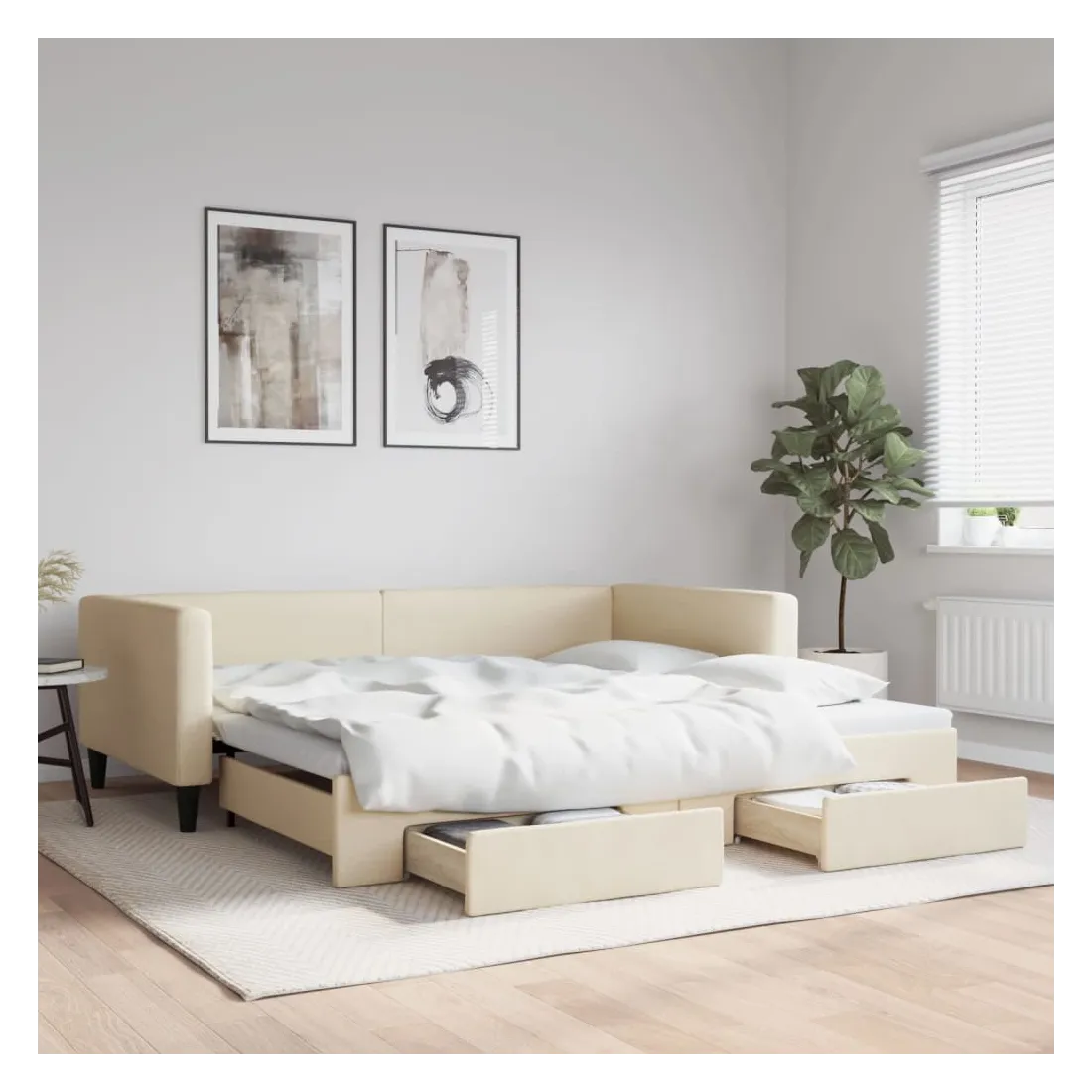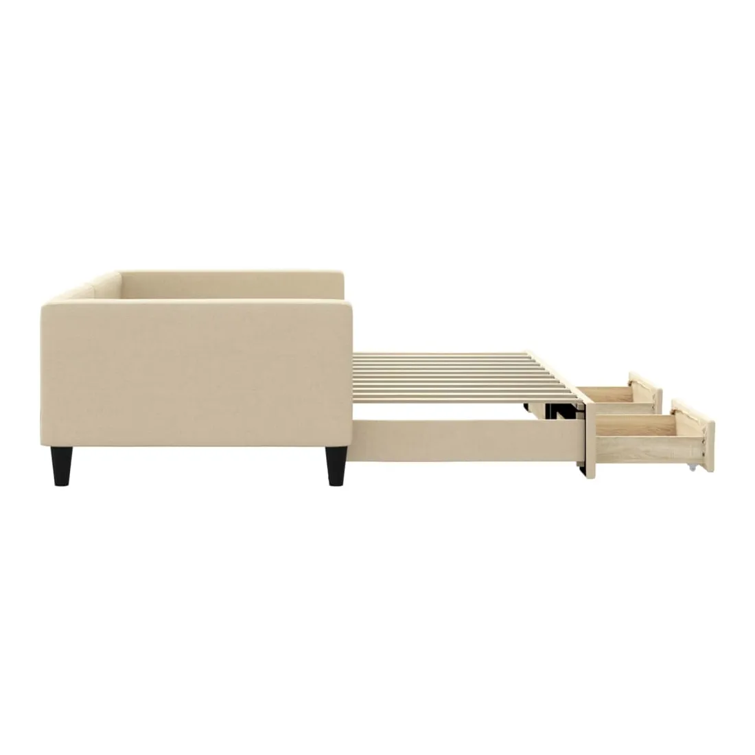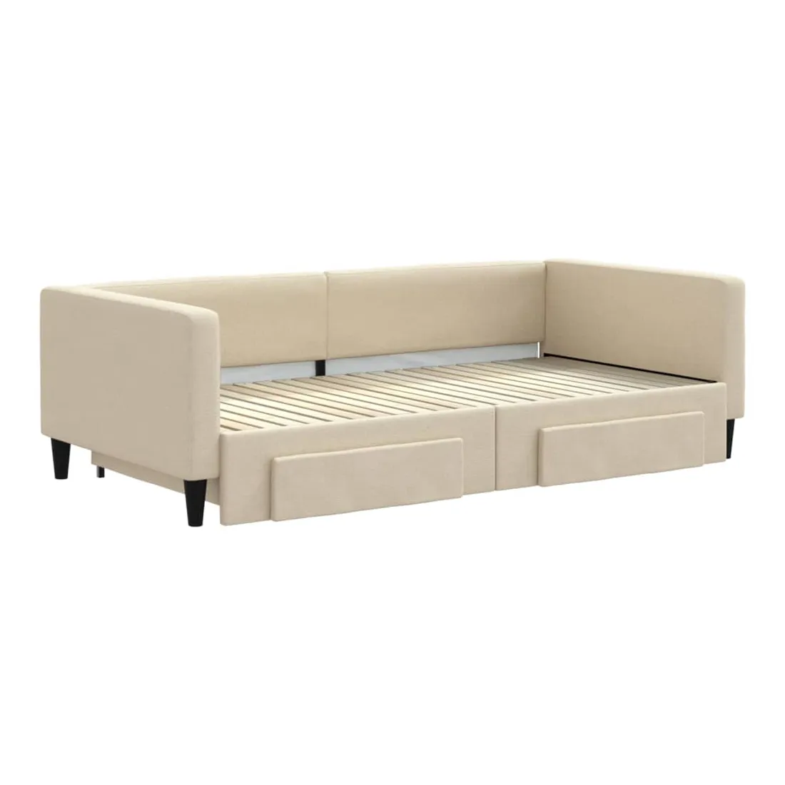 Ce lit de repos 2 en 1 avec lit gigogne, servant à la fois de canapé et de lit, constitue un supplément pratique et accrocheur à votre salon ou chambre à coucher. Lit de repos polyvalent : le canapé-lit fonctionne comme un canapé pendant la journée et se transforme facilement en lit double la nuit en retirant le lit gigogne, offrant une solution pratique pour accueillir des invités et maximiser l'espace. Grand espace de rangement : ce lit d'appoint dispose de deux tiroirs à roulettes qui offrent suffisamment d'espace pour ranger vos vêtements, chaussettes, jouets, coussins, etc. Tissu durable et construction solide : ce canapé-lit a une structure robuste en bois et en métal et est recouvert d'un tissu durable et confortable. Bon à savoir :Les matelas ne sont pas inclus avec ce lit de repos. Nous proposons une sélection variée de matelas. Vous pouvez consulter notre boutique pour les matelas assortis.