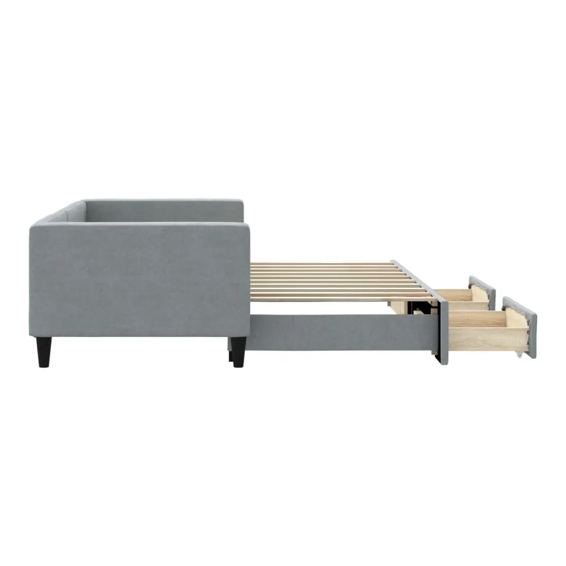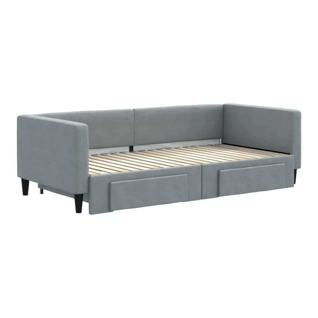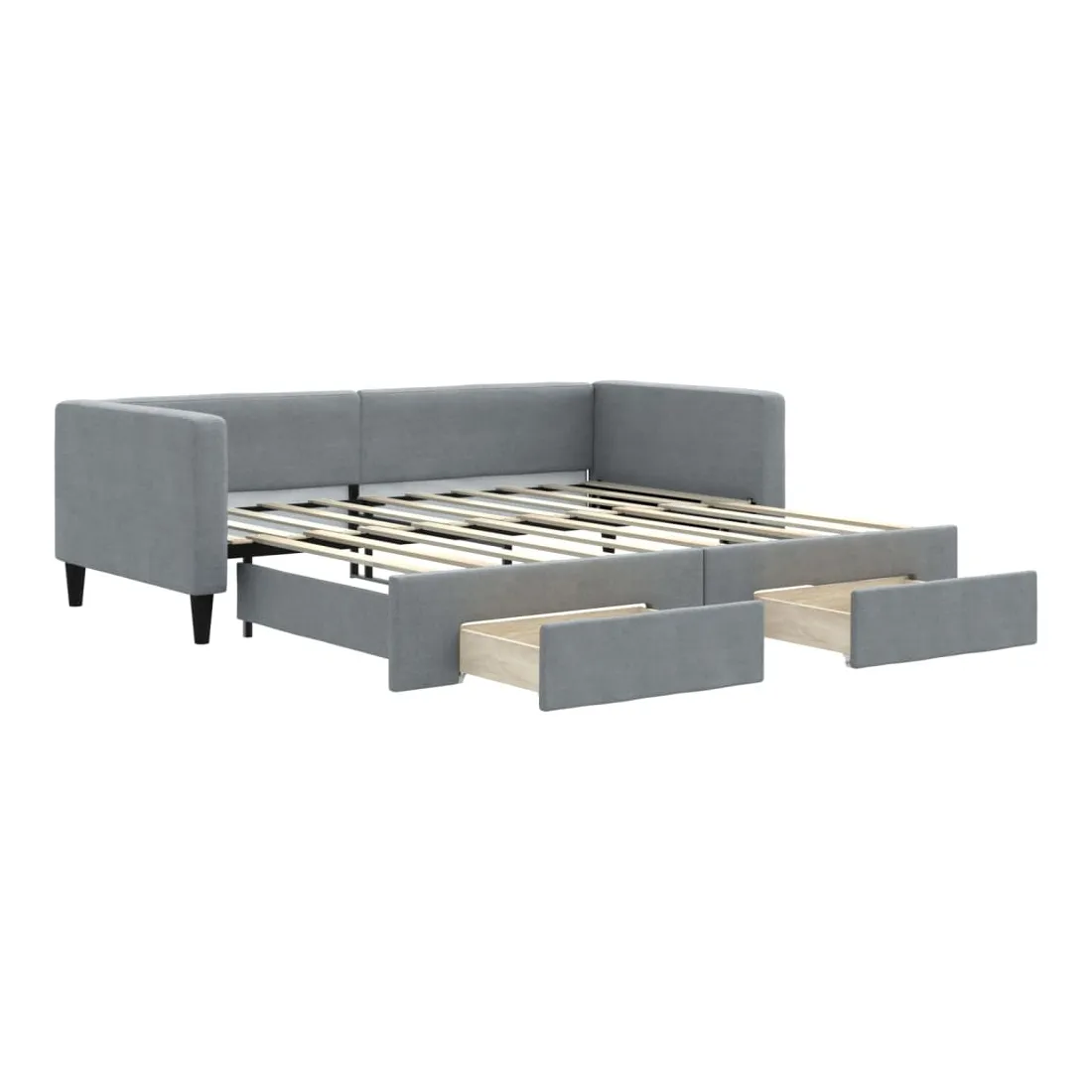 Ce lit de repos 2 en 1 avec lit gigogne, servant à la fois de canapé et de lit, constitue un supplément pratique et accrocheur à votre salon ou chambre à coucher. Lit de repos polyvalent : le canapé-lit fonctionne comme un canapé pendant la journée et se transforme facilement en lit double la nuit en retirant le lit gigogne, offrant une solution pratique pour accueillir des invités et maximiser l'espace. Grand espace de rangement : ce lit d'appoint dispose de deux tiroirs à roulettes qui offrent suffisamment d'espace pour ranger vos vêtements, chaussettes, jouets, coussins, etc. Tissu durable et construction solide : ce canapé-lit a une structure robuste en bois et en métal et est recouvert d'un tissu durable et confortable. Bon à savoir :Les matelas ne sont pas inclus avec ce lit de repos. Nous proposons une sélection variée de matelas. Vous pouvez consulter notre boutique pour les matelas assortis.