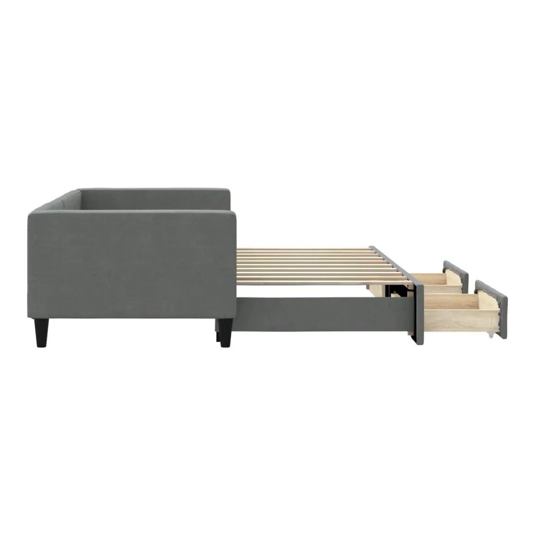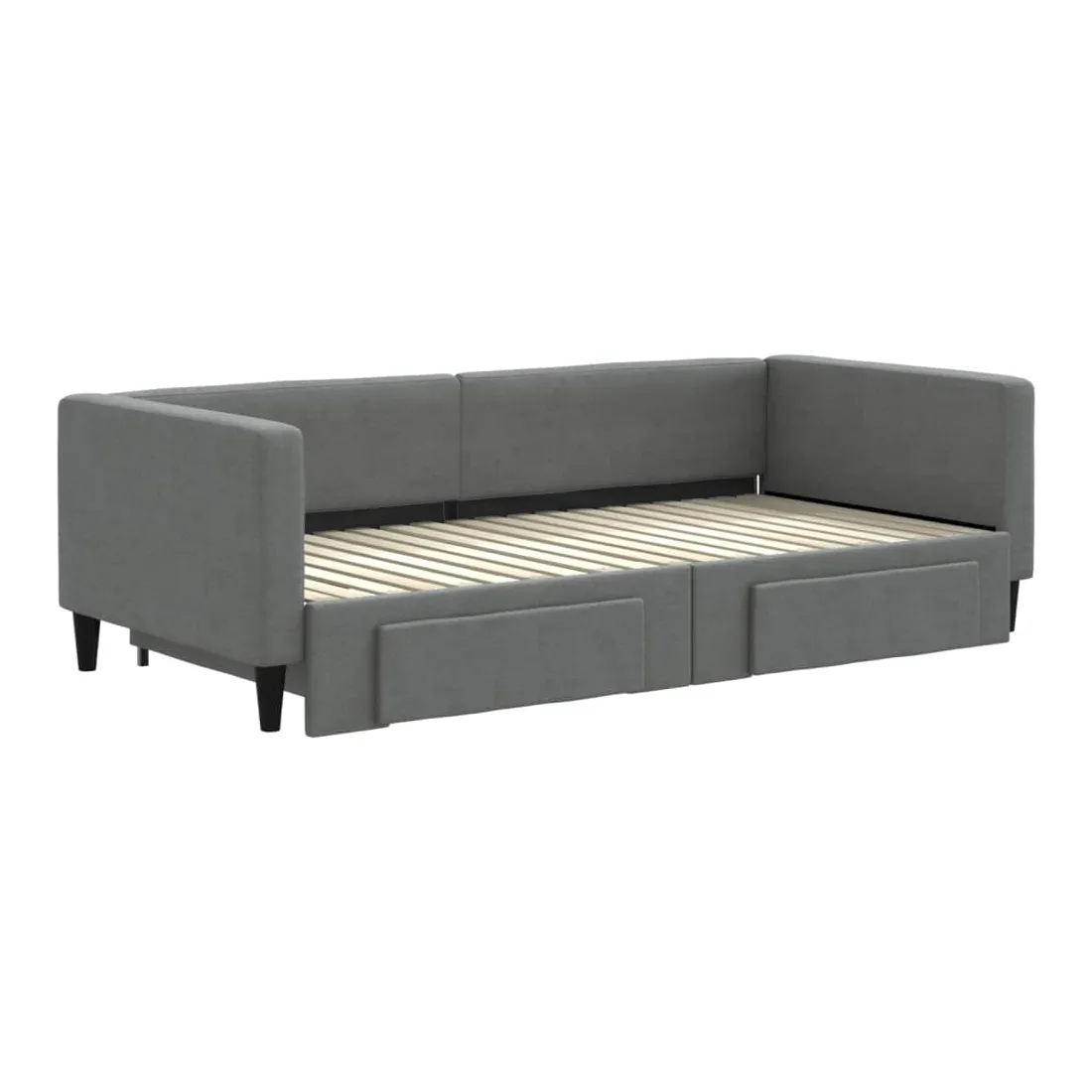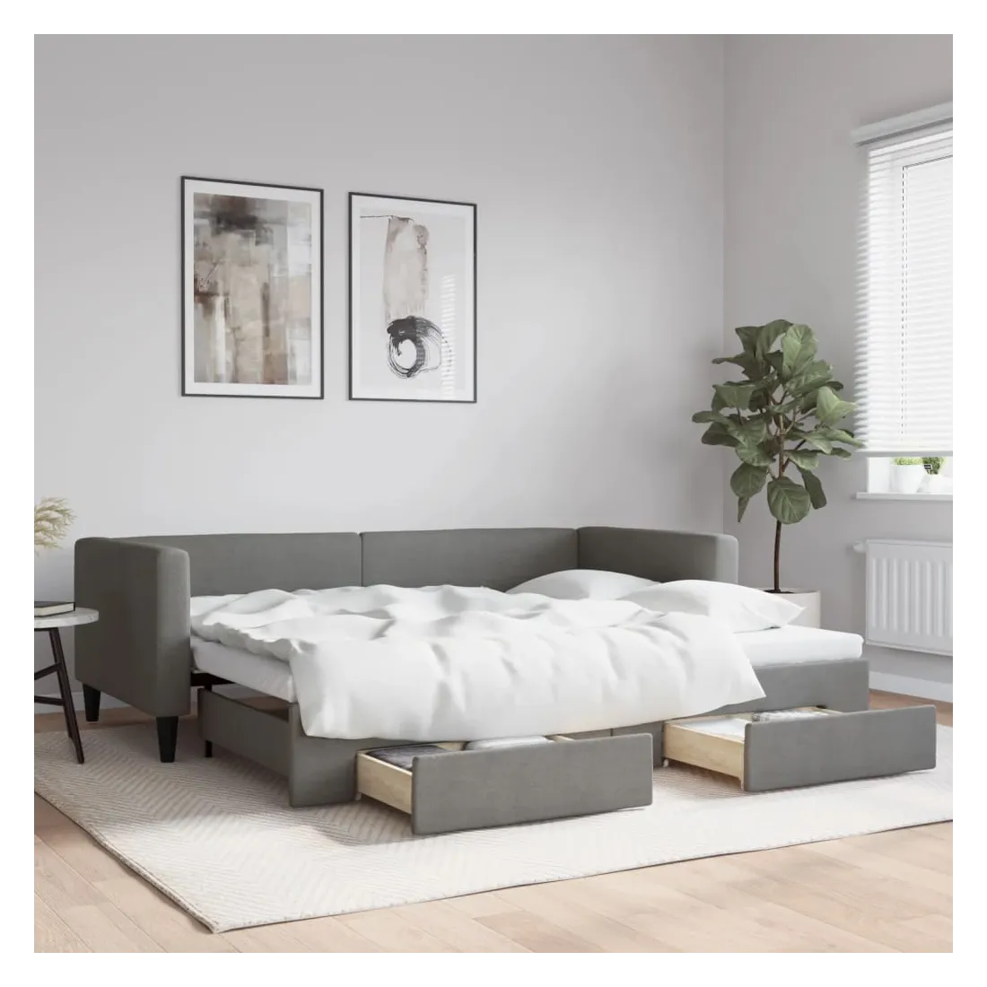 Ce lit de repos 2 en 1 avec lit gigogne, servant à la fois de canapé et de lit, constitue un supplément pratique et accrocheur à votre salon ou chambre à coucher. Lit de repos polyvalent : le canapé-lit fonctionne comme un canapé pendant la journée et se transforme facilement en lit double la nuit en retirant le lit gigogne, offrant une solution pratique pour accueillir des invités et maximiser l'espace. Grand espace de rangement : ce lit d'appoint dispose de deux tiroirs à roulettes qui offrent suffisamment d'espace pour ranger vos vêtements, chaussettes, jouets, coussins, etc. Tissu durable et construction solide : ce canapé-lit a une structure robuste en bois et en métal et est recouvert d'un tissu durable et confortable. Bon à savoir :Les matelas ne sont pas inclus avec ce lit de repos. Nous proposons une sélection variée de matelas. Vous pouvez consulter notre boutique pour les matelas assortis.