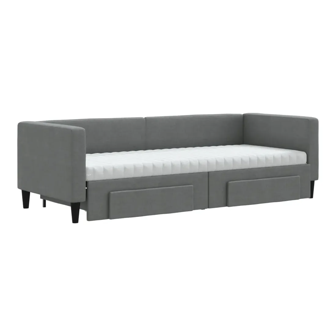 Ce lit de repos 2 en 1 avec lit gigogne, servant à la fois de canapé et de lit, constitue un supplément pratique et accrocheur à votre salon ou chambre à coucher. Lit de repos polyvalent : le canapé-lit fonctionne comme un canapé pendant la journée et se transforme facilement en lit double la nuit en retirant le lit gigogne, offrant une solution pratique pour accueillir des invités et maximiser l'espace. Grand espace de rangement : ce lit d'appoint dispose de deux tiroirs à roulettes qui offrent suffisamment d'espace pour ranger vos vêtements, chaussettes, jouets, coussins, etc. Matelas en mousse confortable : ce lit est fourni avec deux matelas en mousse pour un soutien maximal et un confort optimal. Tissu durable et construction solide : ce canapé-lit a une structure robuste en bois et en métal et est recouvert d'un tissu durable et confortable.
