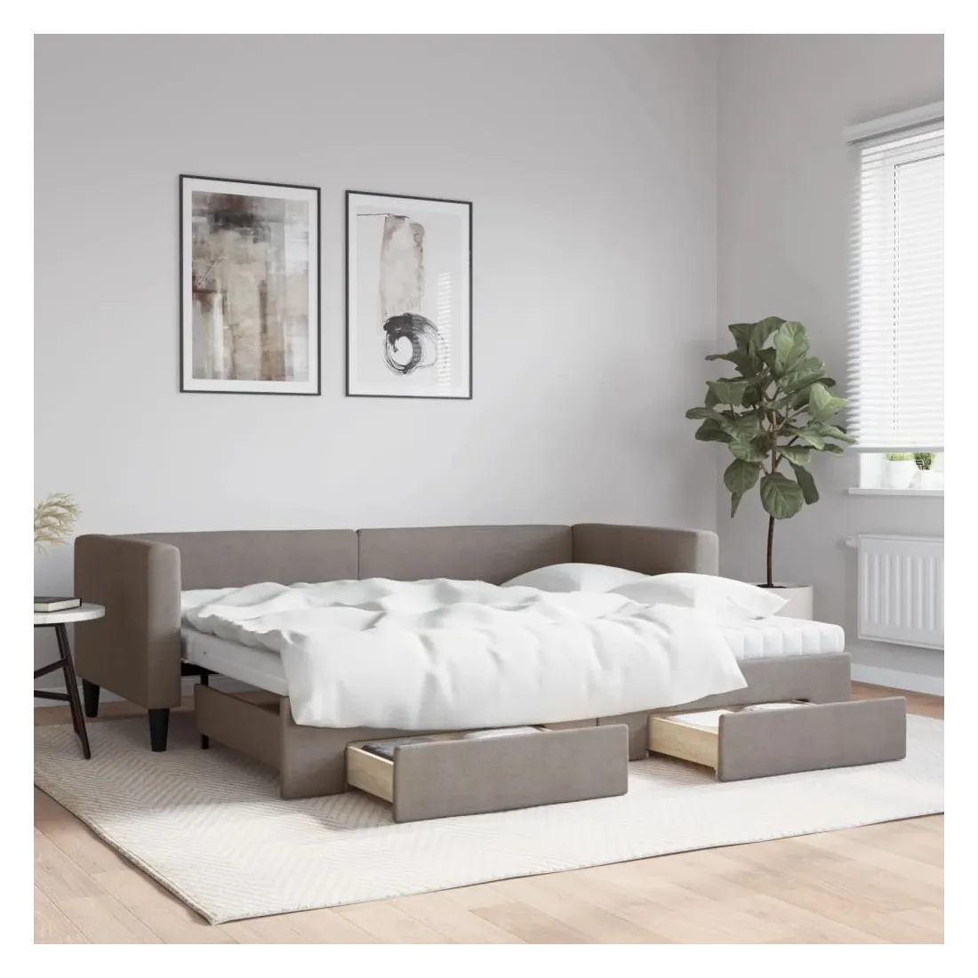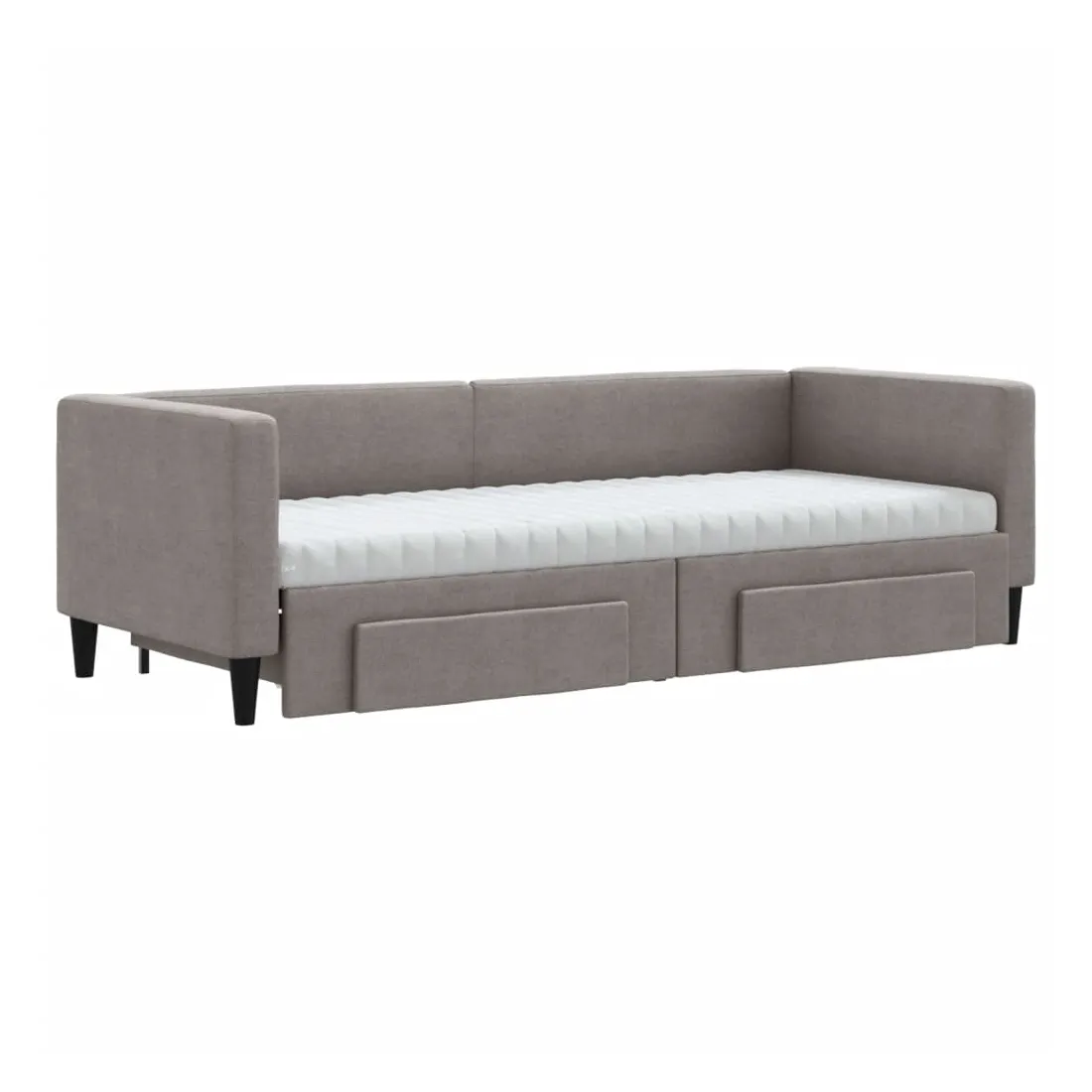 Ce lit de repos 2 en 1 avec lit gigogne, servant à la fois de canapé et de lit, constitue un supplément pratique et accrocheur à votre salon ou chambre à coucher. Lit de repos polyvalent : le canapé-lit fonctionne comme un canapé pendant la journée et se transforme facilement en lit double la nuit en retirant le lit gigogne, offrant une solution pratique pour accueillir des invités et maximiser l'espace. Grand espace de rangement : ce lit d'appoint dispose de deux tiroirs à roulettes qui offrent suffisamment d'espace pour ranger vos vêtements, chaussettes, jouets, coussins, etc. Matelas en mousse confortable : ce lit est fourni avec deux matelas en mousse pour un soutien maximal et un confort optimal. Tissu durable et construction solide : ce canapé-lit a une structure robuste en bois et en métal et est recouvert d'un tissu durable et confortable.