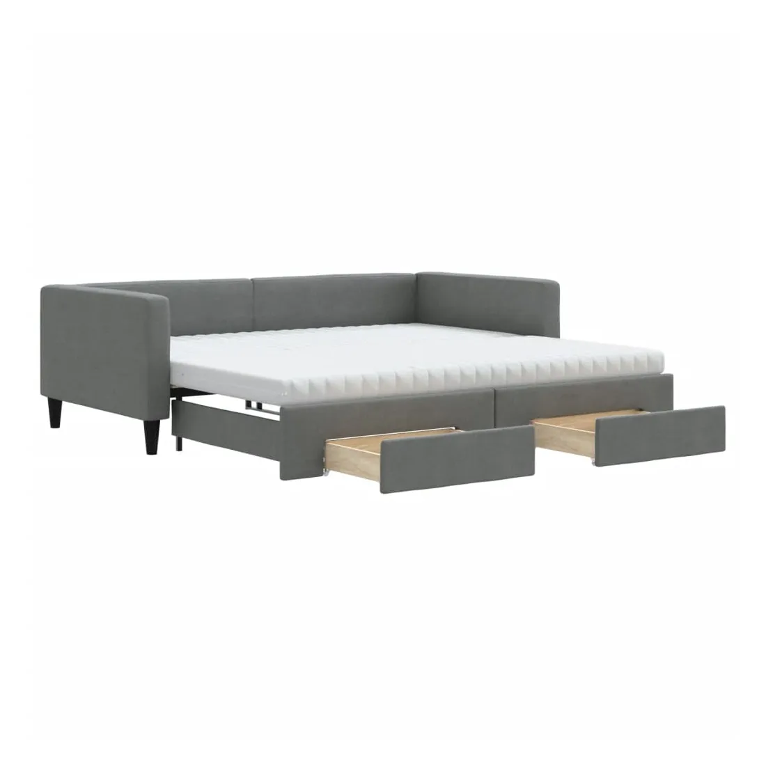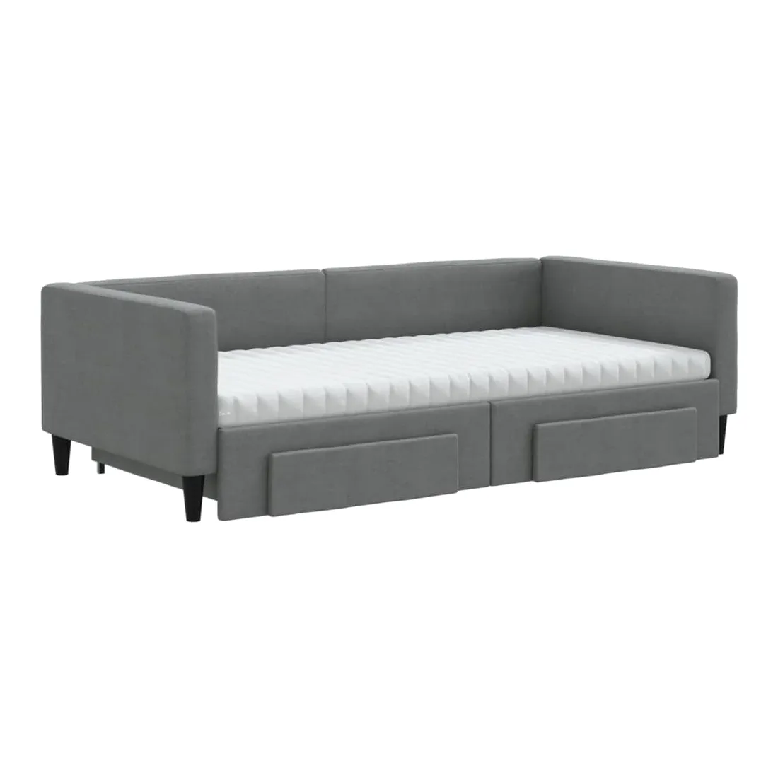 Ce lit de repos 2 en 1 avec lit gigogne, servant à la fois de canapé et de lit, constitue un supplément pratique et accrocheur à votre salon ou chambre à coucher. Lit de repos polyvalent : le canapé-lit fonctionne comme un canapé pendant la journée et se transforme facilement en lit double la nuit en retirant le lit gigogne, offrant une solution pratique pour accueillir des invités et maximiser l'espace. Grand espace de rangement : ce lit d'appoint dispose de deux tiroirs à roulettes qui offrent suffisamment d'espace pour ranger vos vêtements, chaussettes, jouets, coussins, etc. Matelas en mousse confortable : ce lit est fourni avec deux matelas en mousse pour un soutien maximal et un confort optimal. Tissu durable et construction solide : ce canapé-lit a une structure robuste en bois et en métal et est recouvert d'un tissu durable et confortable.