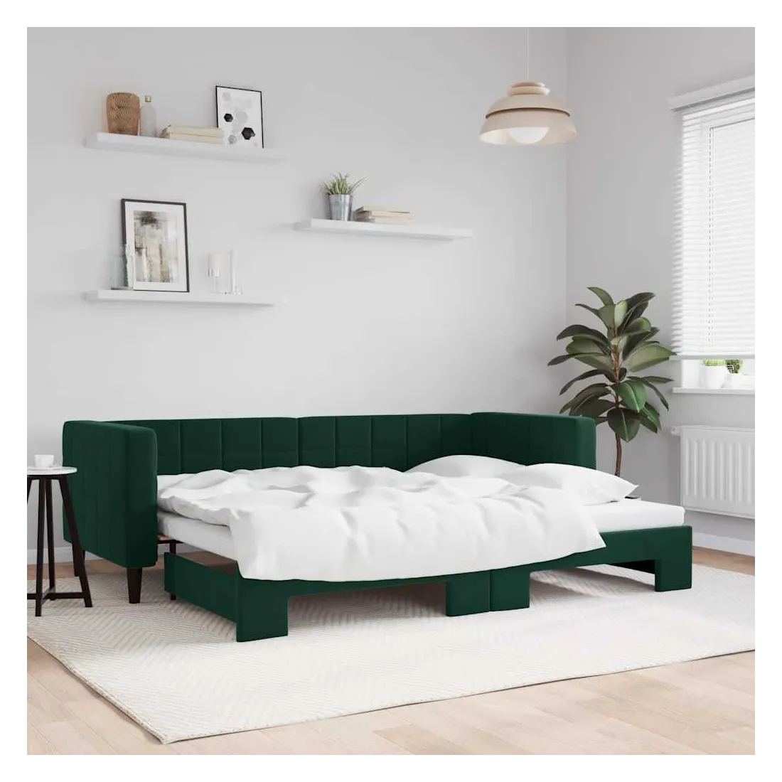 Ce lit de repos 2 en 1 avec lit gigogne, servant à la fois de canapé et de lit, constitue un supplément pratique et accrocheur à votre salon ou chambre à coucher. Lit de repos polyvalent : le canapé-lit fonctionne comme un canapé pendant la journée et se transforme facilement en lit double la nuit en retirant le lit gigogne, offrant une solution pratique pour accueillir des invités et maximiser l'espace.Velours doux et construction solide : ce canapé-lit a un cadre robuste en bois et en métal et est recouvert de velours doux et confortable.Design moderne : le canapé-lit a un design moderne qui présente des lignes épurées, un aspect minimaliste, ainsi que de la lumière naturelle, et ajoutera un style moderne à votre intérieur ! Bon à savoir :Les matelas ne sont pas inclus avec ce lit. Nous proposons une sélection variée de matelas. Vous pouvez consulter notre boutique pour trouver les matelas assortis.