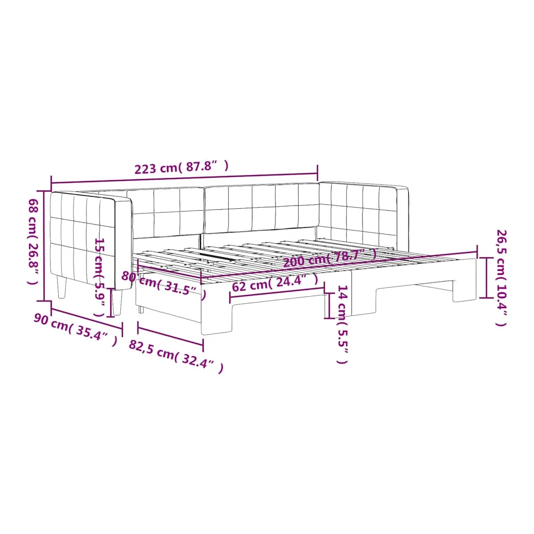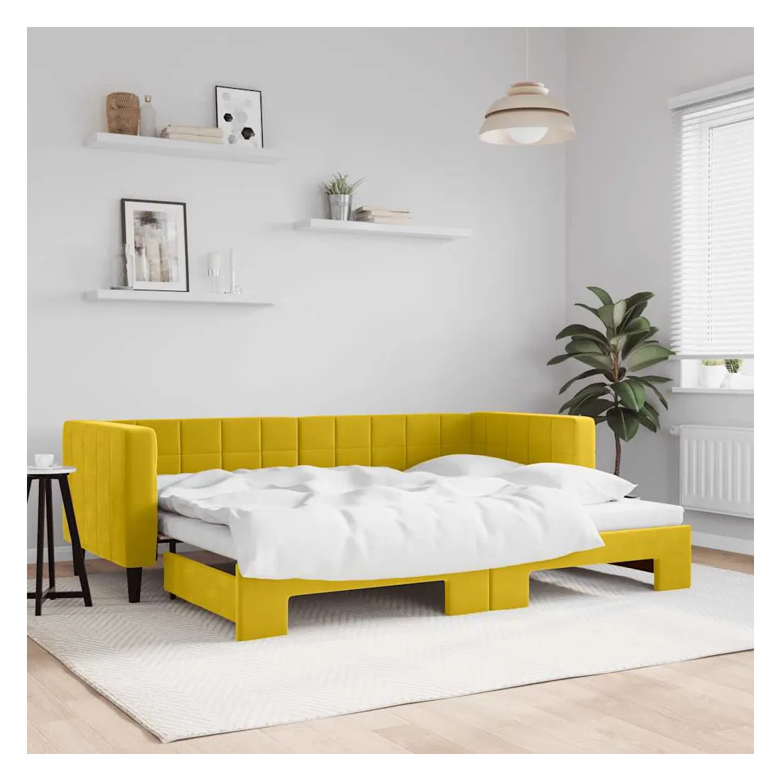 Ce lit de repos 2 en 1 avec lit gigogne, servant à la fois de canapé et de lit, constitue un supplément pratique et accrocheur à votre salon ou chambre à coucher. Lit de repos polyvalent : le canapé-lit fonctionne comme un canapé pendant la journée et se transforme facilement en lit double la nuit en retirant le lit gigogne, offrant une solution pratique pour accueillir des invités et maximiser l'espace.Velours doux et construction solide : ce canapé-lit a un cadre robuste en bois et en métal et est recouvert de velours doux et confortable.Design moderne : le canapé-lit a un design moderne qui présente des lignes épurées, un aspect minimaliste, ainsi que de la lumière naturelle, et ajoutera un style moderne à votre intérieur ! Bon à savoir :Les matelas ne sont pas inclus avec ce lit. Nous proposons une sélection variée de matelas. Vous pouvez consulter notre boutique pour trouver les matelas assortis.