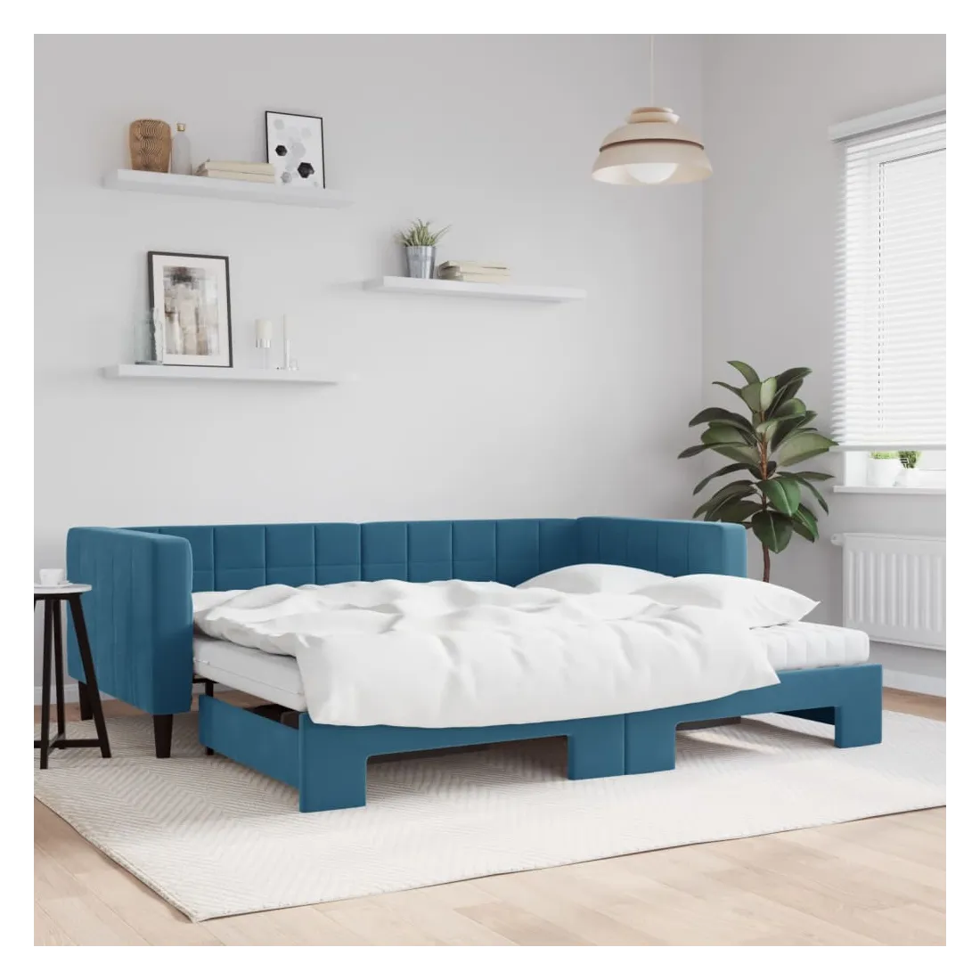 Ce lit de repos 2 en 1 avec lit gigogne, servant à la fois de canapé et de lit, constitue un supplément pratique et accrocheur à votre salon ou chambre à coucher. Lit de repos polyvalent : le canapé-lit fonctionne comme un canapé pendant la journée et se transforme facilement en lit double la nuit en retirant le lit gigogne, offrant une solution pratique pour accueillir des invités et maximiser l'espace.Matelas en mousse confortable : ce lit est fourni avec deux matelas en mousse pour un soutien maximal et un confort optimal.Velours doux et construction solide : ce canapé-lit a un cadre robuste en bois et en métal et est recouvert de velours doux et confortable.Design moderne : le canapé-lit a un design moderne qui présente des lignes épurées, un aspect minimaliste, ainsi que de la lumière naturelle, et ajoutera un style moderne à votre intérieur !