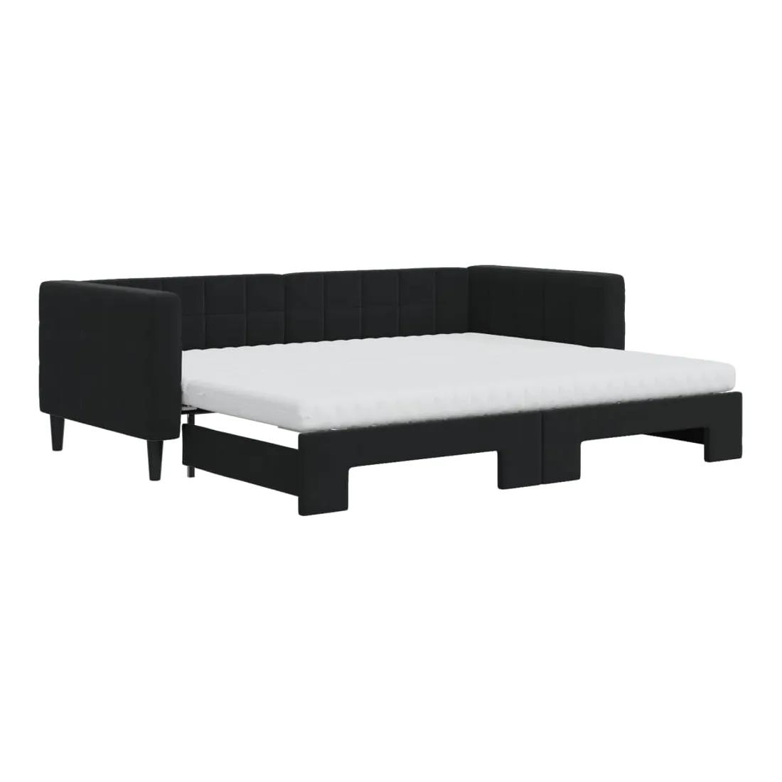 Ce lit de repos 2 en 1 avec lit gigogne, servant à la fois de canapé et de lit, constitue un supplément pratique et accrocheur à votre salon ou chambre à coucher. Lit de repos polyvalent : le canapé-lit fonctionne comme un canapé pendant la journée et se transforme facilement en lit double la nuit en retirant le lit gigogne, offrant une solution pratique pour accueillir des invités et maximiser l'espace.Matelas en mousse confortable : ce lit est fourni avec deux matelas en mousse pour un soutien maximal et un confort optimal.Velours doux et construction solide : ce canapé-lit a un cadre robuste en bois et en métal et est recouvert de velours doux et confortable.Design moderne : le canapé-lit a un design moderne qui présente des lignes épurées, un aspect minimaliste, ainsi que de la lumière naturelle, et ajoutera un style moderne à votre intérieur !