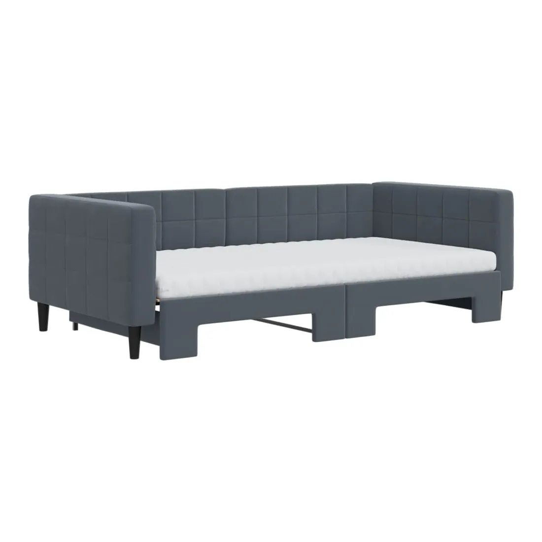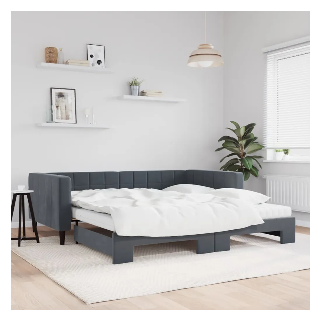 Ce lit de repos 2 en 1 avec lit gigogne, servant à la fois de canapé et de lit, constitue un supplément pratique et accrocheur à votre salon ou chambre à coucher. Lit de repos polyvalent : le canapé-lit fonctionne comme un canapé pendant la journée et se transforme facilement en lit double la nuit en retirant le lit gigogne, offrant une solution pratique pour accueillir des invités et maximiser l'espace.Matelas en mousse confortable : ce lit est fourni avec deux matelas en mousse pour un soutien maximal et un confort optimal.Velours doux et construction solide : ce canapé-lit a un cadre robuste en bois et en métal et est recouvert de velours doux et confortable.Design moderne : le canapé-lit a un design moderne qui présente des lignes épurées, un aspect minimaliste, ainsi que de la lumière naturelle, et ajoutera un style moderne à votre intérieur !