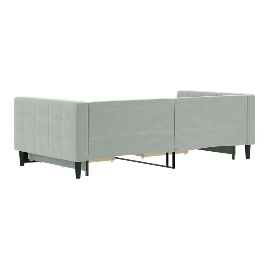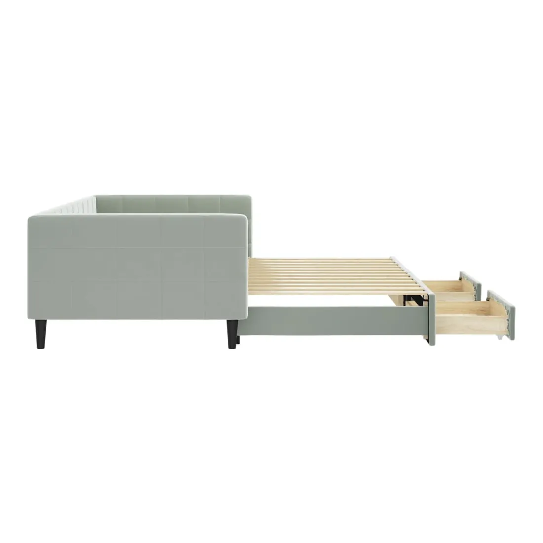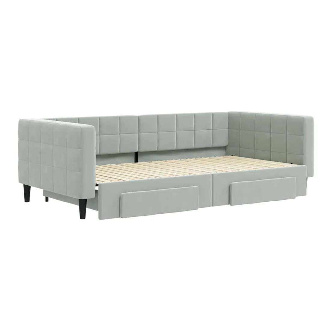 Ce lit de repos 2 en 1 avec lit gigogne, servant à la fois de canapé et de lit, constitue un supplément pratique et accrocheur à votre salon ou chambre à coucher. Lit de repos polyvalent : le canapé-lit fonctionne comme un canapé pendant la journée et se transforme facilement en lit double la nuit en retirant le lit gigogne, offrant une solution pratique pour accueillir des invités et maximiser l'espace.Grand espace de rangement : ce lit d'appoint dispose de deux tiroirs à roulettes qui offrent suffisamment d'espace pour ranger vos vêtements, chaussettes, jouets, coussins, etc.Velours doux et construction solide : ce canapé-lit a un cadre robuste en bois et en métal et est recouvert de velours doux et confortable.Design moderne : le canapé-lit a un design moderne qui présente des lignes épurées, un aspect minimaliste, ainsi que de la lumière naturelle, et ajoutera un style moderne à votre intérieur ! Bon à savoir :Les matelas ne sont pas inclus avec ce lit. Nous proposons une sélection variée de matelas. Vous pouvez consulter notre boutique pour trouver les matelas assortis.