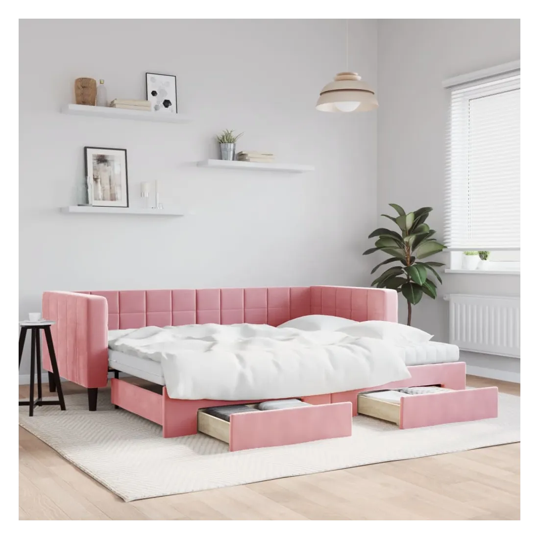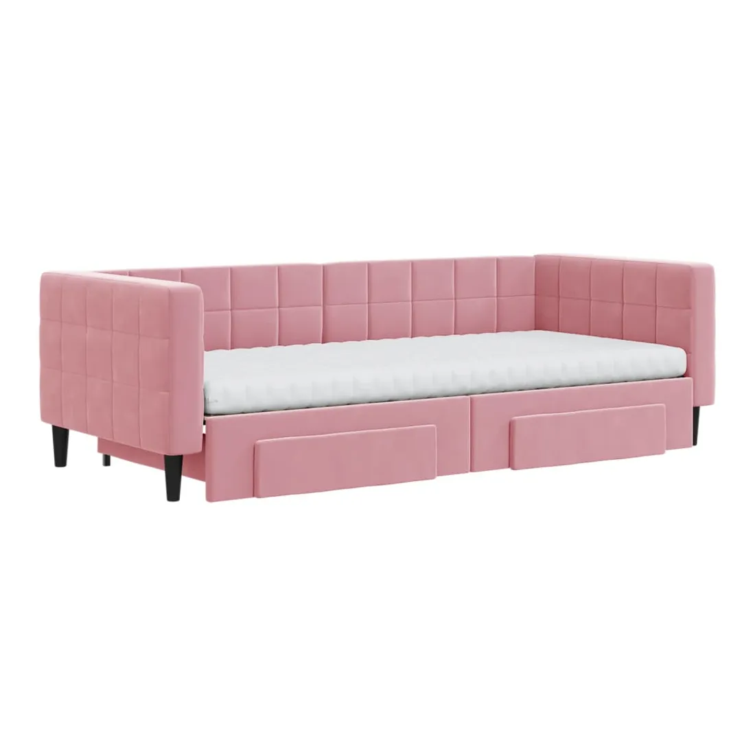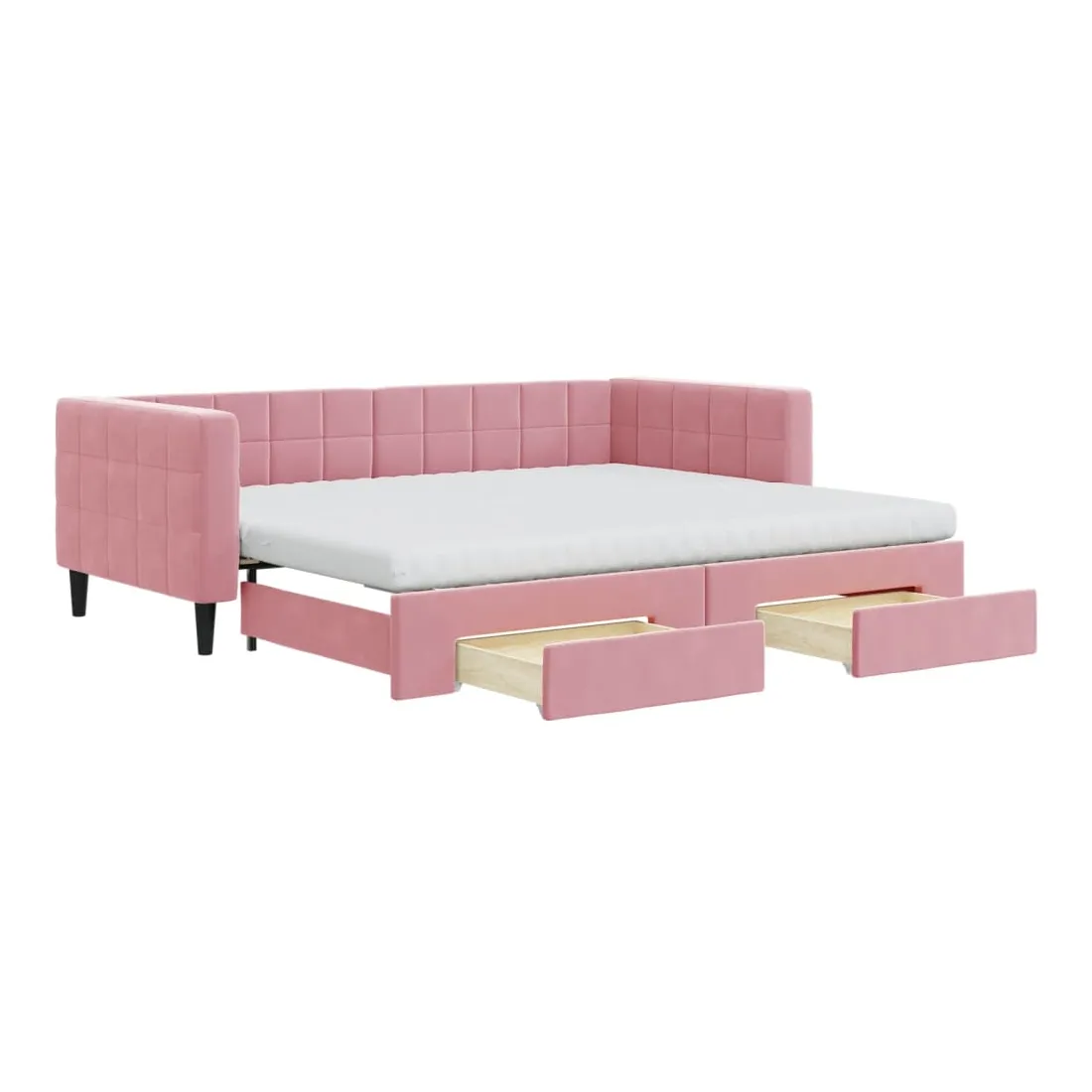 Ce lit de repos 2 en 1 avec lit gigogne, servant à la fois de canapé et de lit, constitue un supplément pratique et accrocheur à votre salon ou chambre à coucher. Lit de repos polyvalent : le canapé-lit fonctionne comme un canapé pendant la journée et se transforme facilement en lit double la nuit en retirant le lit gigogne, offrant une solution pratique pour accueillir des invités et maximiser l'espace.Grand espace de rangement : ce lit d'appoint dispose de deux tiroirs à roulettes qui offrent suffisamment d'espace pour ranger vos vêtements, chaussettes, jouets, coussins, etc.Matelas en mousse confortable : ce lit est fourni avec deux matelas en mousse pour un soutien maximal et un confort optimal.Velours doux et construction solide : ce canapé-lit a un cadre robuste en bois et en métal et est recouvert de velours doux et confortable.