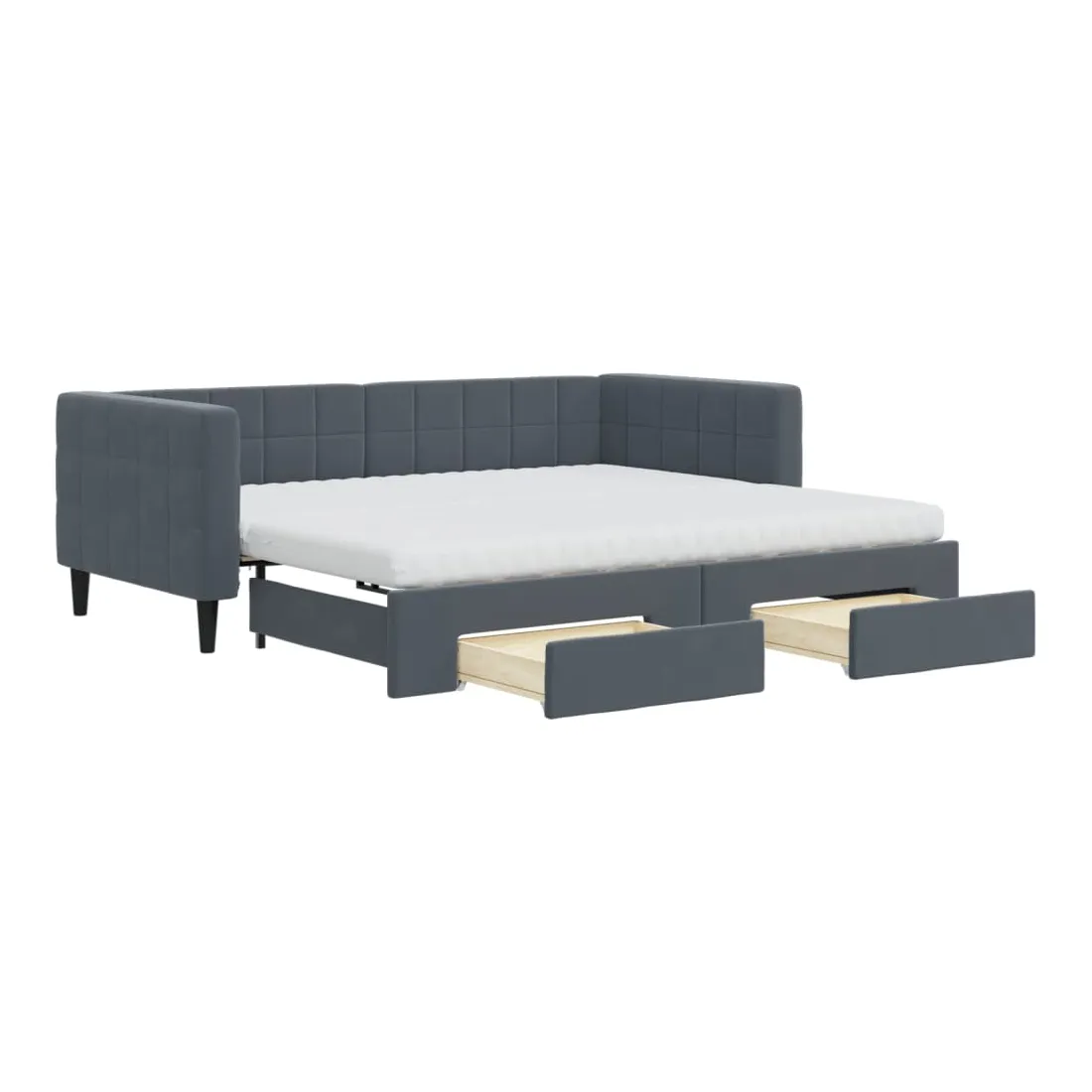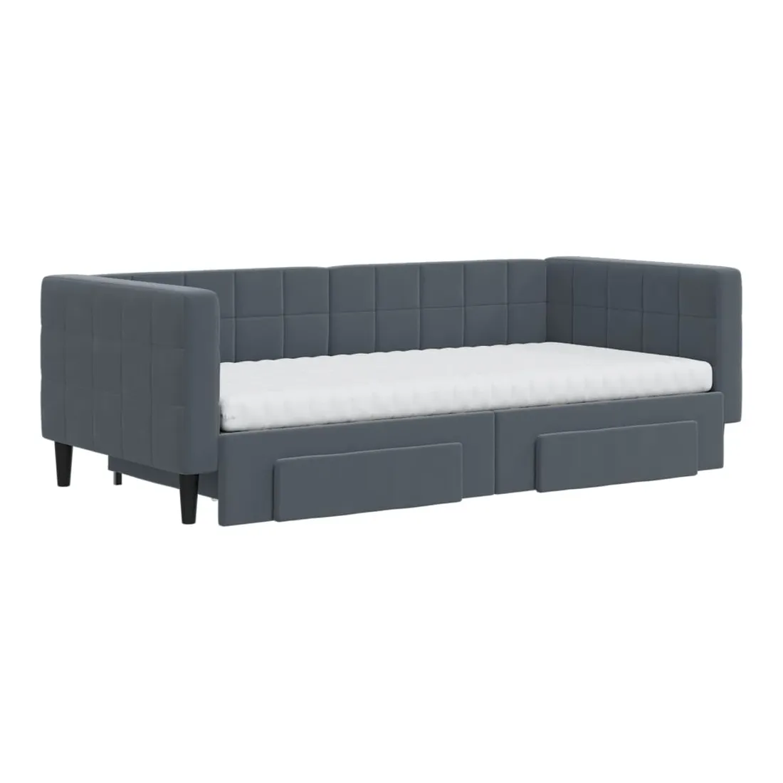 Ce lit de repos 2 en 1 avec lit gigogne, servant à la fois de canapé et de lit, constitue un supplément pratique et accrocheur à votre salon ou chambre à coucher. Lit de repos polyvalent : le canapé-lit fonctionne comme un canapé pendant la journée et se transforme facilement en lit double la nuit en retirant le lit gigogne, offrant une solution pratique pour accueillir des invités et maximiser l'espace.Grand espace de rangement : ce lit d'appoint dispose de deux tiroirs à roulettes qui offrent suffisamment d'espace pour ranger vos vêtements, chaussettes, jouets, coussins, etc.Matelas en mousse confortable : ce lit est fourni avec deux matelas en mousse pour un soutien maximal et un confort optimal.Velours doux et construction solide : ce canapé-lit a un cadre robuste en bois et en métal et est recouvert de velours doux et confortable.