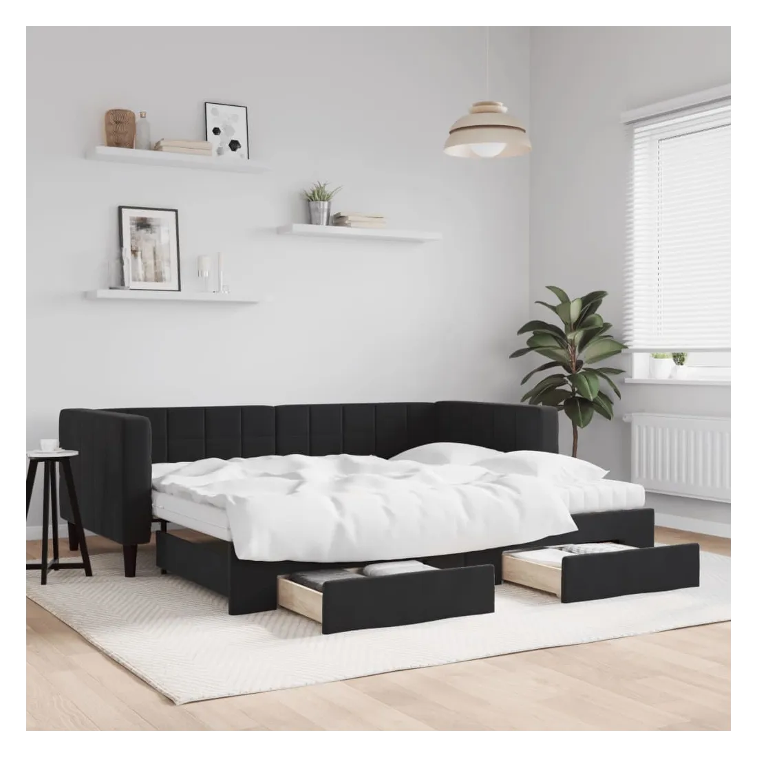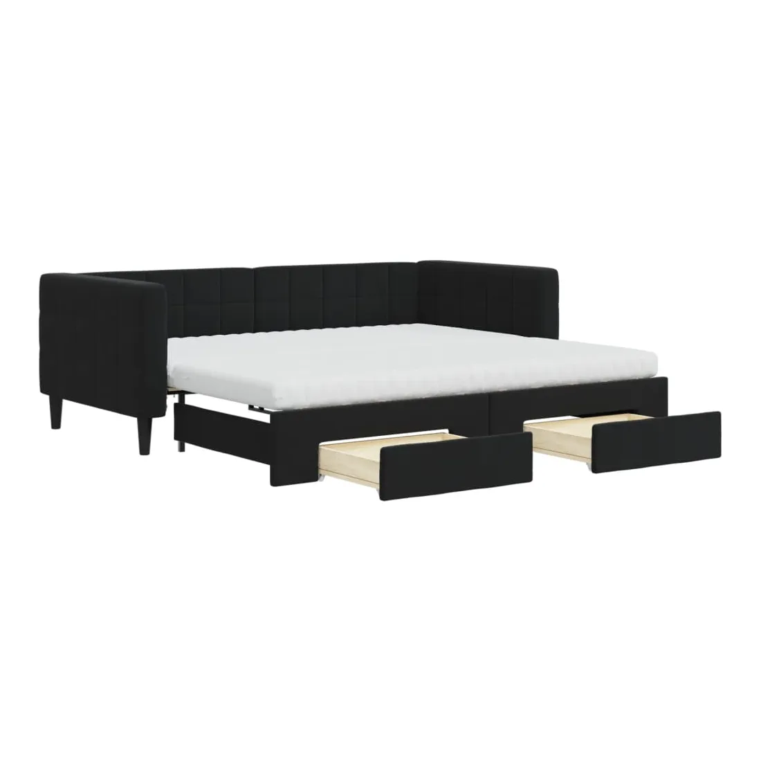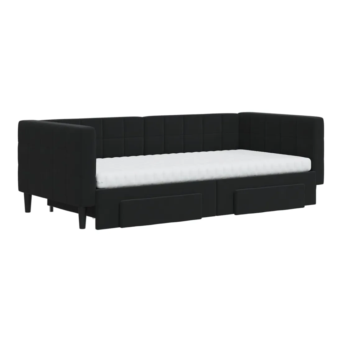 Ce lit de repos 2 en 1 avec lit gigogne, servant à la fois de canapé et de lit, constitue un supplément pratique et accrocheur à votre salon ou chambre à coucher. Lit de repos polyvalent : le canapé-lit fonctionne comme un canapé pendant la journée et se transforme facilement en lit double la nuit en retirant le lit gigogne, offrant une solution pratique pour accueillir des invités et maximiser l'espace.Grand espace de rangement : ce lit d'appoint dispose de deux tiroirs à roulettes qui offrent suffisamment d'espace pour ranger vos vêtements, chaussettes, jouets, coussins, etc.Matelas en mousse confortable : ce lit est fourni avec deux matelas en mousse pour un soutien maximal et un confort optimal.Velours doux et construction solide : ce canapé-lit a un cadre robuste en bois et en métal et est recouvert de velours doux et confortable.