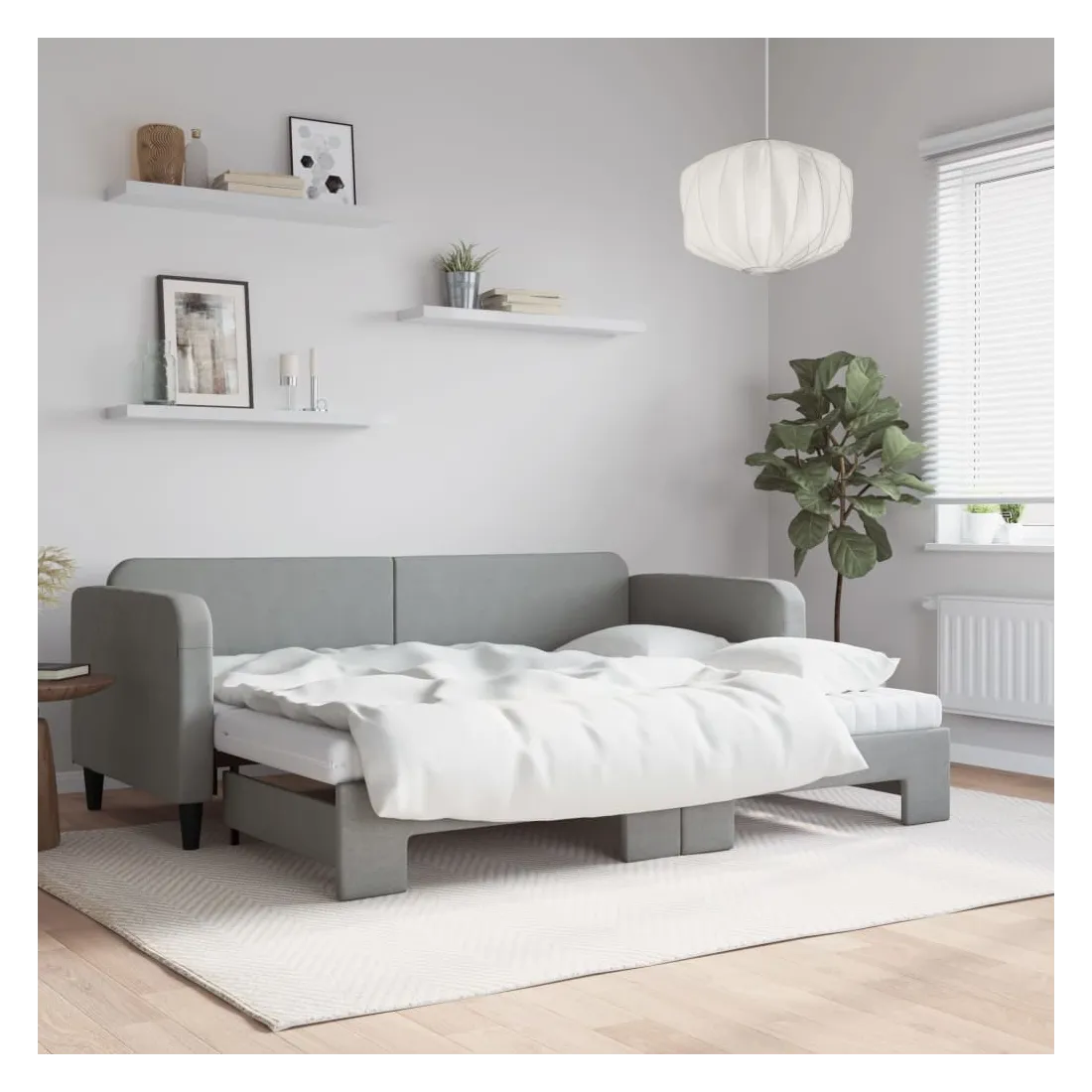 Ce lit de repos 2 en 1 avec lit gigogne, servant à la fois de canapé et de lit, constitue un supplément pratique et accrocheur à votre salon ou chambre à coucher. Lit de repos polyvalent : le canapé-lit fonctionne comme un canapé pendant la journée et se transforme facilement en lit double la nuit en retirant le lit gigogne, offrant une solution pratique pour accueillir des invités et maximiser l'espace.Matelas en mousse confortable : ce lit est fourni avec deux matelas en mousse pour un soutien maximal et un confort optimal.Tissu durable et construction solide : ce canapé-lit a une structure robuste en bois et en métal et est recouvert d'un tissu durable et confortable.