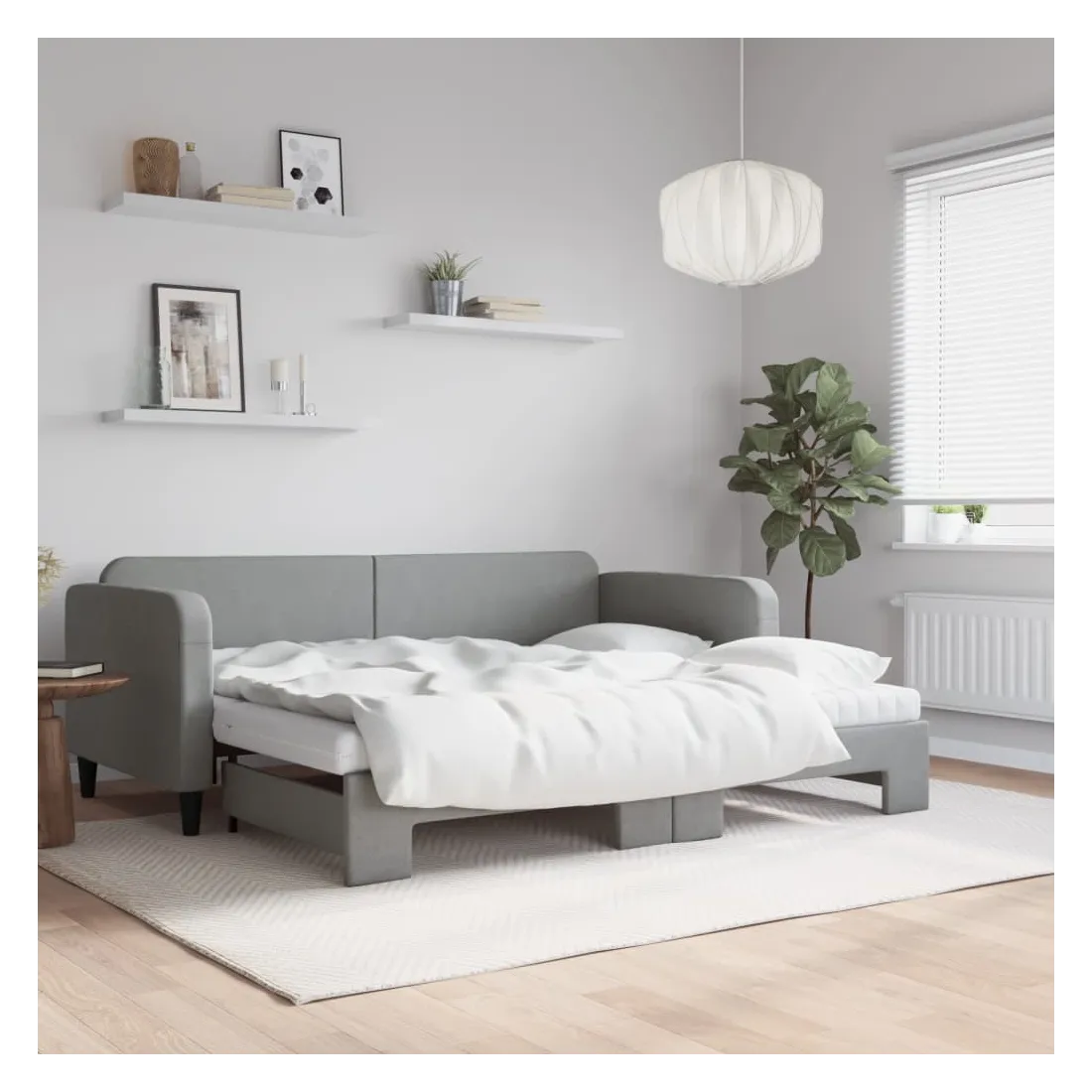 Ce lit de repos 2 en 1 avec lit gigogne, servant à la fois de canapé et de lit, constitue un supplément pratique et accrocheur à votre salon ou chambre à coucher. Lit de repos polyvalent : le canapé-lit fonctionne comme un canapé pendant la journée et se transforme facilement en lit double la nuit en retirant le lit gigogne, offrant une solution pratique pour accueillir des invités et maximiser l'espace.Matelas en mousse confortable : ce lit est fourni avec deux matelas en mousse pour un soutien maximal et un confort optimal.Tissu durable et construction solide : ce canapé-lit a une structure robuste en bois et en métal et est recouvert d'un tissu durable et confortable.