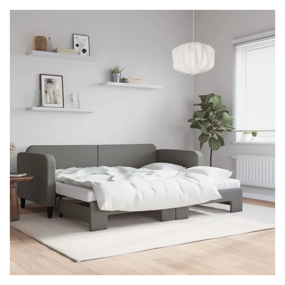 Ce lit de repos 2 en 1 avec lit gigogne, servant à la fois de canapé et de lit, constitue un supplément pratique et accrocheur à votre salon ou chambre à coucher. Lit de repos polyvalent : le canapé-lit fonctionne comme un canapé pendant la journée et se transforme facilement en lit double la nuit en retirant le lit gigogne, offrant une solution pratique pour accueillir des invités et maximiser l'espace.Matelas en mousse confortable : ce lit est fourni avec deux matelas en mousse pour un soutien maximal et un confort optimal.Tissu durable et construction solide : ce canapé-lit a une structure robuste en bois et en métal et est recouvert d'un tissu durable et confortable.