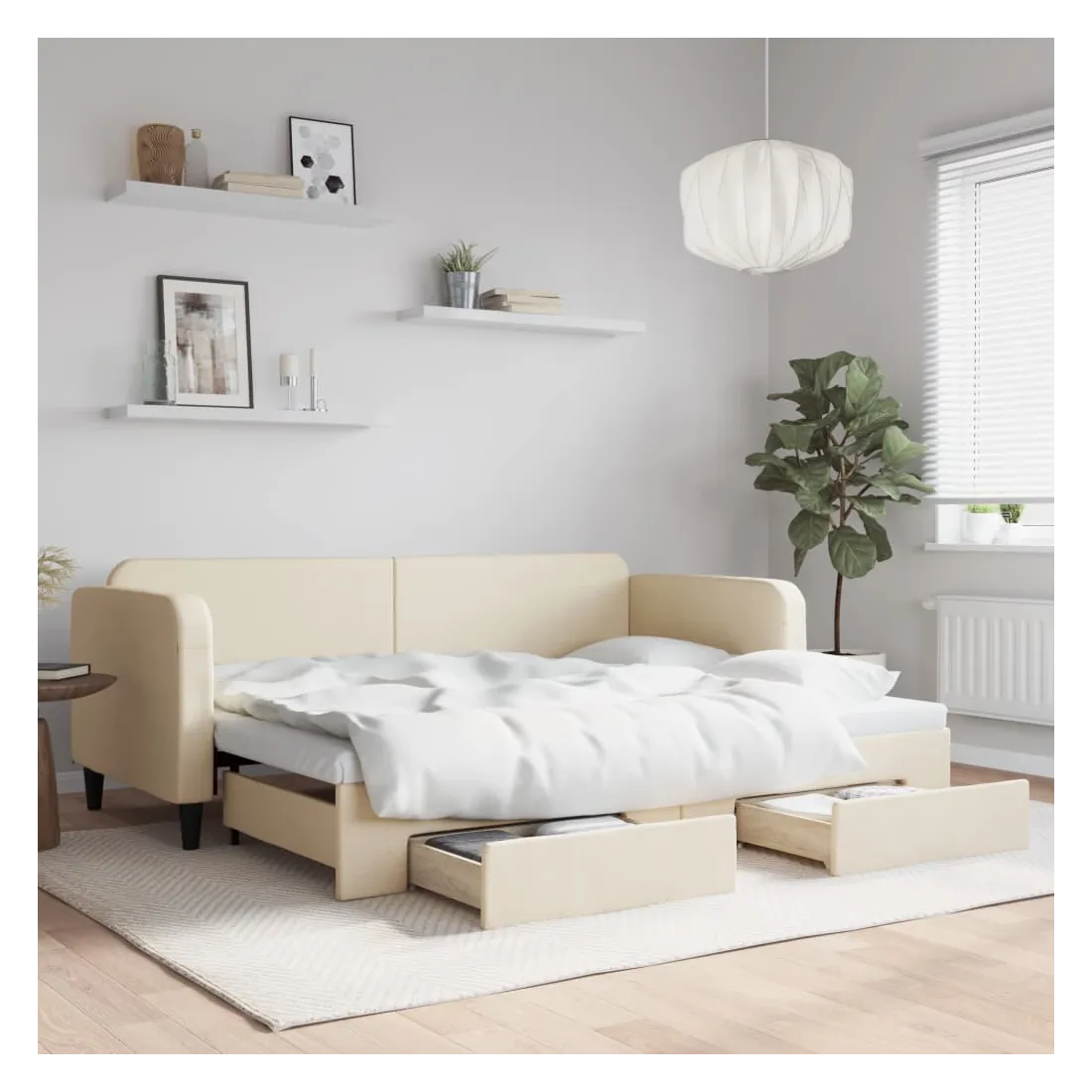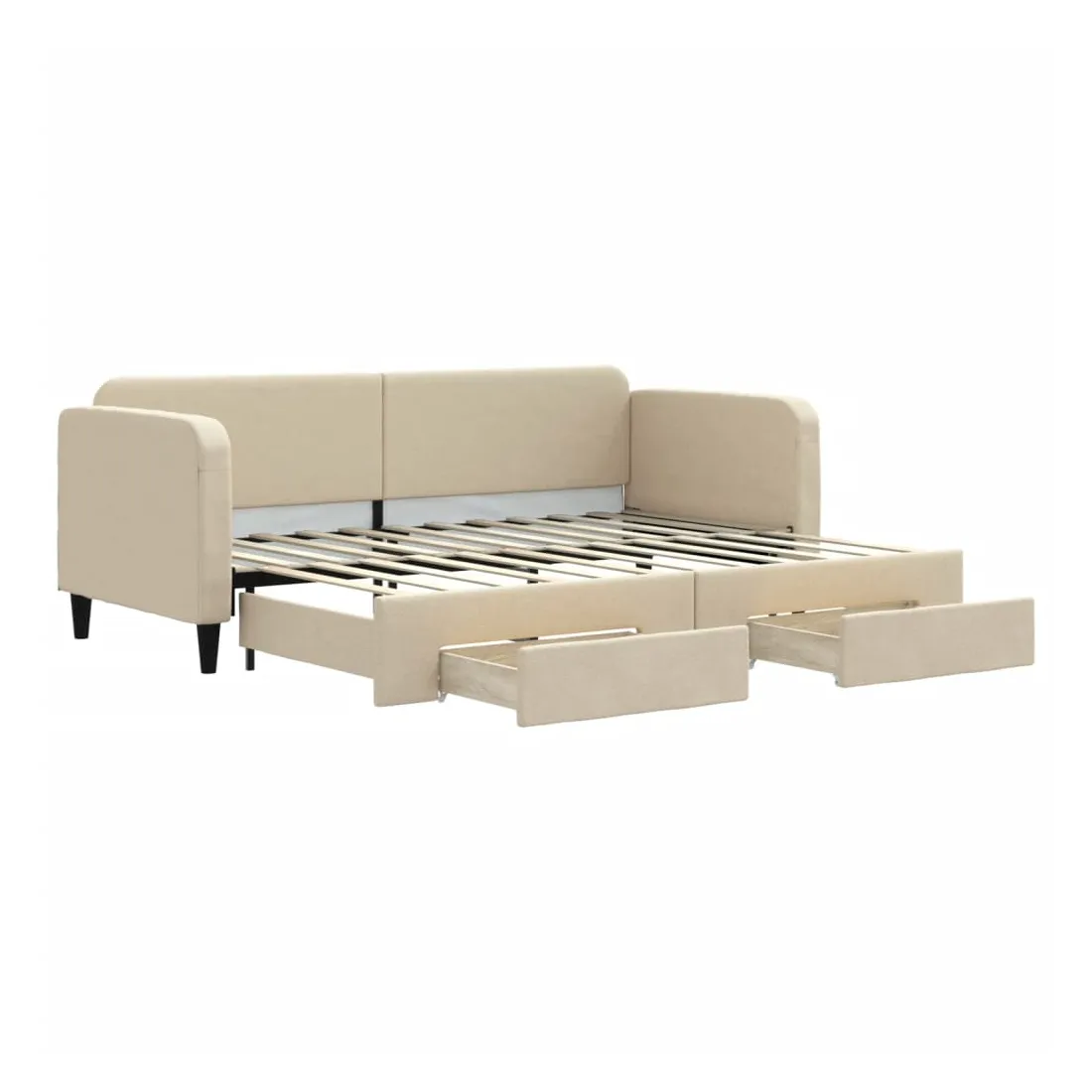 Ce lit de repos 2 en 1 avec lit gigogne, servant à la fois de canapé et de lit, constitue un supplément pratique et accrocheur à votre salon ou chambre à coucher. Lit de repos polyvalent : le canapé-lit fonctionne comme un canapé pendant la journée et se transforme facilement en lit double la nuit en retirant le lit gigogne, offrant une solution pratique pour accueillir des invités et maximiser l'espace.Grand espace de rangement : ce lit d'appoint dispose de deux tiroirs à roulettes qui offrent suffisamment d'espace pour ranger vos vêtements, chaussettes, jouets, coussins, etc.Tissu durable et construction solide : ce canapé-lit a une structure robuste en bois et en métal et est recouvert d'un tissu durable et confortable. Bon à savoir :Les matelas ne sont pas inclus avec ce lit de repos. Nous proposons une sélection variée de matelas. Vous pouvez consulter notre boutique pour les matelas assortis.