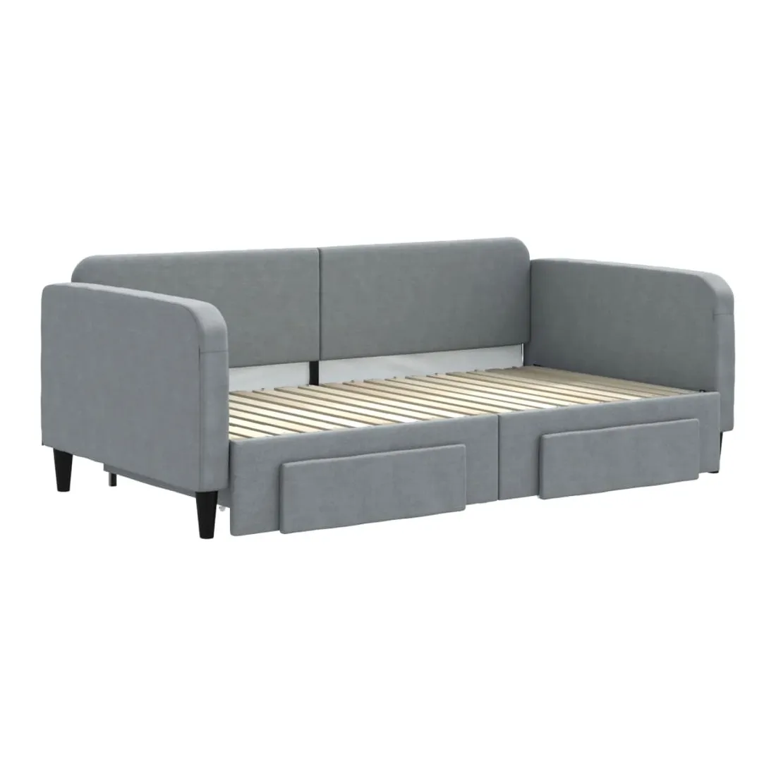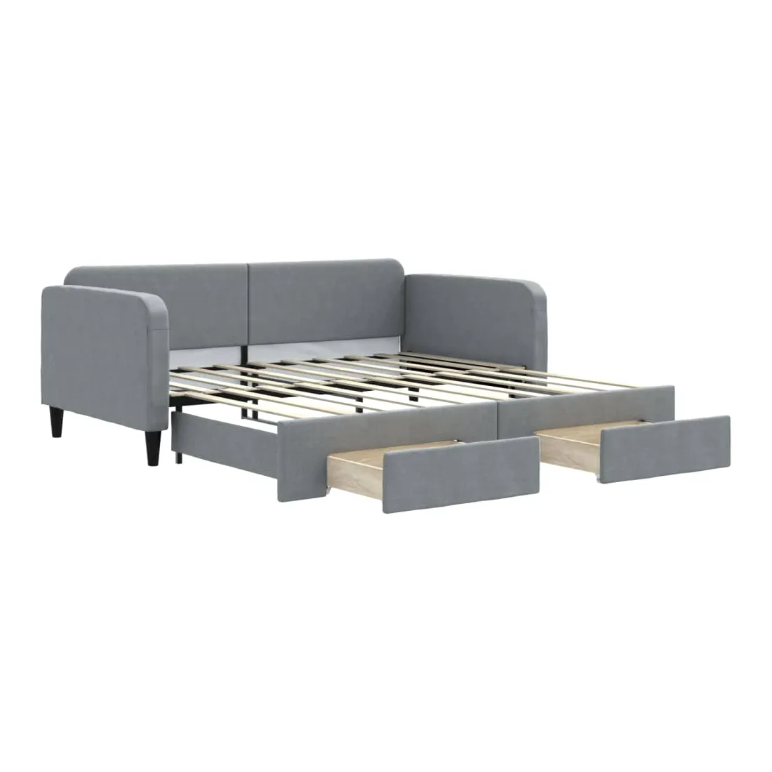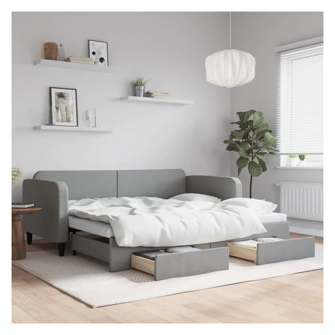 Lit de jour avec gigogne et tiroirs gris clair 90x190 cm tissu