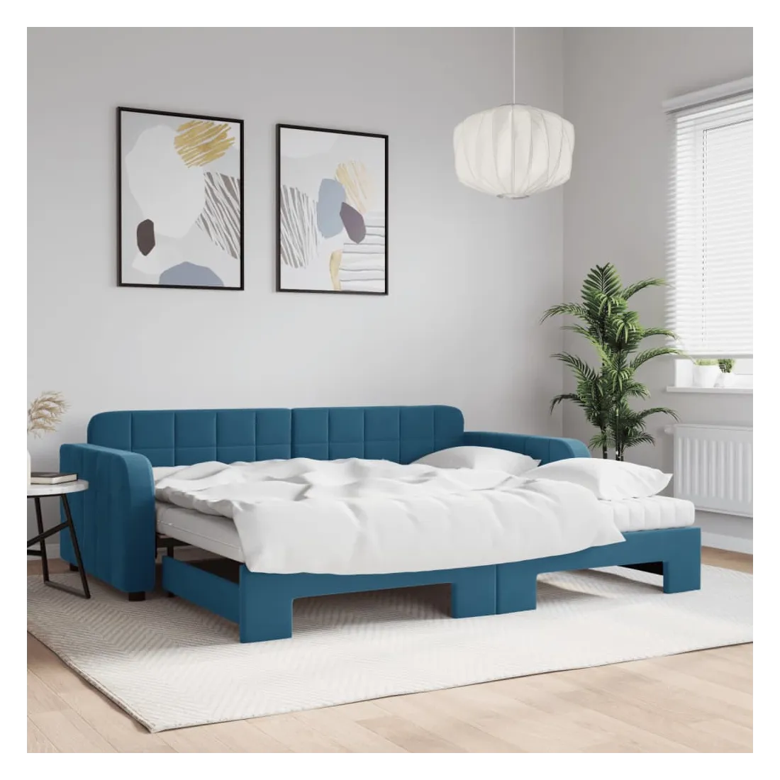 Ce lit de repos 2 en 1 avec lit gigogne, servant à la fois de canapé et de lit, constitue un supplément pratique et accrocheur à votre salon ou chambre à coucher. Lit de repos polyvalent : le canapé-lit fonctionne comme un canapé pendant la journée et se transforme facilement en lit double la nuit en retirant le lit gigogne, offrant une solution pratique pour accueillir des invités et maximiser l'espace.Matelas en mousse confortable : ce lit est fourni avec deux matelas en mousse pour un soutien maximal et un confort optimal.Velours doux et construction solide : ce canapé-lit a un cadre robuste en bois et en métal et est recouvert de velours doux et confortable.