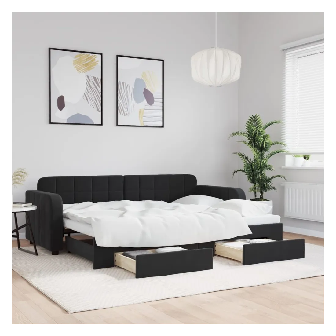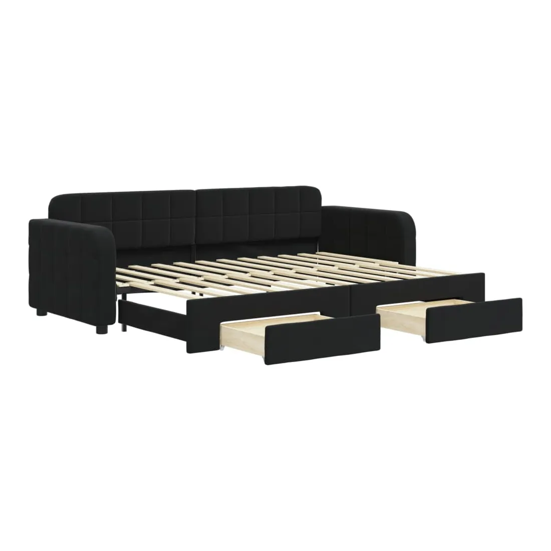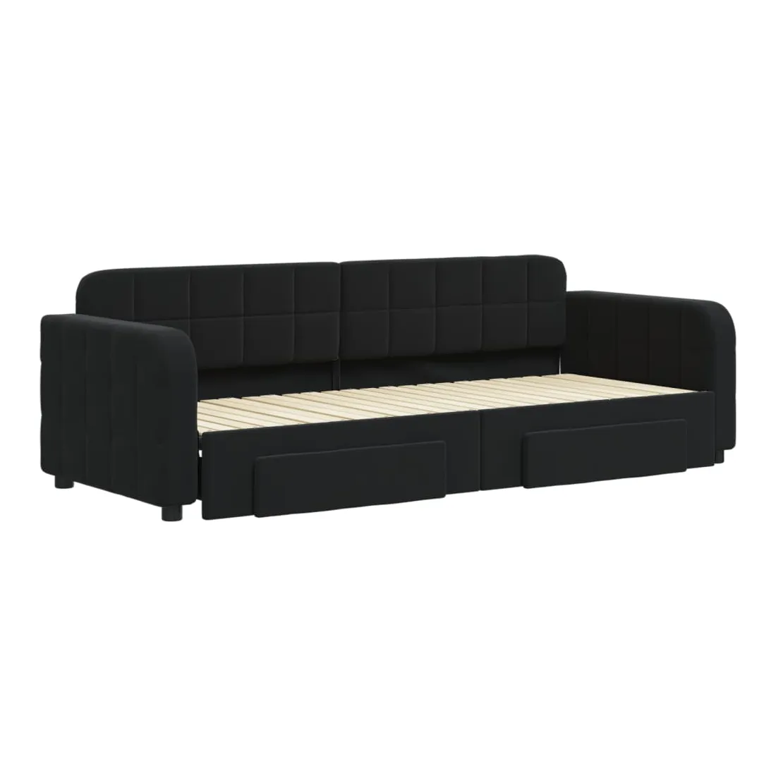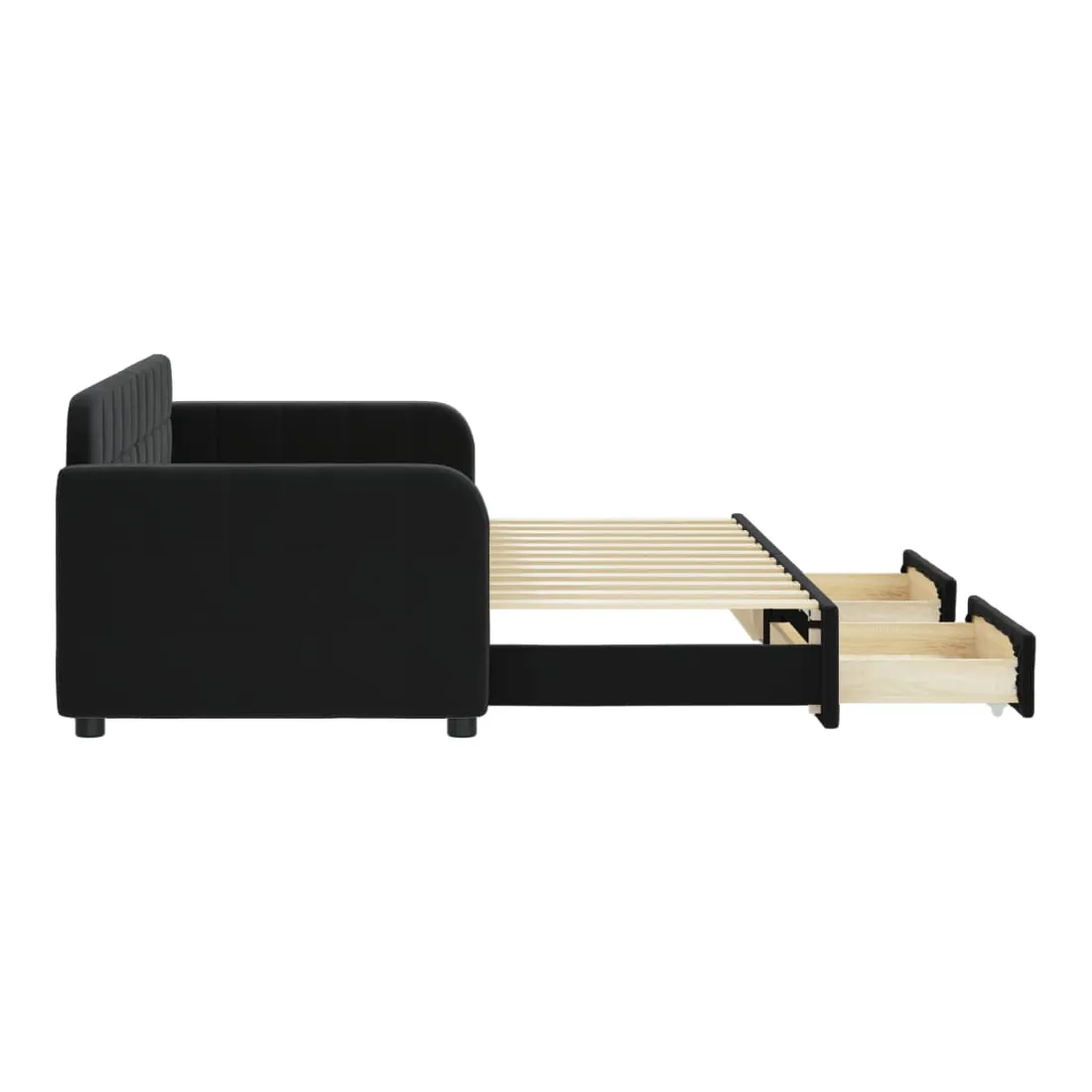Ce lit de repos 2 en 1 avec lit gigogne, servant à la fois de canapé et de lit, constitue un supplément pratique et accrocheur à votre salon ou chambre à coucher. Lit de repos polyvalent : le canapé-lit fonctionne comme un canapé pendant la journée et se transforme facilement en lit double la nuit en retirant le lit gigogne, offrant une solution pratique pour accueillir des invités et maximiser l'espace. Grand espace de rangement : ce lit d'appoint dispose de deux tiroirs à roulettes qui offrent suffisamment d'espace pour ranger vos vêtements, chaussettes, jouets, coussins, etc.Velours doux et construction solide : ce canapé-lit a un cadre robuste en bois et en métal et est recouvert de velours doux et confortable. Bon à savoir :Les matelas ne sont pas inclus avec ce lit. Nous proposons une sélection variée de matelas. Vous pouvez consulter notre boutique pour trouver les matelas assortis.