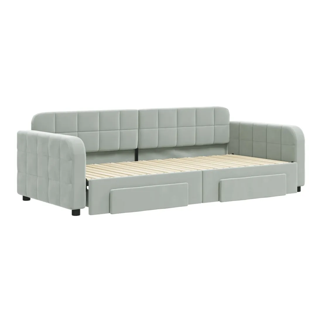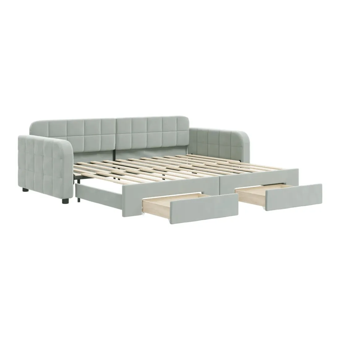 Ce lit de repos 2 en 1 avec lit gigogne, servant à la fois de canapé et de lit, constitue un supplément pratique et accrocheur à votre salon ou chambre à coucher. Lit de repos polyvalent : le canapé-lit fonctionne comme un canapé pendant la journée et se transforme facilement en lit double la nuit en retirant le lit gigogne, offrant une solution pratique pour accueillir des invités et maximiser l'espace. Grand espace de rangement : ce lit d'appoint dispose de deux tiroirs à roulettes qui offrent suffisamment d'espace pour ranger vos vêtements, chaussettes, jouets, coussins, etc.Velours doux et construction solide : ce canapé-lit a un cadre robuste en bois et en métal et est recouvert de velours doux et confortable. Bon à savoir :Les matelas ne sont pas inclus avec ce lit. Nous proposons une sélection variée de matelas. Vous pouvez consulter notre boutique pour trouver les matelas assortis.