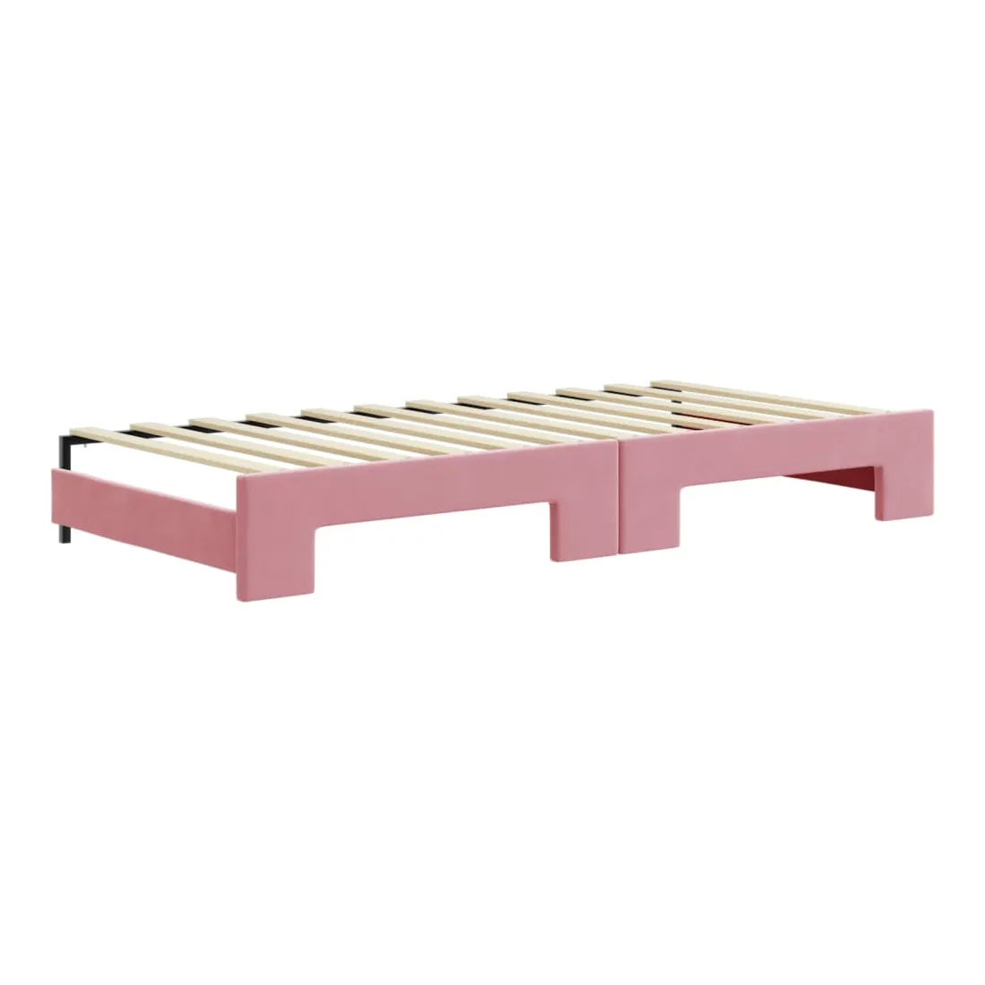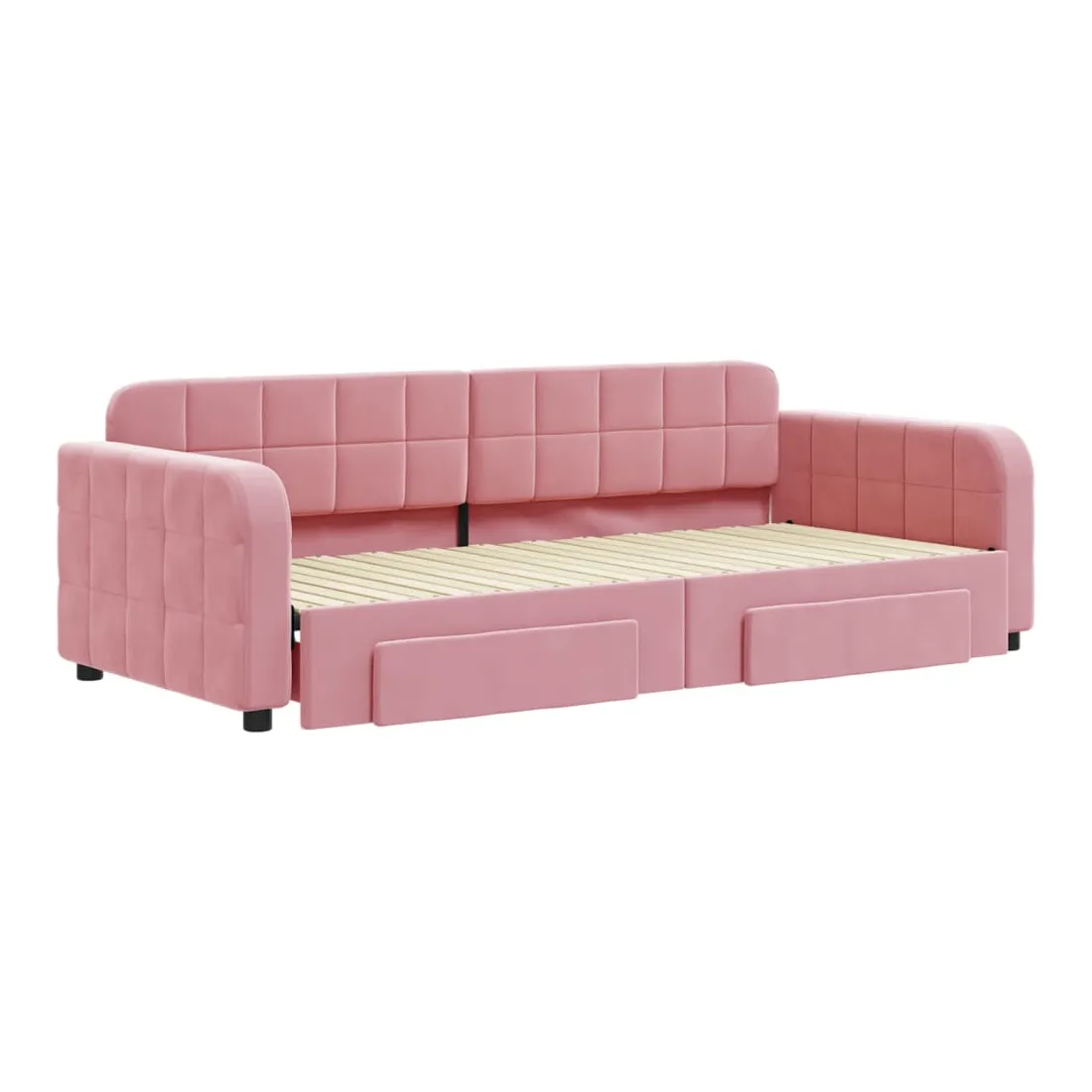 Ce lit de repos 2 en 1 avec lit gigogne, servant à la fois de canapé et de lit, constitue un supplément pratique et accrocheur à votre salon ou chambre à coucher. Lit de repos polyvalent : le canapé-lit fonctionne comme un canapé pendant la journée et se transforme facilement en lit double la nuit en retirant le lit gigogne, offrant une solution pratique pour accueillir des invités et maximiser l'espace. Grand espace de rangement : ce lit d'appoint dispose de deux tiroirs à roulettes qui offrent suffisamment d'espace pour ranger vos vêtements, chaussettes, jouets, coussins, etc.Velours doux et construction solide : ce canapé-lit a un cadre robuste en bois et en métal et est recouvert de velours doux et confortable. Bon à savoir :Les matelas ne sont pas inclus avec ce lit. Nous proposons une sélection variée de matelas. Vous pouvez consulter notre boutique pour trouver les matelas assortis.