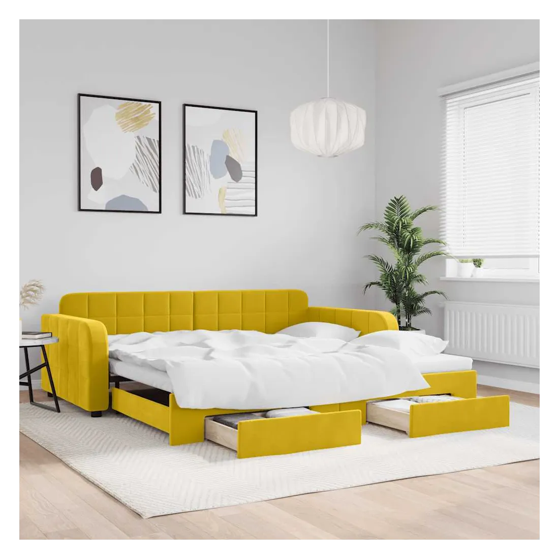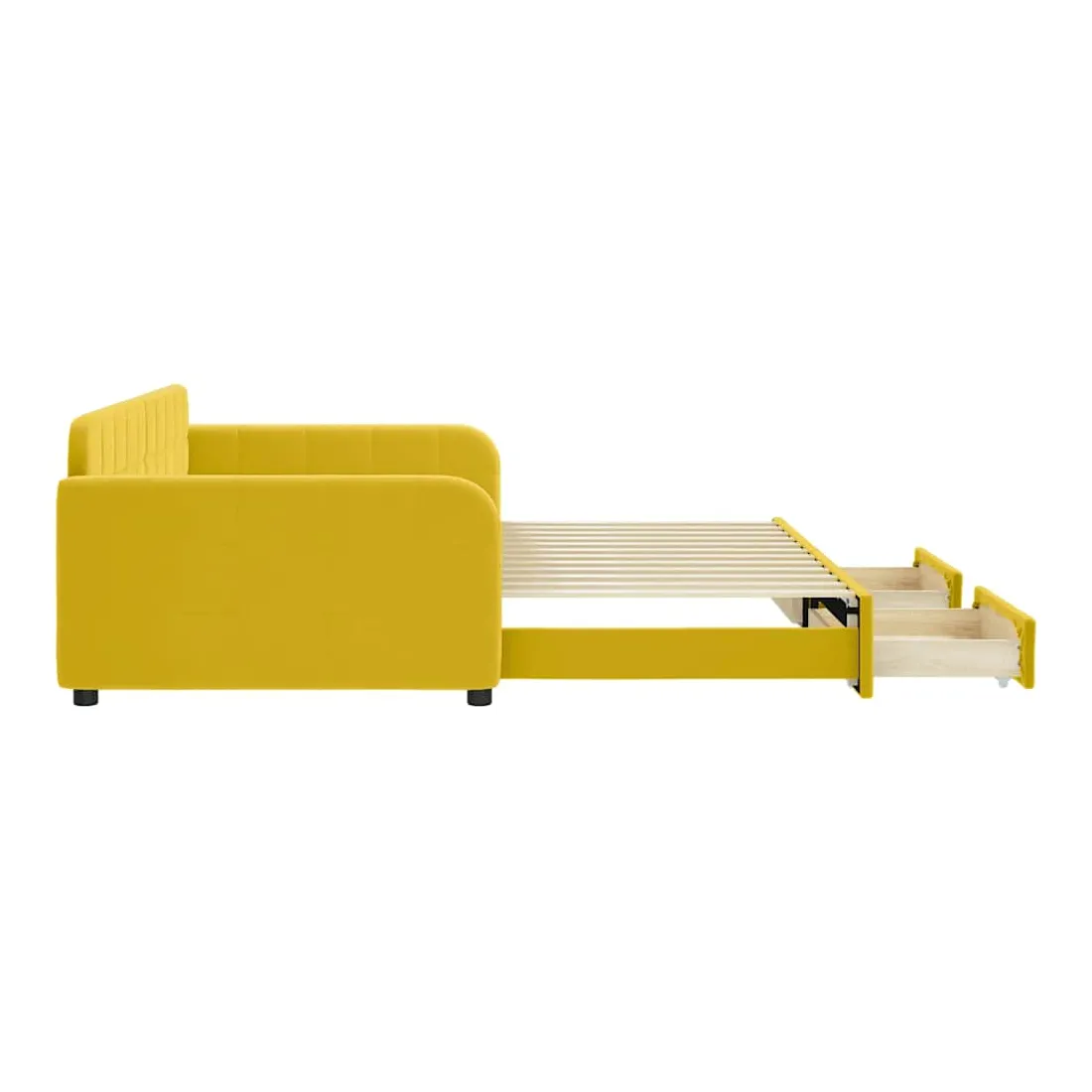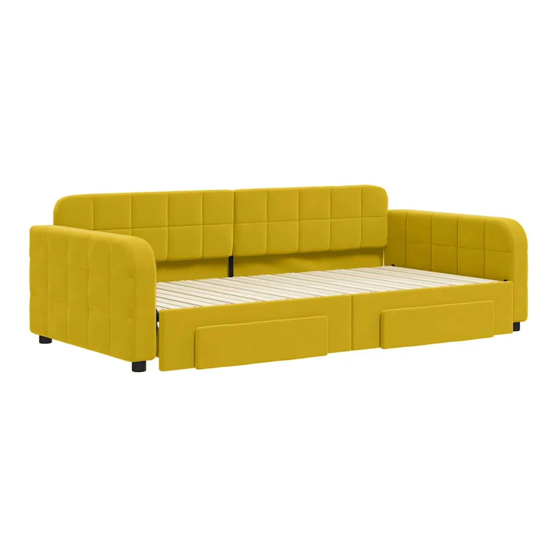Ce lit de repos 2 en 1 avec lit gigogne, servant à la fois de canapé et de lit, constitue un supplément pratique et accrocheur à votre salon ou chambre à coucher. Lit de repos polyvalent : le canapé-lit fonctionne comme un canapé pendant la journée et se transforme facilement en lit double la nuit en retirant le lit gigogne, offrant une solution pratique pour accueillir des invités et maximiser l'espace. Grand espace de rangement : ce lit d'appoint dispose de deux tiroirs à roulettes qui offrent suffisamment d'espace pour ranger vos vêtements, chaussettes, jouets, coussins, etc.Velours doux et construction solide : ce canapé-lit a un cadre robuste en bois et en métal et est recouvert de velours doux et confortable. Bon à savoir :Les matelas ne sont pas inclus avec ce lit. Nous proposons une sélection variée de matelas. Vous pouvez consulter notre boutique pour trouver les matelas assortis.