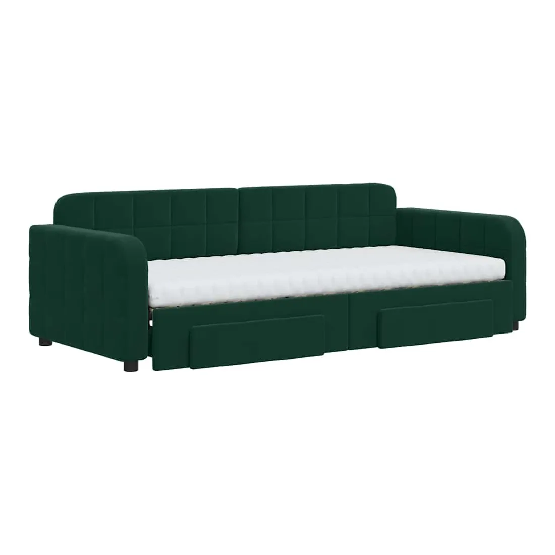 Ce lit de repos 2 en 1 avec lit gigogne, servant à la fois de canapé et de lit, constitue un supplément pratique et accrocheur à votre salon ou chambre à coucher. Lit de repos polyvalent : le canapé-lit fonctionne comme un canapé pendant la journée et se transforme facilement en lit double la nuit en retirant le lit gigogne, offrant une solution pratique pour accueillir des invités et maximiser l'espace.Grand espace de rangement : ce lit d'appoint dispose de deux tiroirs à roulettes qui offrent suffisamment d'espace pour ranger vos vêtements, chaussettes, jouets, coussins, etc.Matelas en mousse confortable : ce lit est fourni avec deux matelas en mousse pour un soutien maximal et un confort optimal.Velours doux et construction solide : ce canapé-lit a un cadre robuste en bois et en métal et est recouvert de velours doux et confortable.