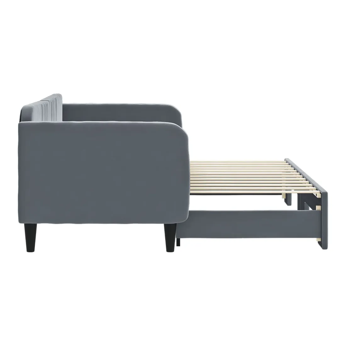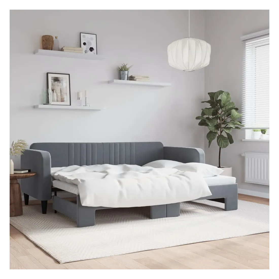 Ce lit de repos 2 en 1 avec lit gigogne, servant à la fois de canapé et de lit, constitue un supplément pratique et accrocheur à votre salon ou chambre à coucher. Lit de repos polyvalent : le canapé-lit fonctionne comme un canapé pendant la journée et se transforme facilement en lit double la nuit en retirant le lit gigogne, offrant une solution pratique pour accueillir des invités et maximiser l'espace.Velours doux et construction solide : ce canapé-lit a un cadre robuste en bois et en métal et est recouvert de velours doux et confortable.Design moderne : le canapé-lit a un design moderne qui présente des lignes épurées, un aspect minimaliste, ainsi que de la lumière naturelle, et ajoutera un style moderne à votre intérieur ! Bon à savoir :Les matelas ne sont pas inclus avec ce lit. Nous proposons une sélection variée de matelas. Vous pouvez consulter notre boutique pour trouver les matelas assortis.