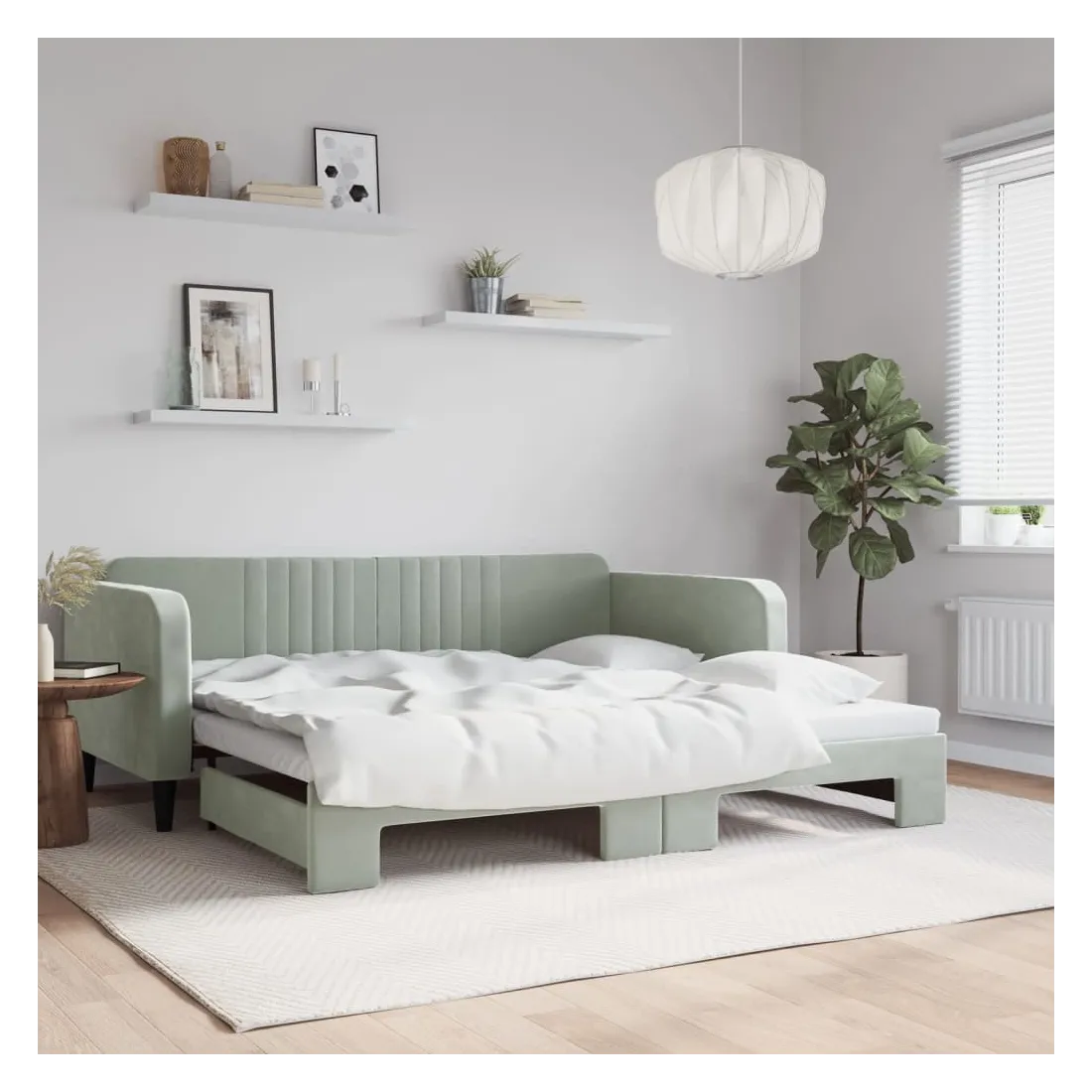 Ce lit de repos 2 en 1 avec lit gigogne, servant à la fois de canapé et de lit, constitue un supplément pratique et accrocheur à votre salon ou chambre à coucher. Lit de repos polyvalent : le canapé-lit fonctionne comme un canapé pendant la journée et se transforme facilement en lit double la nuit en retirant le lit gigogne, offrant une solution pratique pour accueillir des invités et maximiser l'espace.Velours doux et construction solide : ce canapé-lit a un cadre robuste en bois et en métal et est recouvert de velours doux et confortable.Design moderne : le canapé-lit a un design moderne qui présente des lignes épurées, un aspect minimaliste, ainsi que de la lumière naturelle, et ajoutera un style moderne à votre intérieur ! Bon à savoir :Les matelas ne sont pas inclus avec ce lit. Nous proposons une sélection variée de matelas. Vous pouvez consulter notre boutique pour trouver les matelas assortis.