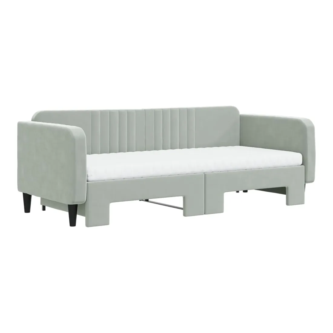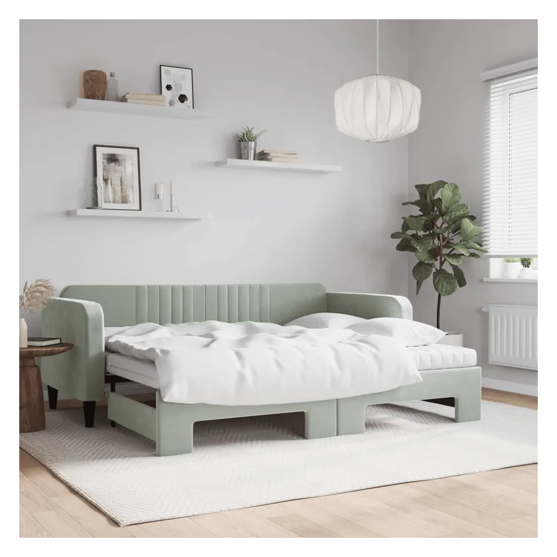 Ce lit de repos 2 en 1 avec lit gigogne, servant à la fois de canapé et de lit, constitue un supplément pratique et accrocheur à votre salon ou chambre à coucher. Lit de repos polyvalent : le canapé-lit fonctionne comme un canapé pendant la journée et se transforme facilement en lit double la nuit en retirant le lit gigogne, offrant une solution pratique pour accueillir des invités et maximiser l'espace.Matelas en mousse confortable : ce lit est fourni avec deux matelas en mousse pour un soutien maximal et un confort optimal.Velours doux et construction solide : ce canapé-lit a un cadre robuste en bois et en métal et est recouvert de velours doux et confortable.Design moderne : le canapé-lit a un design moderne qui présente des lignes épurées, un aspect minimaliste, ainsi que de la lumière naturelle, et ajoutera un style moderne à votre intérieur !
