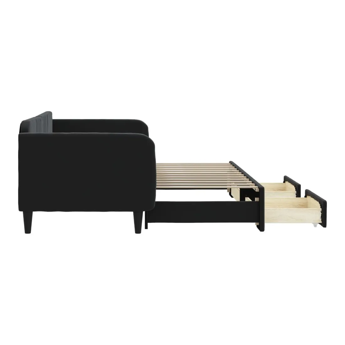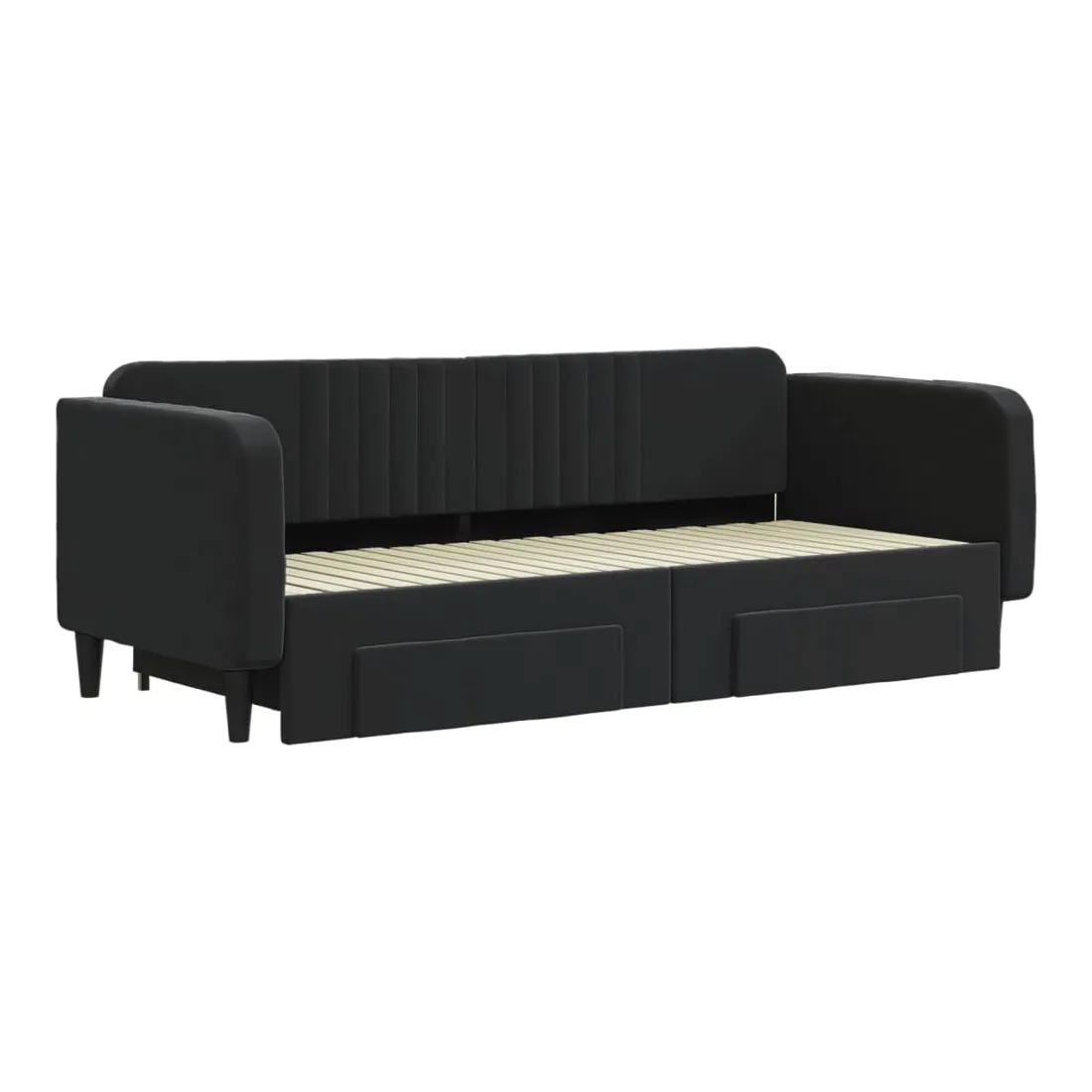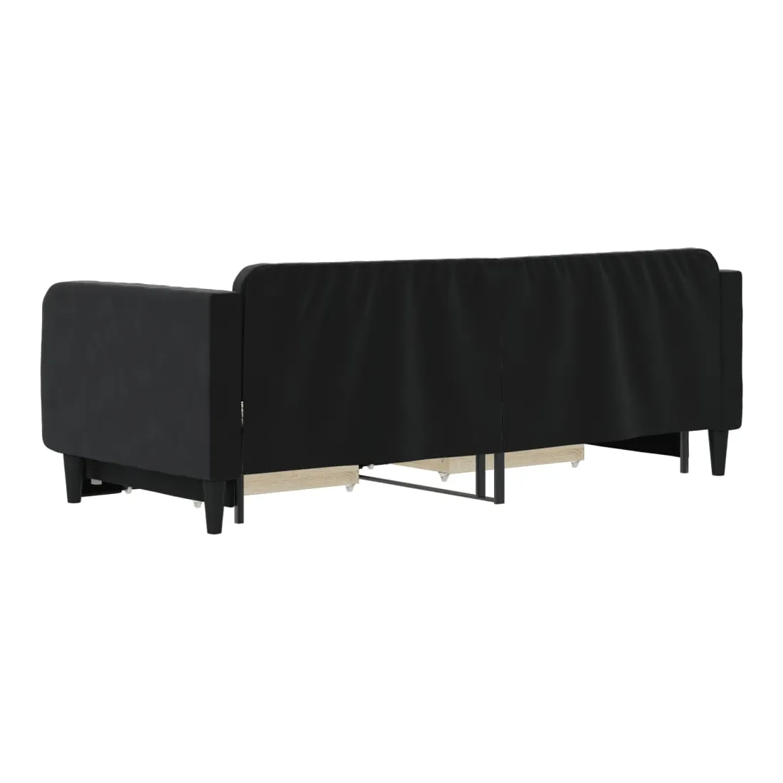 Ce lit de repos 2 en 1 avec lit gigogne, servant à la fois de canapé et de lit, constitue un supplément pratique et accrocheur à votre salon ou chambre à coucher. Lit de repos polyvalent : le canapé-lit fonctionne comme un canapé pendant la journée et se transforme facilement en lit double la nuit en retirant le lit gigogne, offrant une solution pratique pour accueillir des invités et maximiser l'espace.Grand espace de rangement : ce lit d'appoint dispose de deux tiroirs à roulettes qui offrent suffisamment d'espace pour ranger vos vêtements, chaussettes, jouets, coussins, etc.Velours doux et construction solide : ce canapé-lit a un cadre robuste en bois et en métal et est recouvert de velours doux et confortable.Design moderne : le canapé-lit a un design moderne qui présente des lignes épurées, un aspect minimaliste, ainsi que de la lumière naturelle, et ajoutera un style moderne à votre intérieur ! Bon à savoir :Les matelas ne sont pas inclus avec ce lit. Nous proposons une sélection variée de matelas. Vous pouvez consulter notre boutique pour trouver les matelas assortis.