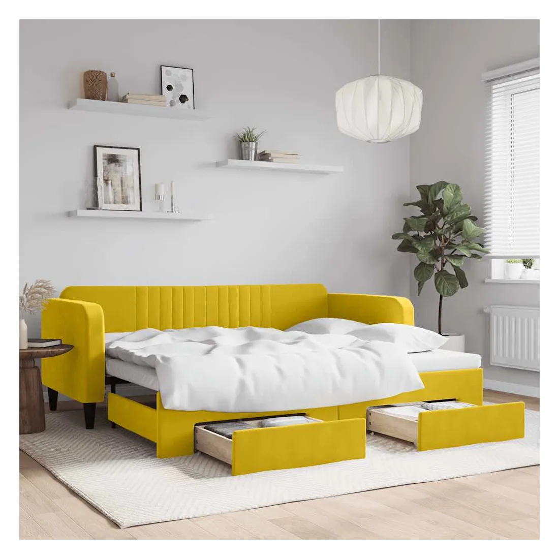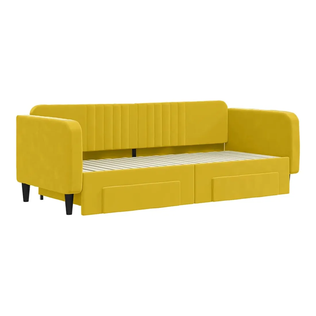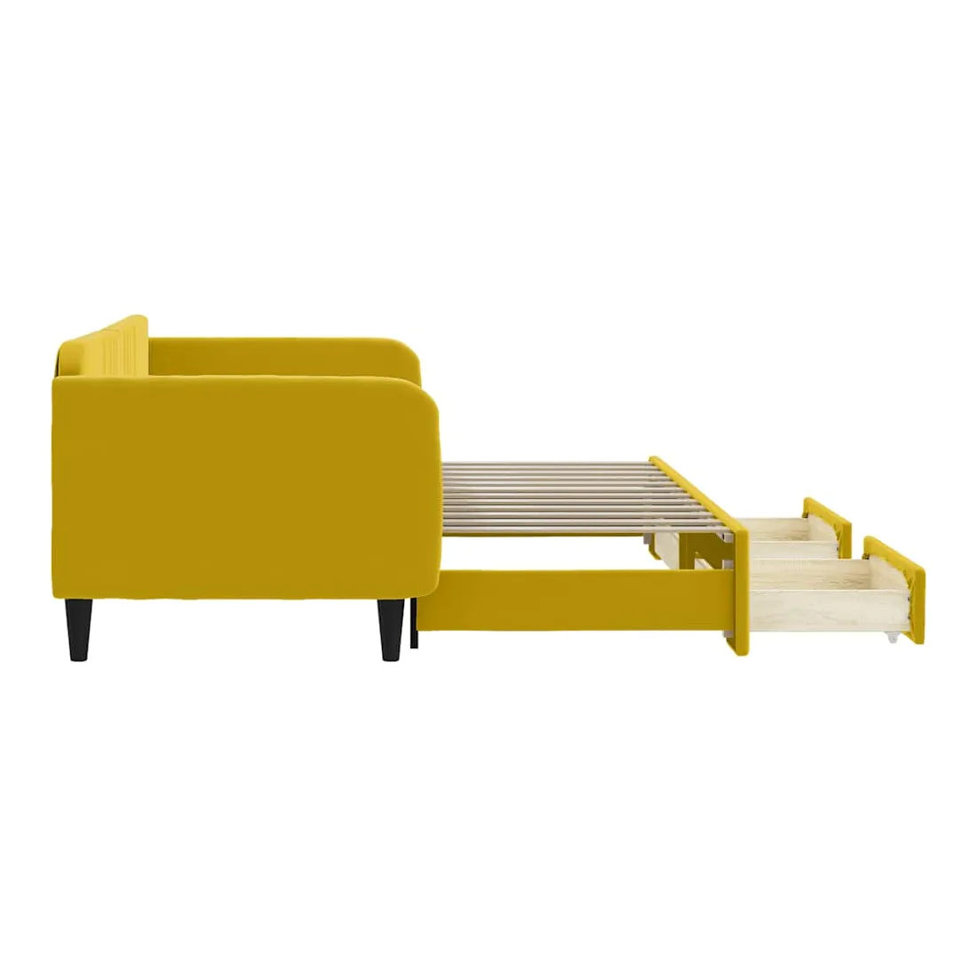 Lit de jour avec gigogne et tiroirs jaune 90x200 cm velours