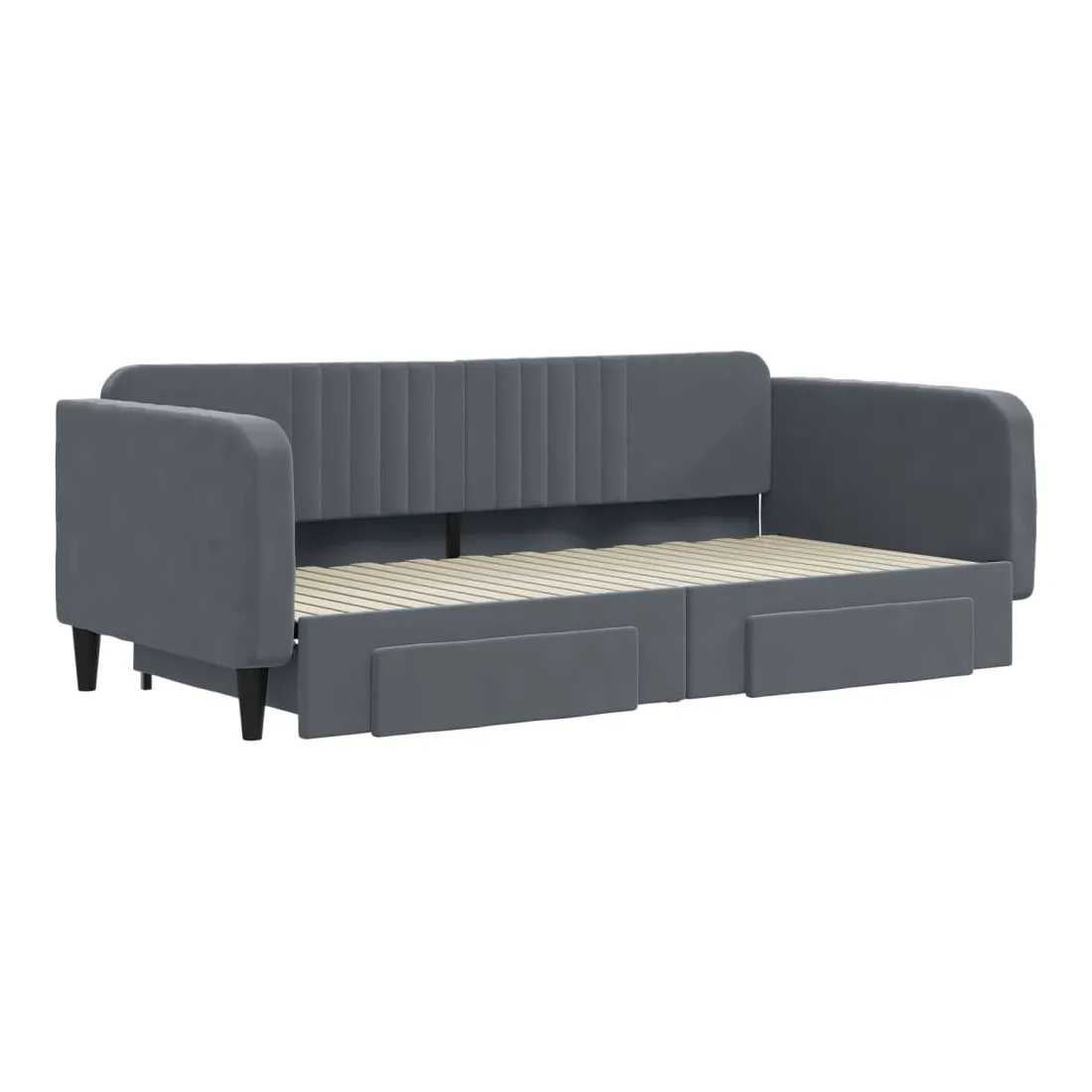 Ce lit de repos 2 en 1 avec lit gigogne, servant à la fois de canapé et de lit, constitue un supplément pratique et accrocheur à votre salon ou chambre à coucher. Lit de repos polyvalent : le canapé-lit fonctionne comme un canapé pendant la journée et se transforme facilement en lit double la nuit en retirant le lit gigogne, offrant une solution pratique pour accueillir des invités et maximiser l'espace.Grand espace de rangement : ce lit d'appoint dispose de deux tiroirs à roulettes qui offrent suffisamment d'espace pour ranger vos vêtements, chaussettes, jouets, coussins, etc.Velours doux et construction solide : ce canapé-lit a un cadre robuste en bois et en métal et est recouvert de velours doux et confortable.Design moderne : le canapé-lit a un design moderne qui présente des lignes épurées, un aspect minimaliste, ainsi que de la lumière naturelle, et ajoutera un style moderne à votre intérieur ! Bon à savoir :Les matelas ne sont pas inclus avec ce lit. Nous proposons une sélection variée de matelas. Vous pouvez consulter notre boutique pour trouver les matelas assortis.