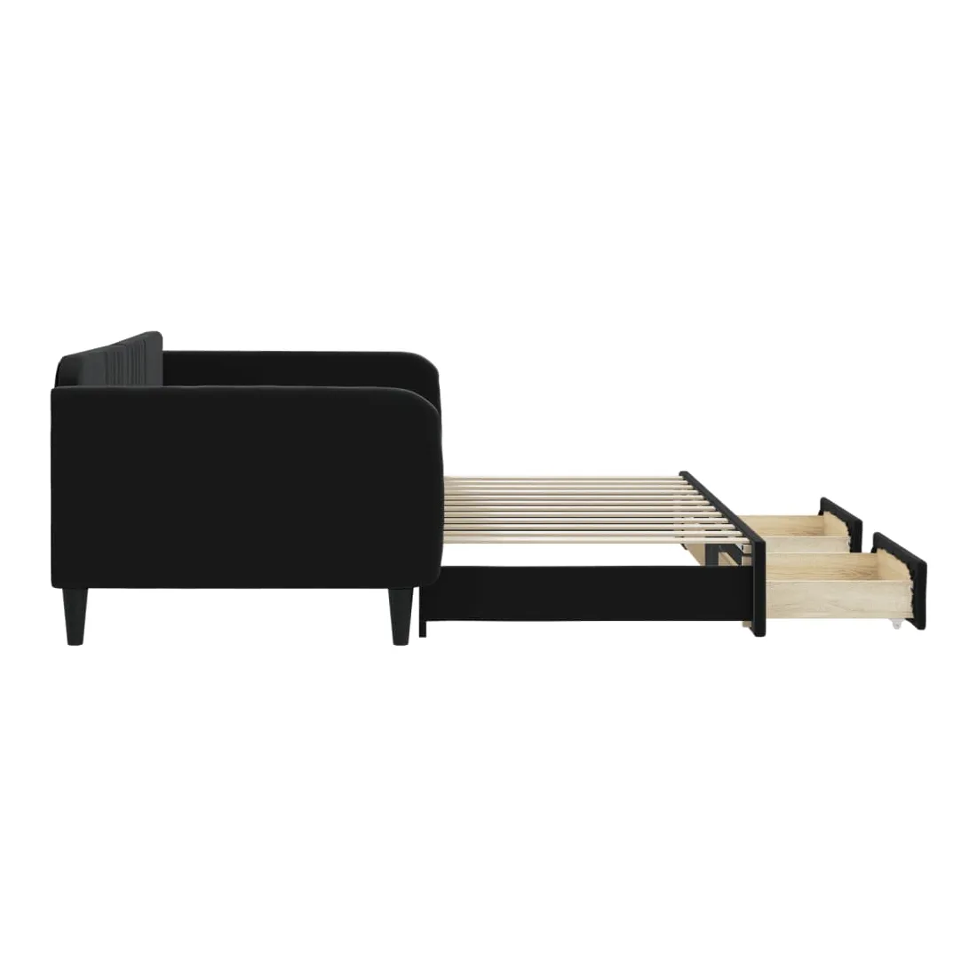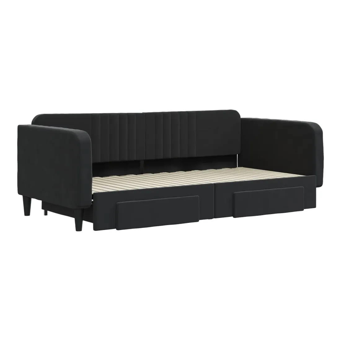 Ce lit de repos 2 en 1 avec lit gigogne, servant à la fois de canapé et de lit, constitue un supplément pratique et accrocheur à votre salon ou chambre à coucher. Lit de repos polyvalent : le canapé-lit fonctionne comme un canapé pendant la journée et se transforme facilement en lit double la nuit en retirant le lit gigogne, offrant une solution pratique pour accueillir des invités et maximiser l'espace.Grand espace de rangement : ce lit d'appoint dispose de deux tiroirs à roulettes qui offrent suffisamment d'espace pour ranger vos vêtements, chaussettes, jouets, coussins, etc.Velours doux et construction solide : ce canapé-lit a un cadre robuste en bois et en métal et est recouvert de velours doux et confortable.Design moderne : le canapé-lit a un design moderne qui présente des lignes épurées, un aspect minimaliste, ainsi que de la lumière naturelle, et ajoutera un style moderne à votre intérieur ! Bon à savoir :Les matelas ne sont pas inclus avec ce lit. Nous proposons une sélection variée de matelas. Vous pouvez consulter notre boutique pour trouver les matelas assortis.