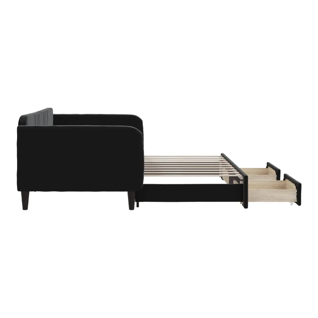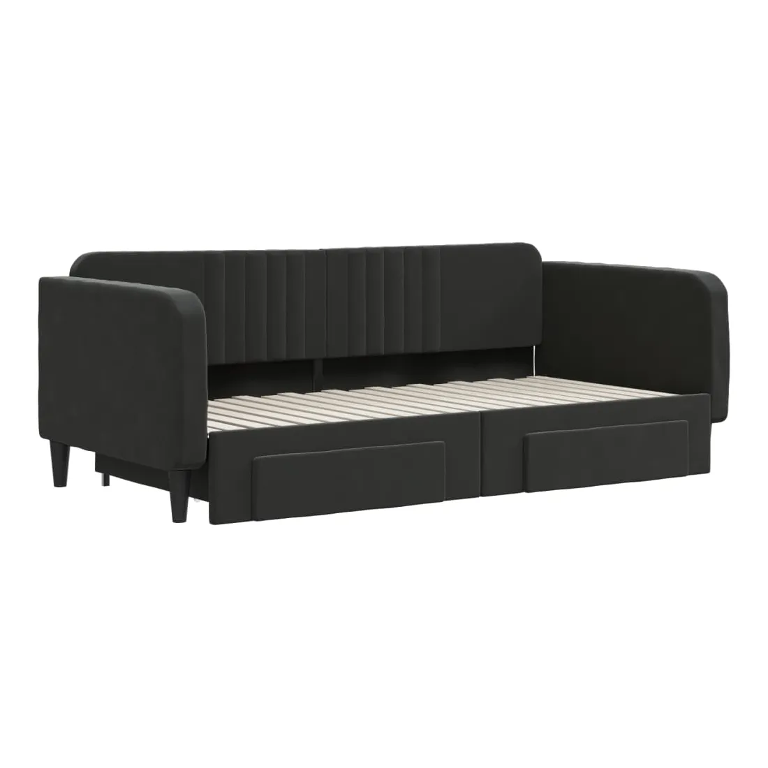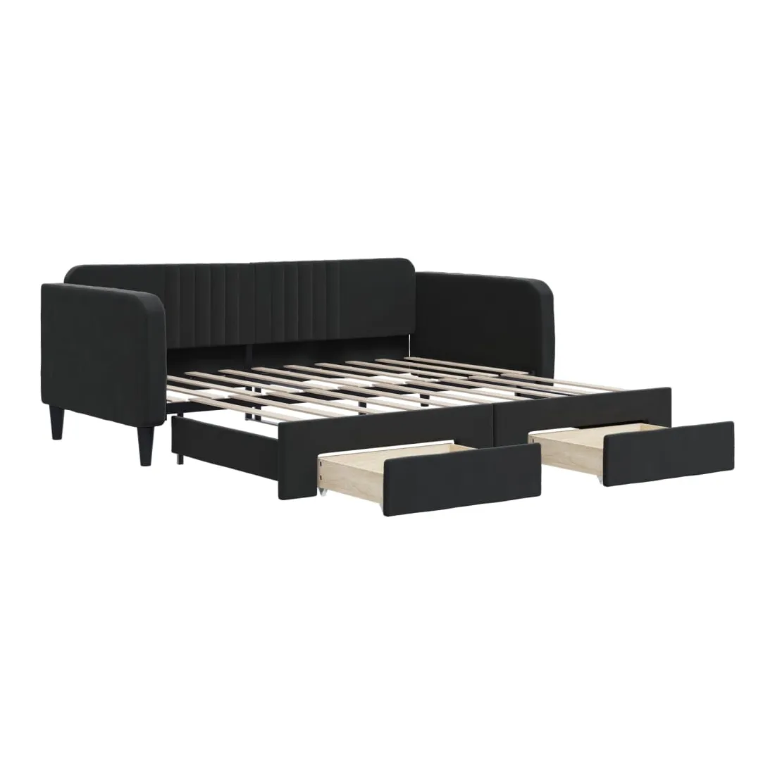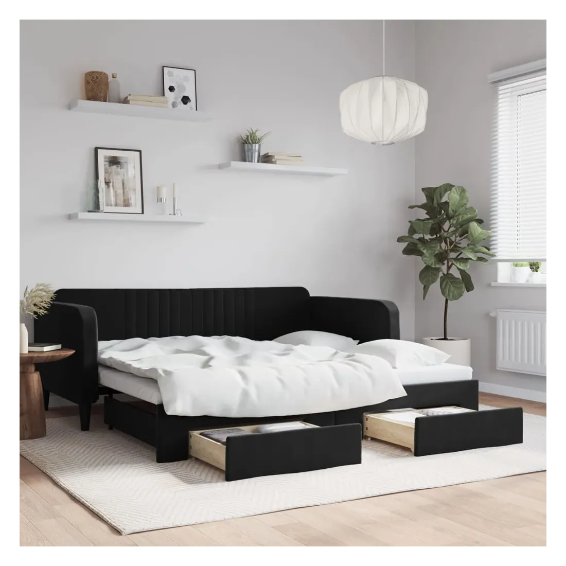 Ce lit de repos 2 en 1 avec lit gigogne, servant à la fois de canapé et de lit, constitue un supplément pratique et accrocheur à votre salon ou chambre à coucher. Lit de repos polyvalent : le canapé-lit fonctionne comme un canapé pendant la journée et se transforme facilement en lit double la nuit en retirant le lit gigogne, offrant une solution pratique pour accueillir des invités et maximiser l'espace.Grand espace de rangement : ce lit d'appoint dispose de deux tiroirs à roulettes qui offrent suffisamment d'espace pour ranger vos vêtements, chaussettes, jouets, coussins, etc.Velours doux et construction solide : ce canapé-lit a un cadre robuste en bois et en métal et est recouvert de velours doux et confortable.Design moderne : le canapé-lit a un design moderne qui présente des lignes épurées, un aspect minimaliste, ainsi que de la lumière naturelle, et ajoutera un style moderne à votre intérieur ! Bon à savoir :Les matelas ne sont pas inclus avec ce lit. Nous proposons une sélection variée de matelas. Vous pouvez consulter notre boutique pour trouver les matelas assortis.