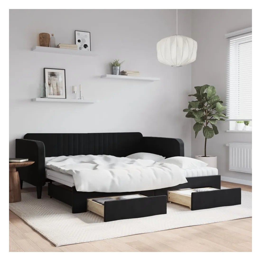 Ce lit de repos 2 en 1 avec lit gigogne, servant à la fois de canapé et de lit, constitue un supplément pratique et accrocheur à votre salon ou chambre à coucher. Lit de repos polyvalent : le canapé-lit fonctionne comme un canapé pendant la journée et se transforme facilement en lit double la nuit en retirant le lit gigogne, offrant une solution pratique pour accueillir des invités et maximiser l'espace.Grand espace de rangement : ce lit d'appoint dispose de deux tiroirs à roulettes qui offrent suffisamment d'espace pour ranger vos vêtements, chaussettes, jouets, coussins, etc.Matelas en mousse confortable : ce lit est fourni avec deux matelas en mousse pour un soutien maximal et un confort optimal.Velours doux et construction solide : ce canapé-lit a un cadre robuste en bois et en métal et est recouvert de velours doux et confortable.