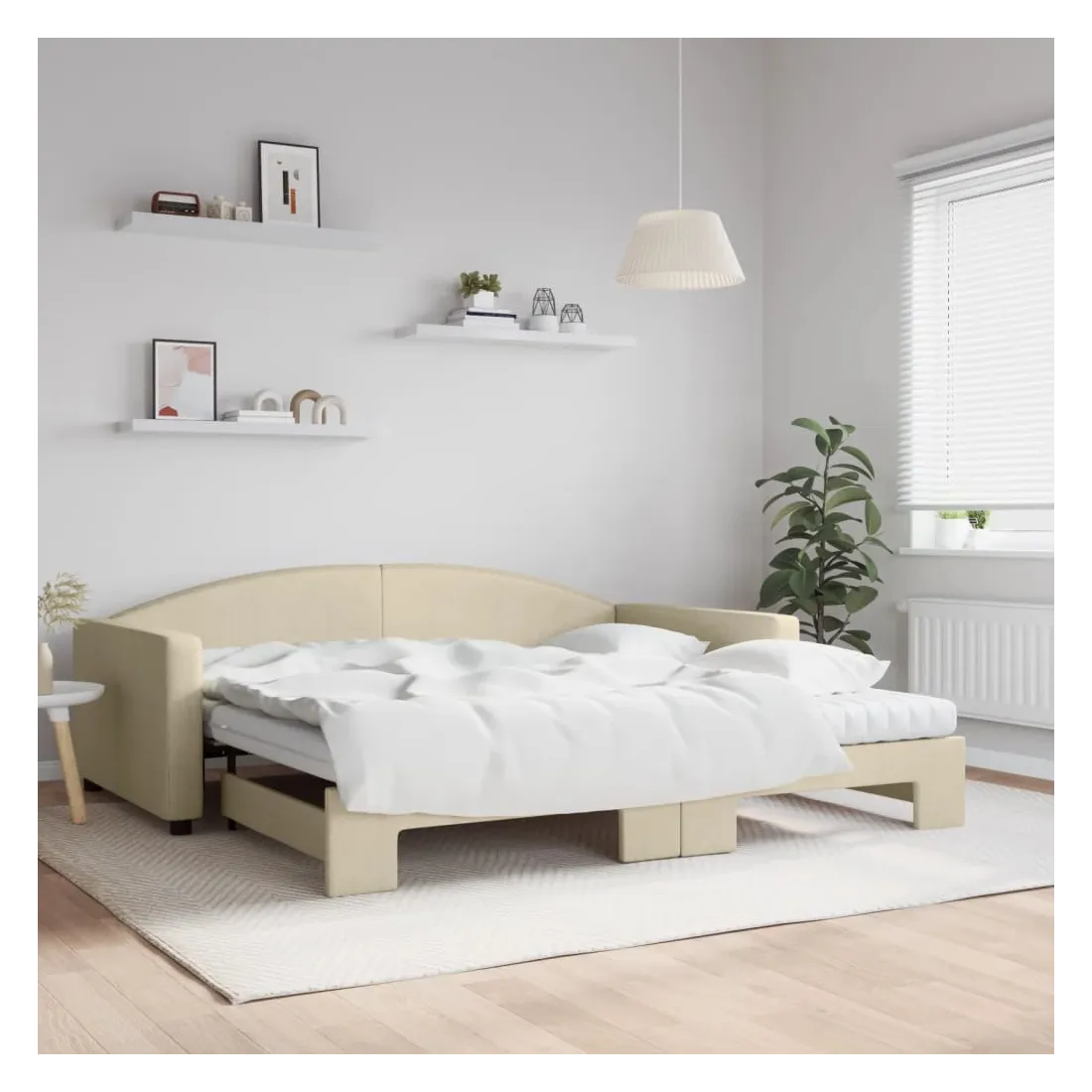 Ce lit de repos 2 en 1 avec lit gigogne, servant à la fois de canapé et de lit, constitue un supplément pratique et accrocheur à votre salon ou chambre à coucher. Lit de repos polyvalent : le canapé-lit fonctionne comme un canapé pendant la journée et se transforme facilement en lit double la nuit en retirant le lit gigogne, offrant une solution pratique pour accueillir des invités et maximiser l'espace.Matelas en mousse confortable : ce lit est fourni avec deux matelas en mousse pour un soutien maximal et un confort optimal.Tissu durable et construction solide : ce canapé-lit a une structure robuste en bois et en métal et est recouvert d'un tissu durable et confortable.Design moderne : le canapé-lit a un design moderne qui présente des lignes épurées, un aspect minimaliste, ainsi que de la lumière naturelle, et ajoutera un style moderne à votre intérieur !