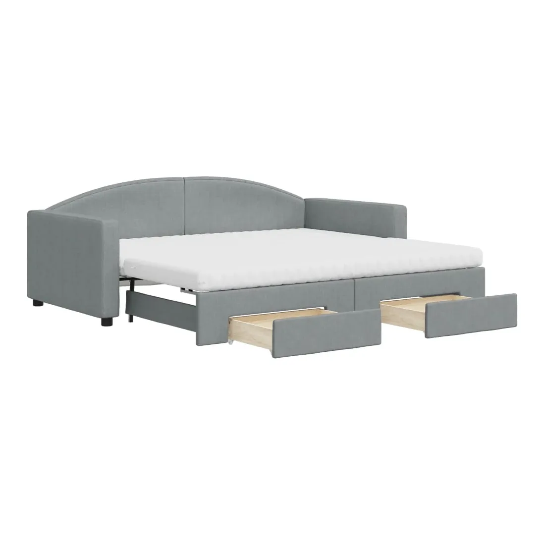 Ce lit de repos 2 en 1 avec lit gigogne, servant à la fois de canapé et de lit, constitue un supplément pratique et accrocheur à votre salon ou chambre à coucher. Lit de repos polyvalent : le canapé-lit fonctionne comme un canapé pendant la journée et se transforme facilement en lit double la nuit en retirant le lit gigogne, offrant une solution pratique pour accueillir des invités et maximiser l'espace.Grand espace de rangement : ce lit d'appoint dispose de deux tiroirs à roulettes qui offrent suffisamment d'espace pour ranger vos vêtements, chaussettes, jouets, coussins, etc.Matelas en mousse confortable : ce lit est fourni avec deux matelas en mousse pour un soutien maximal et un confort optimal.Tissu durable et construction solide : ce canapé-lit a une structure robuste en bois et en métal et est recouvert d'un tissu durable et confortable.