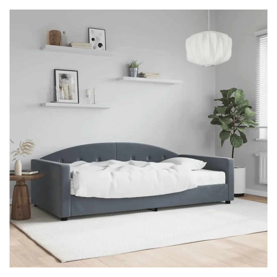 Ce lit de repos 2 en 1 avec matelas, servant à la fois de canapé et de lit, constitue un supplément pratique et accrocheur à votre salon ou votre chambre à coucher. Lit de repos polyvalent : le canapé-lit fonctionne comme un canapé pendant la journée et se transforme facilement en lit la nuit, offrant une solution pratique pour accueillir des invités et maximiser l'espace.Matelas en mousse confortable : ce lit est fourni avec un matelas en mousse pour un soutien maximal et un confort optimal. Velours doux et construction solide : ce canapé-lit a un cadre robuste en bois et en métal et est recouvert de velours doux et confortable.
