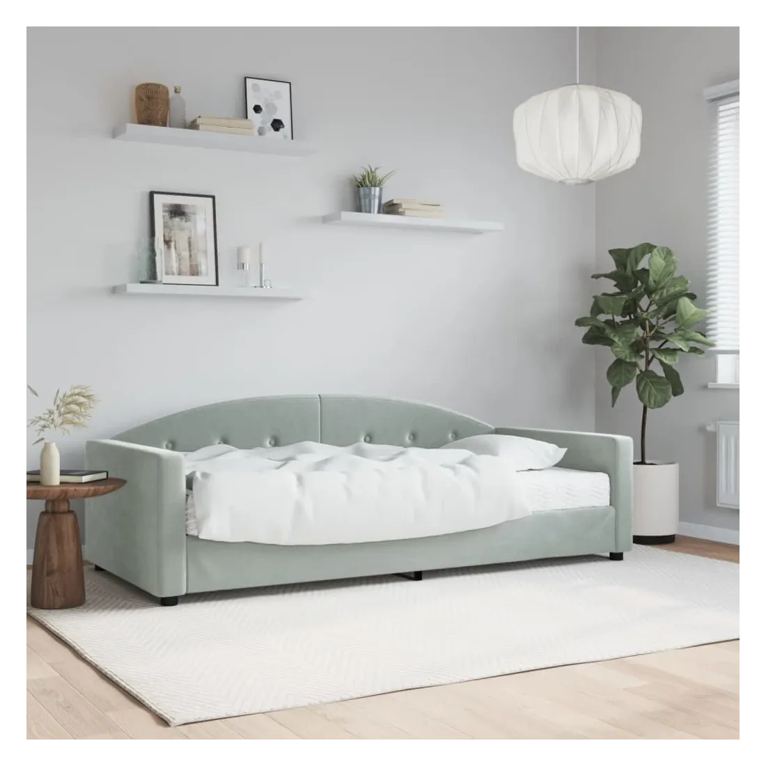Ce lit de repos 2 en 1 avec matelas, servant à la fois de canapé et de lit, constitue un supplément pratique et accrocheur à votre salon ou votre chambre à coucher. Lit de repos polyvalent : le canapé-lit fonctionne comme un canapé pendant la journée et se transforme facilement en lit la nuit, offrant une solution pratique pour accueillir des invités et maximiser l'espace.Matelas en mousse confortable : ce lit est fourni avec un matelas en mousse pour un soutien maximal et un confort optimal. Velours doux et construction solide : ce canapé-lit a un cadre robuste en bois et en métal et est recouvert de velours doux et confortable.