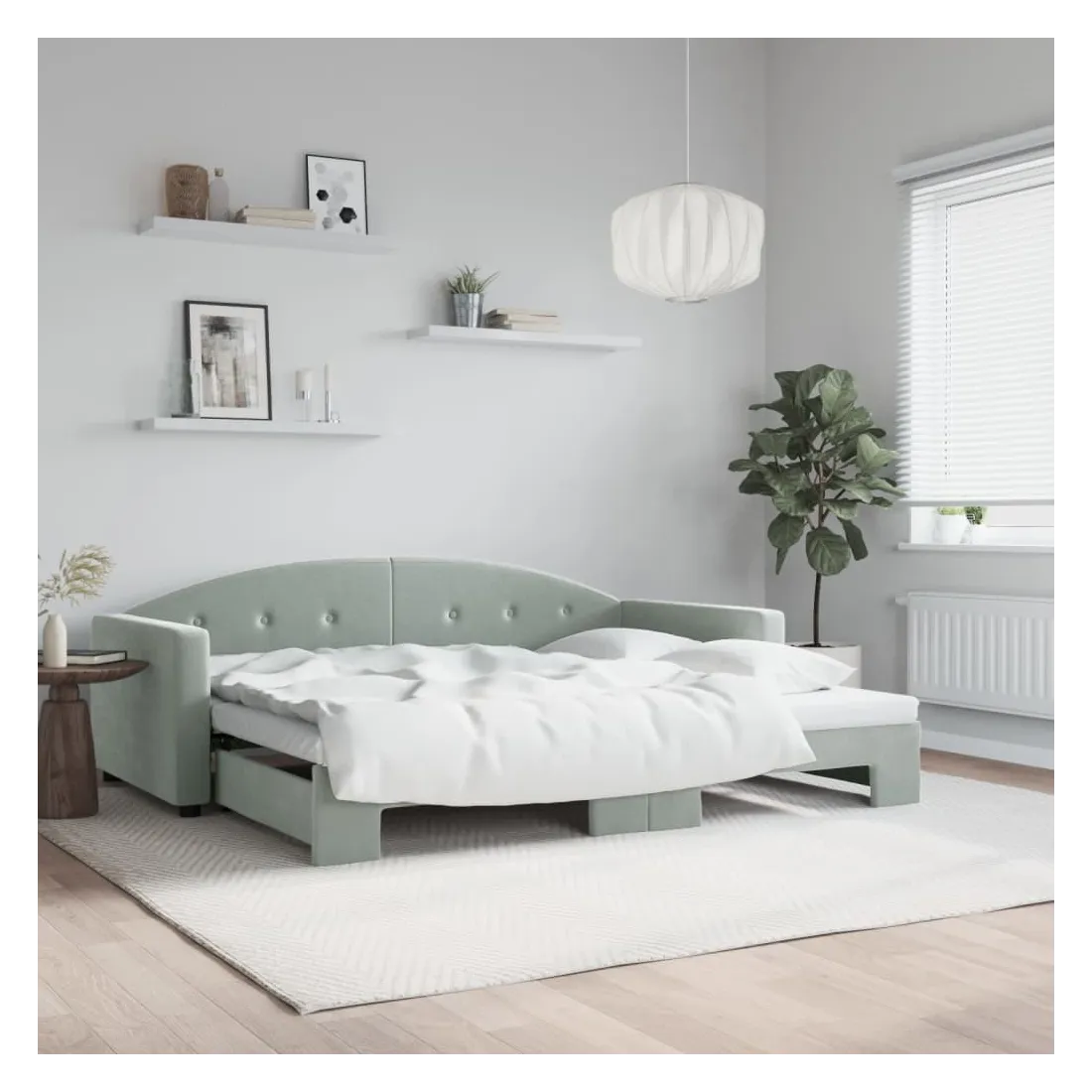 Ce lit de repos 2 en 1 avec lit gigogne, servant à la fois de canapé et de lit, constitue un supplément pratique et accrocheur à votre salon ou chambre à coucher. Lit de repos polyvalent : le canapé-lit fonctionne comme un canapé pendant la journée et se transforme facilement en lit double la nuit en retirant le lit gigogne, offrant une solution pratique pour accueillir des invités et maximiser l'espace.Velours doux et construction solide : ce canapé-lit a un cadre robuste en bois et en métal et est recouvert de velours doux et confortable.Design moderne : le canapé-lit a un design moderne qui présente des lignes épurées, un aspect minimaliste, ainsi que de la lumière naturelle, et ajoutera un style moderne à votre intérieur ! Bon à savoir :Les matelas ne sont pas inclus avec ce lit. Nous proposons une sélection variée de matelas. Vous pouvez consulter notre boutique pour trouver les matelas assortis.