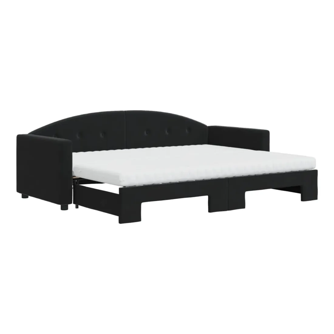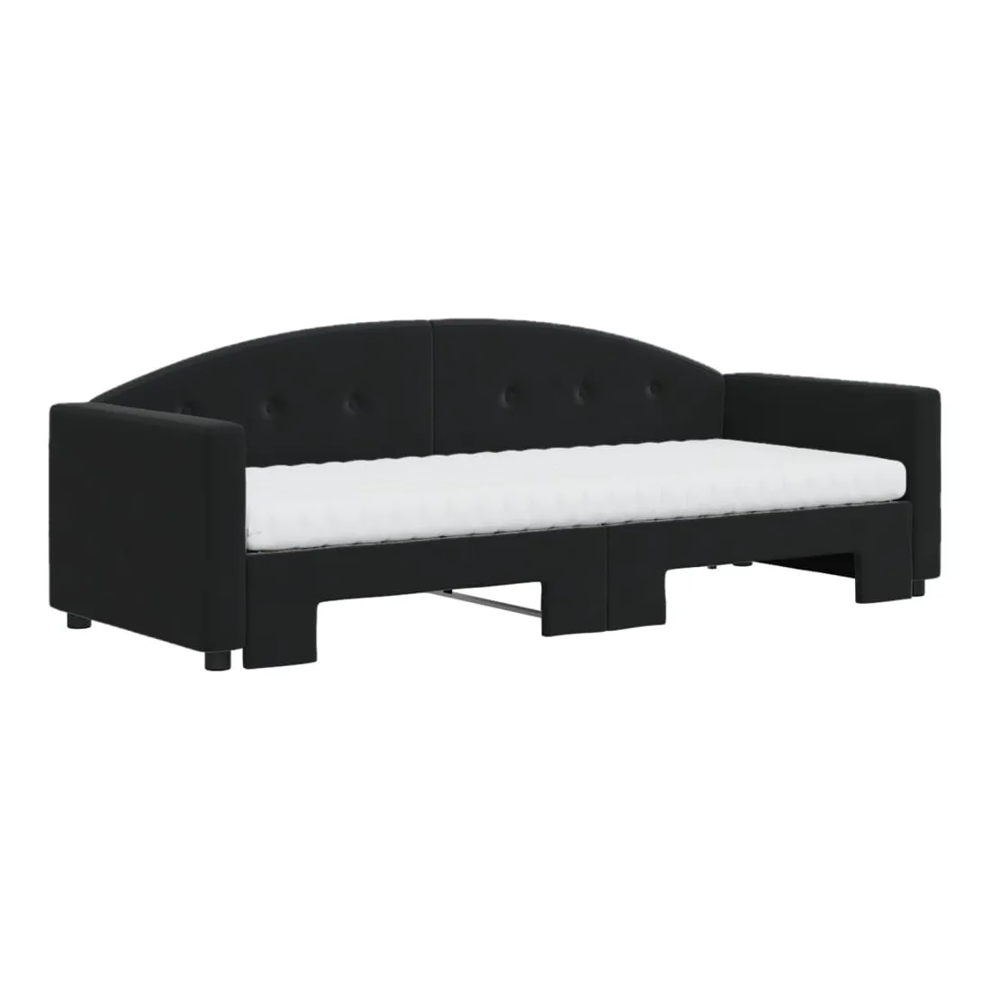 Ce lit de repos 2 en 1 avec lit gigogne et matelas, servant à la fois de canapé et de lit, constitue un supplément pratique et accrocheur à votre salon ou chambre à coucher. Lit de repos polyvalent : le canapé-lit fonctionne comme un canapé pendant la journée et se transforme facilement en lit double la nuit en retirant le lit gigogne, offrant une solution pratique pour accueillir des invités et maximiser l'espace.Matelas en mousse confortable : ce lit est fourni avec deux matelas en mousse pour un soutien maximal et un confort optimal. Velours doux et construction solide : ce canapé-lit a un cadre robuste en bois et en métal et est recouvert de velours doux et confortable.