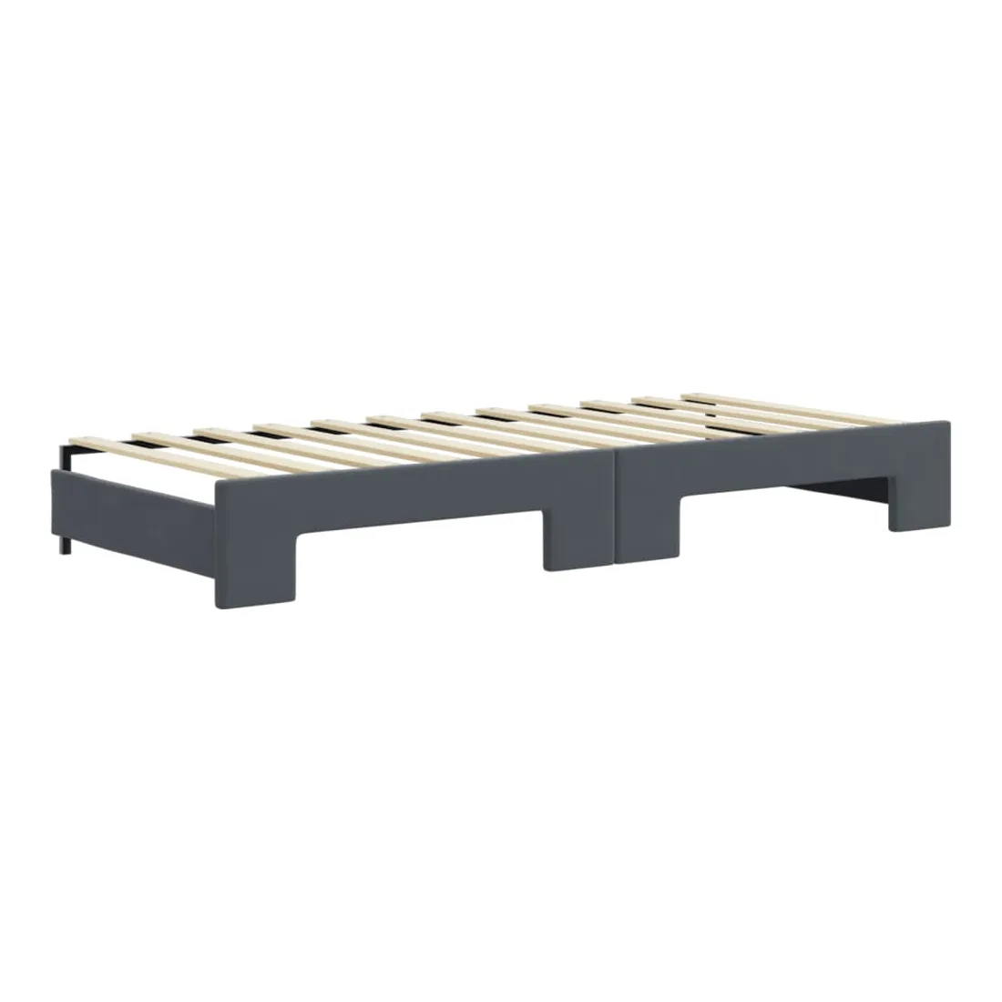 Ce lit de repos 2 en 1 avec lit gigogne et matelas, servant à la fois de canapé et de lit, constitue un supplément pratique et accrocheur à votre salon ou chambre à coucher. Lit de repos polyvalent : le canapé-lit fonctionne comme un canapé pendant la journée et se transforme facilement en lit double la nuit en retirant le lit gigogne, offrant une solution pratique pour accueillir des invités et maximiser l'espace.Matelas en mousse confortable : ce lit est fourni avec deux matelas en mousse pour un soutien maximal et un confort optimal. Velours doux et construction solide : ce canapé-lit a un cadre robuste en bois et en métal et est recouvert de velours doux et confortable.