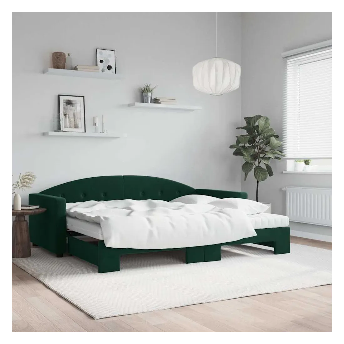 Ce lit de repos 2 en 1 avec lit gigogne et matelas, servant à la fois de canapé et de lit, constitue un supplément pratique et accrocheur à votre salon ou chambre à coucher. Lit de repos polyvalent : le canapé-lit fonctionne comme un canapé pendant la journée et se transforme facilement en lit double la nuit en retirant le lit gigogne, offrant une solution pratique pour accueillir des invités et maximiser l'espace.Matelas en mousse confortable : ce lit est fourni avec deux matelas en mousse pour un soutien maximal et un confort optimal. Velours doux et construction solide : ce canapé-lit a un cadre robuste en bois et en métal et est recouvert de velours doux et confortable.