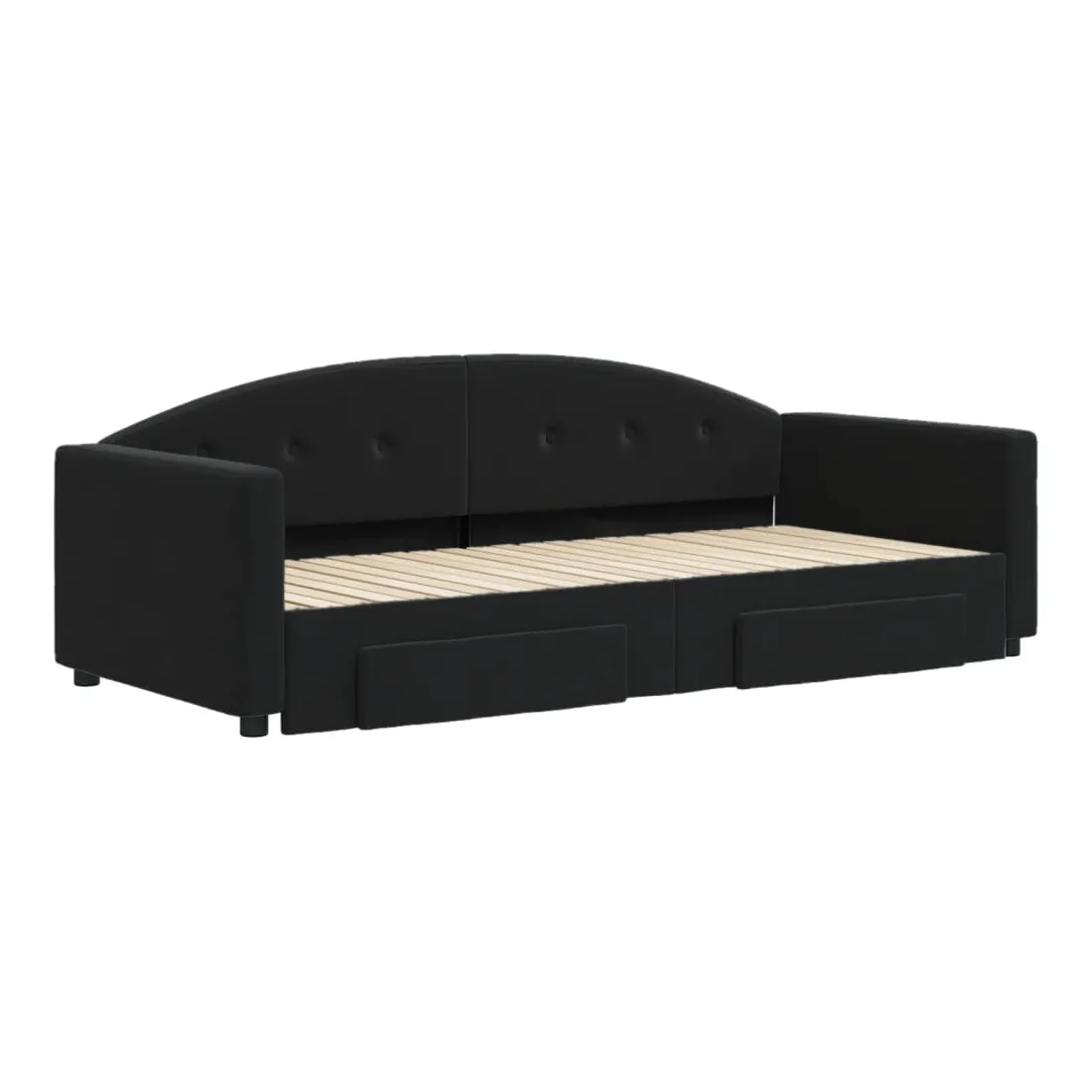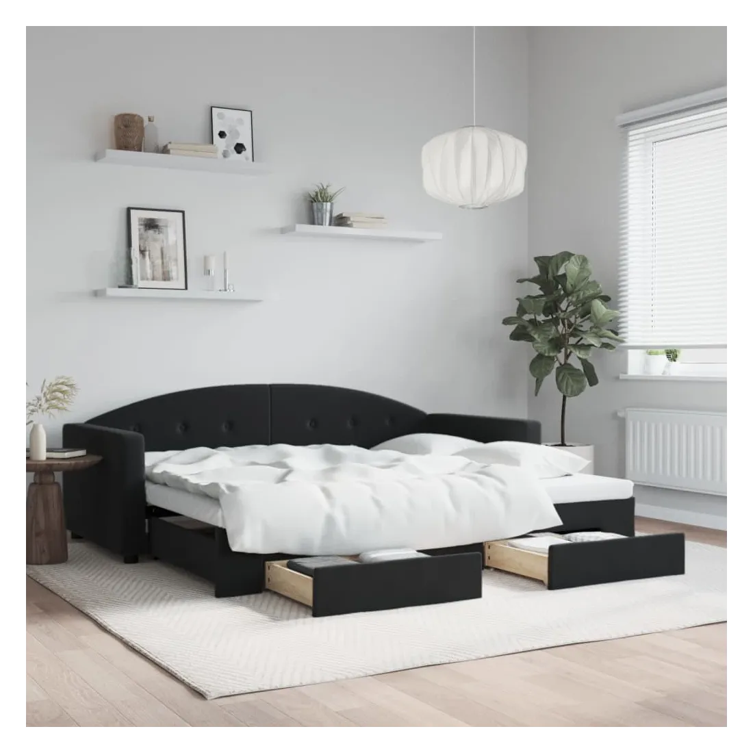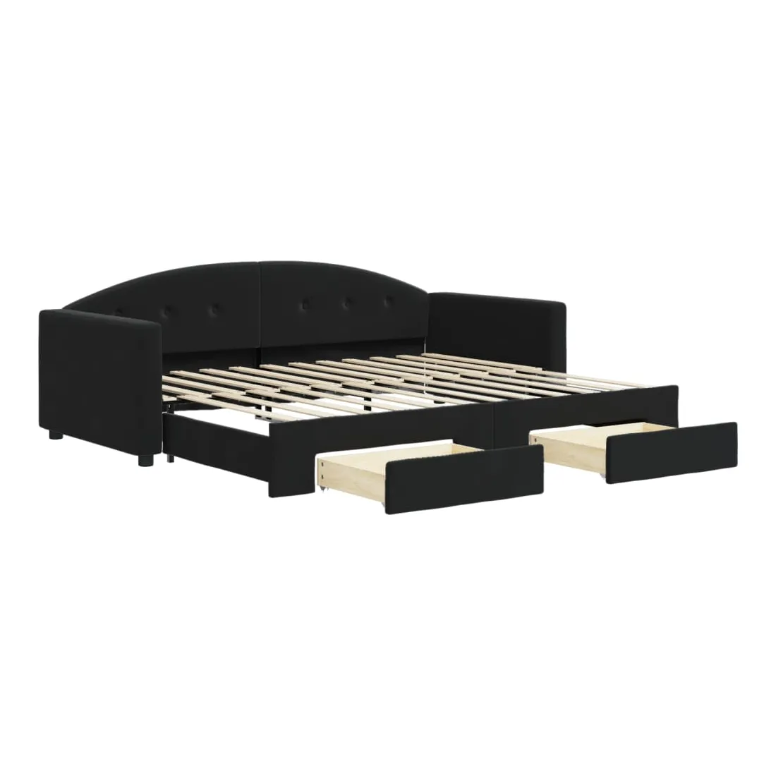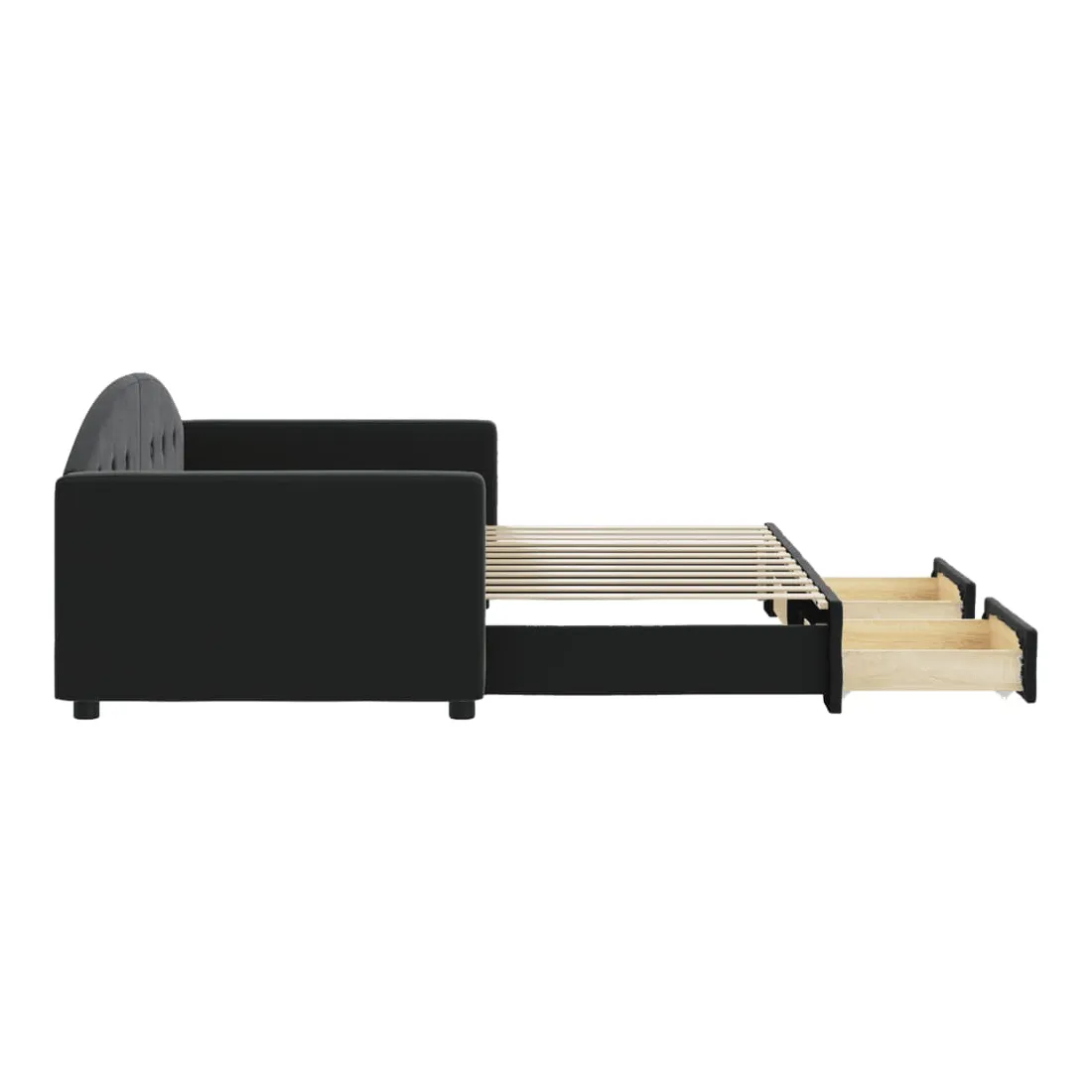 Ce lit de repos 2 en 1 avec lit gigogne et tiroirs, servant à la fois de canapé et de lit, constitue un ajout pratique et accrocheur à votre salon ou chambre à coucher. Lit de repos polyvalent : le canapé-lit fonctionne comme un canapé pendant la journée et se transforme facilement en lit double la nuit en retirant le lit gigogne, offrant une solution pratique pour accueillir des invités et maximiser l'espace.Grand espace de rangement : ce lit d'appoint dispose de deux tiroirs à roulettes qui offrent suffisamment d'espace pour ranger vos vêtements, chaussettes, jouets, coussins, etc.Velours doux et construction solide : ce canapé-lit a un cadre robuste en bois et en métal et est recouvert de velours doux et confortable. Bon à savoir :Les matelas ne sont pas inclus avec ce lit. Nous proposons une sélection variée de matelas. Vous pouvez consulter notre boutique pour trouver les matelas assortis.