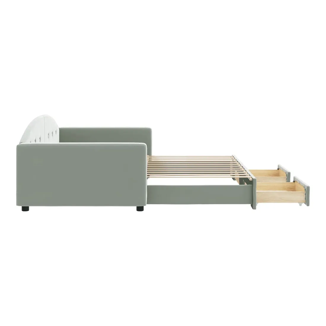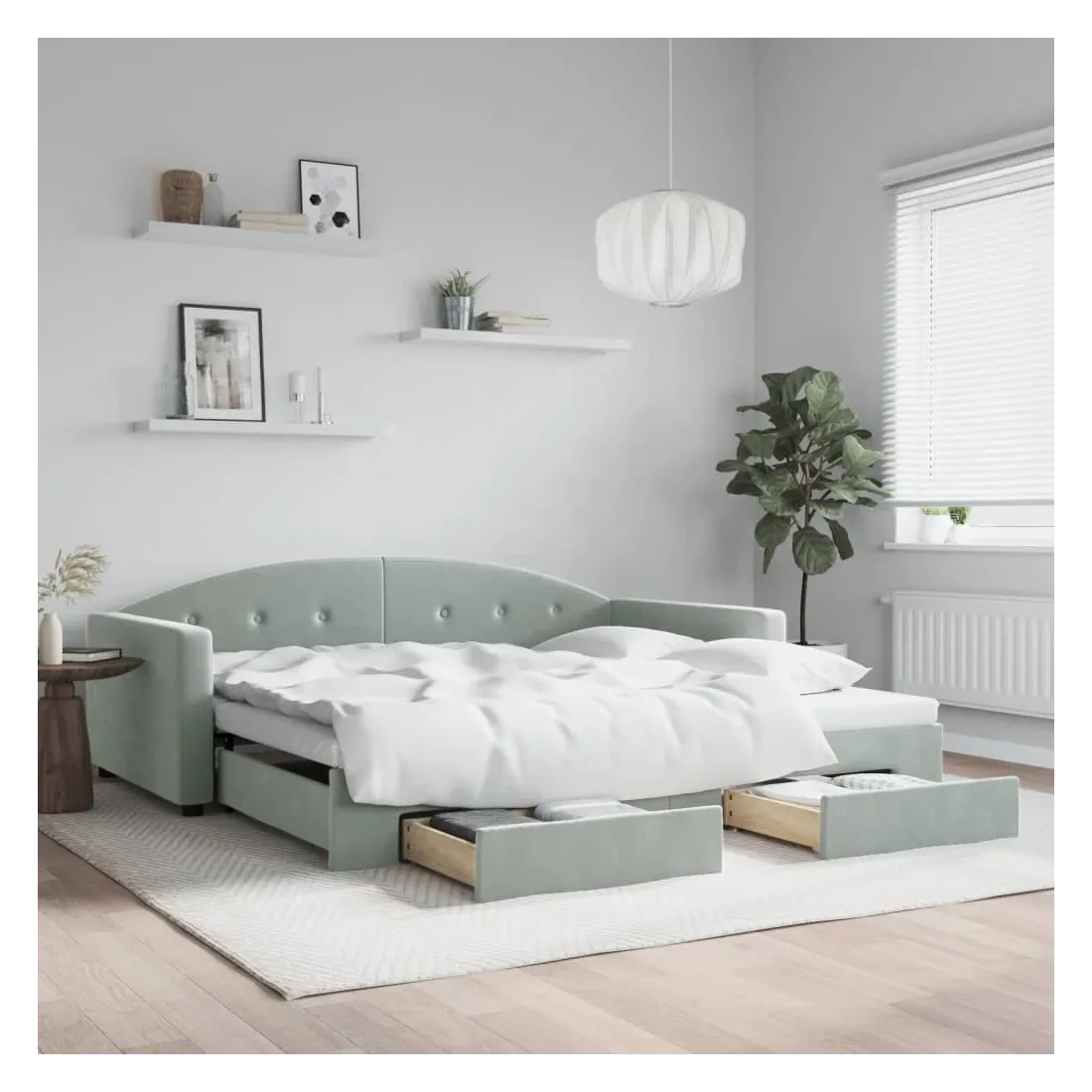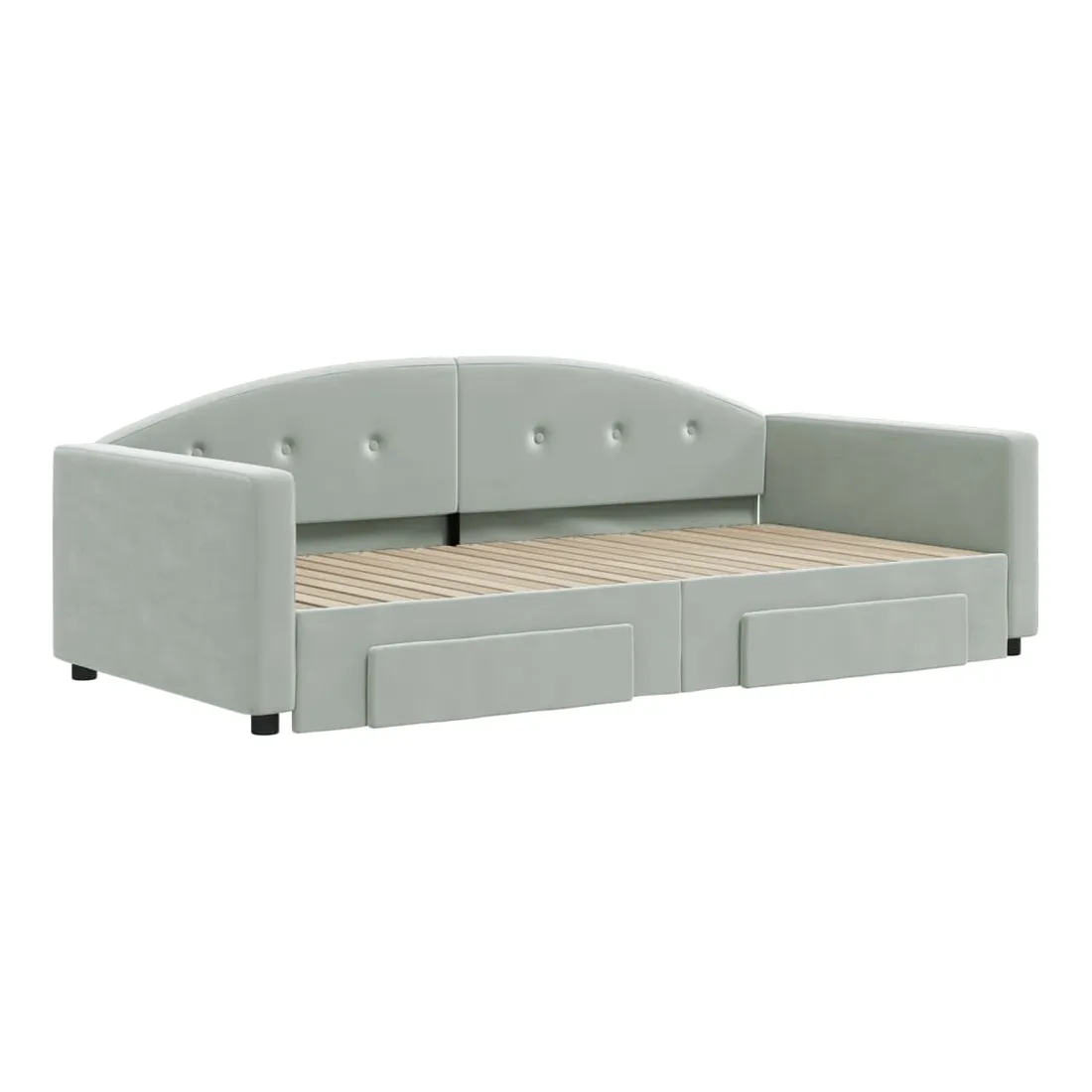 Ce lit de repos 2 en 1 avec lit gigogne et tiroirs, servant à la fois de canapé et de lit, constitue un ajout pratique et accrocheur à votre salon ou chambre à coucher. Lit de repos polyvalent : le canapé-lit fonctionne comme un canapé pendant la journée et se transforme facilement en lit double la nuit en retirant le lit gigogne, offrant une solution pratique pour accueillir des invités et maximiser l'espace.Grand espace de rangement : ce lit d'appoint dispose de deux tiroirs à roulettes qui offrent suffisamment d'espace pour ranger vos vêtements, chaussettes, jouets, coussins, etc.Velours doux et construction solide : ce canapé-lit a un cadre robuste en bois et en métal et est recouvert de velours doux et confortable. Bon à savoir :Les matelas ne sont pas inclus avec ce lit. Nous proposons une sélection variée de matelas. Vous pouvez consulter notre boutique pour trouver les matelas assortis.