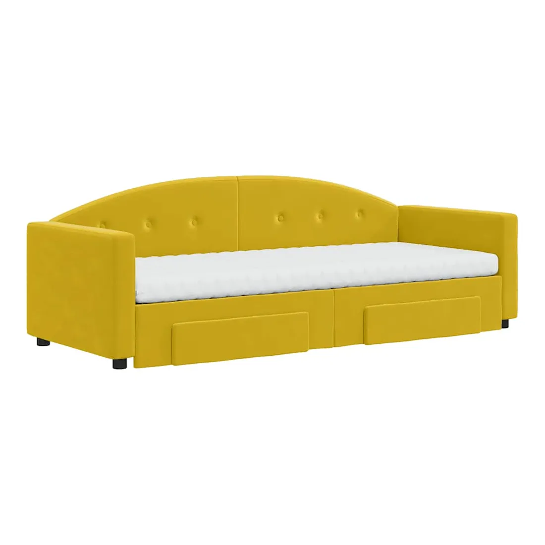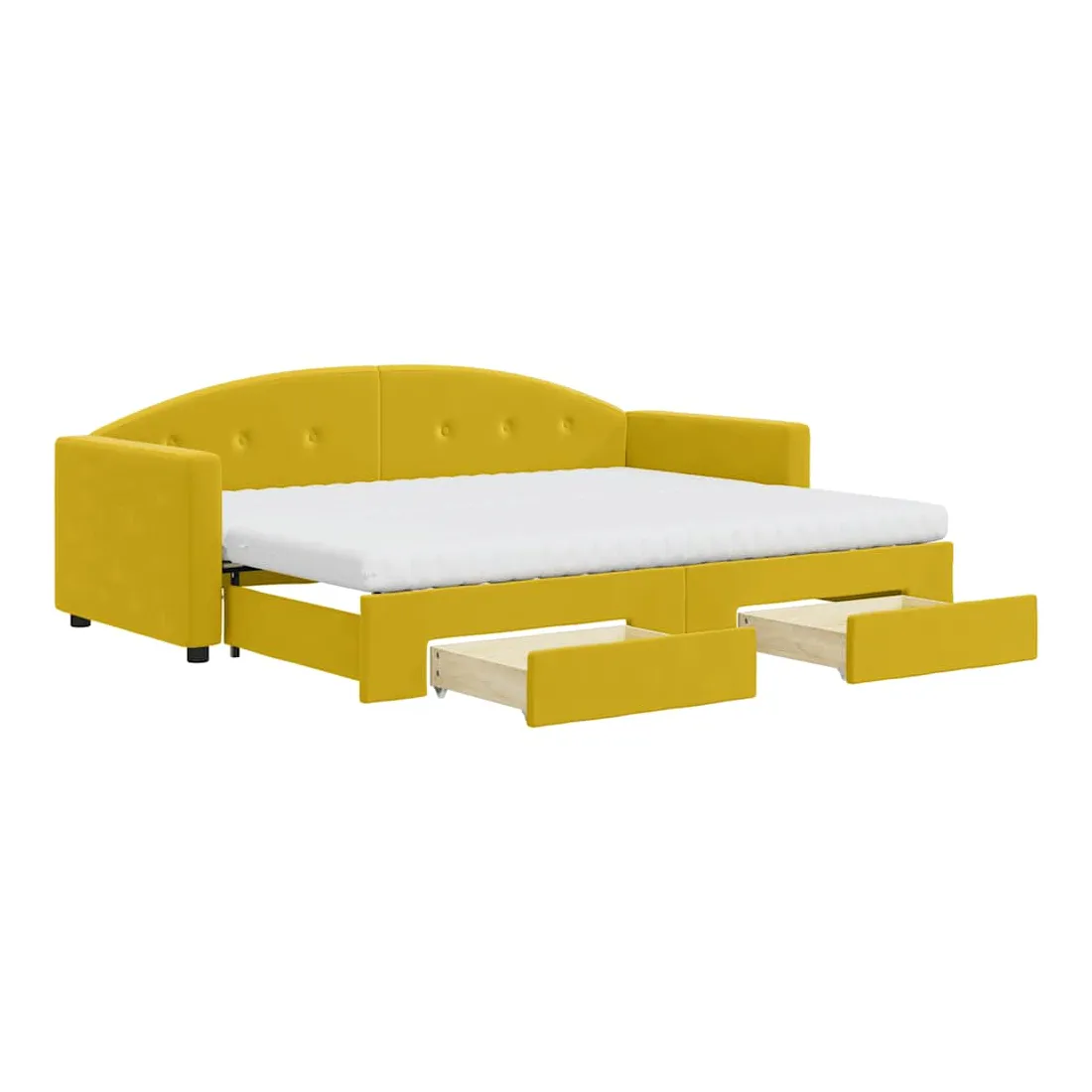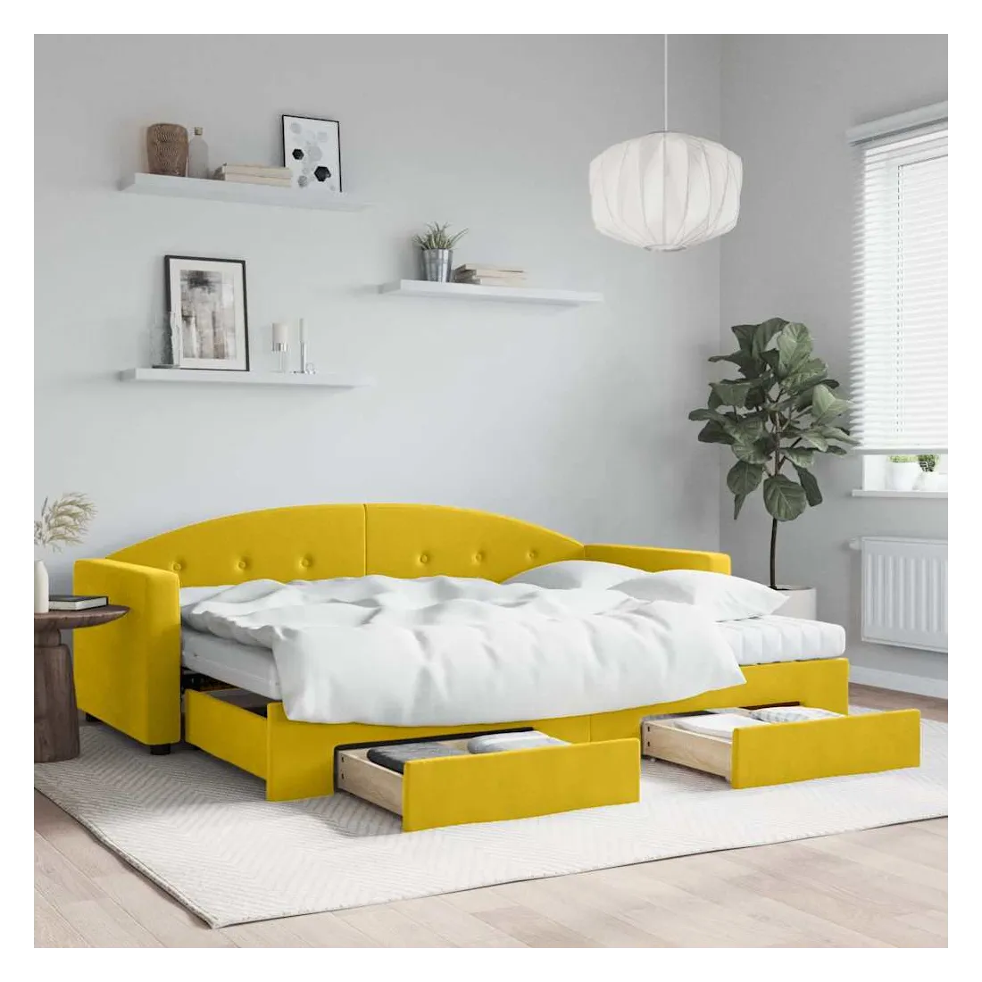 Lit de jour avec gigogne et tiroirs jaune 80x200 cm velours