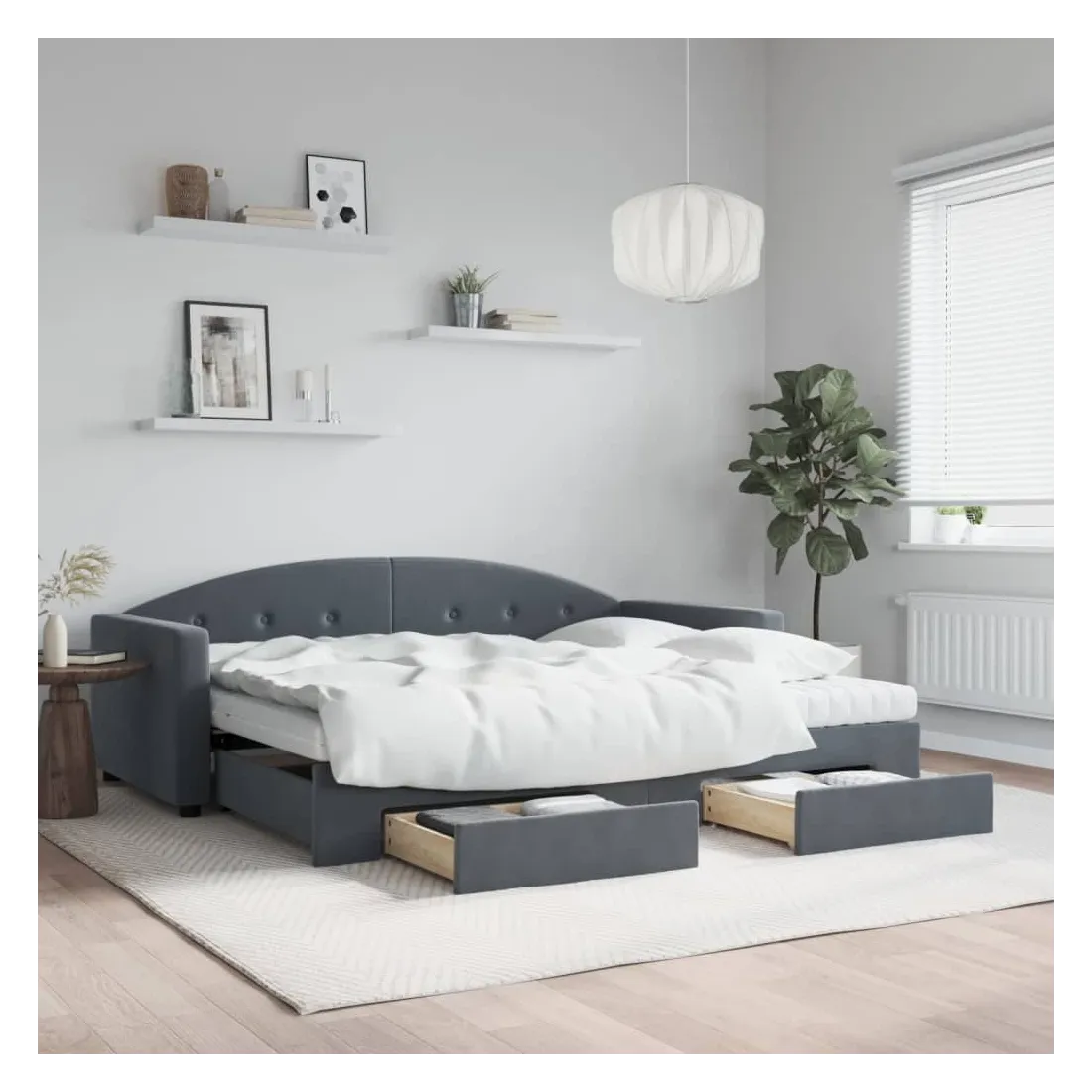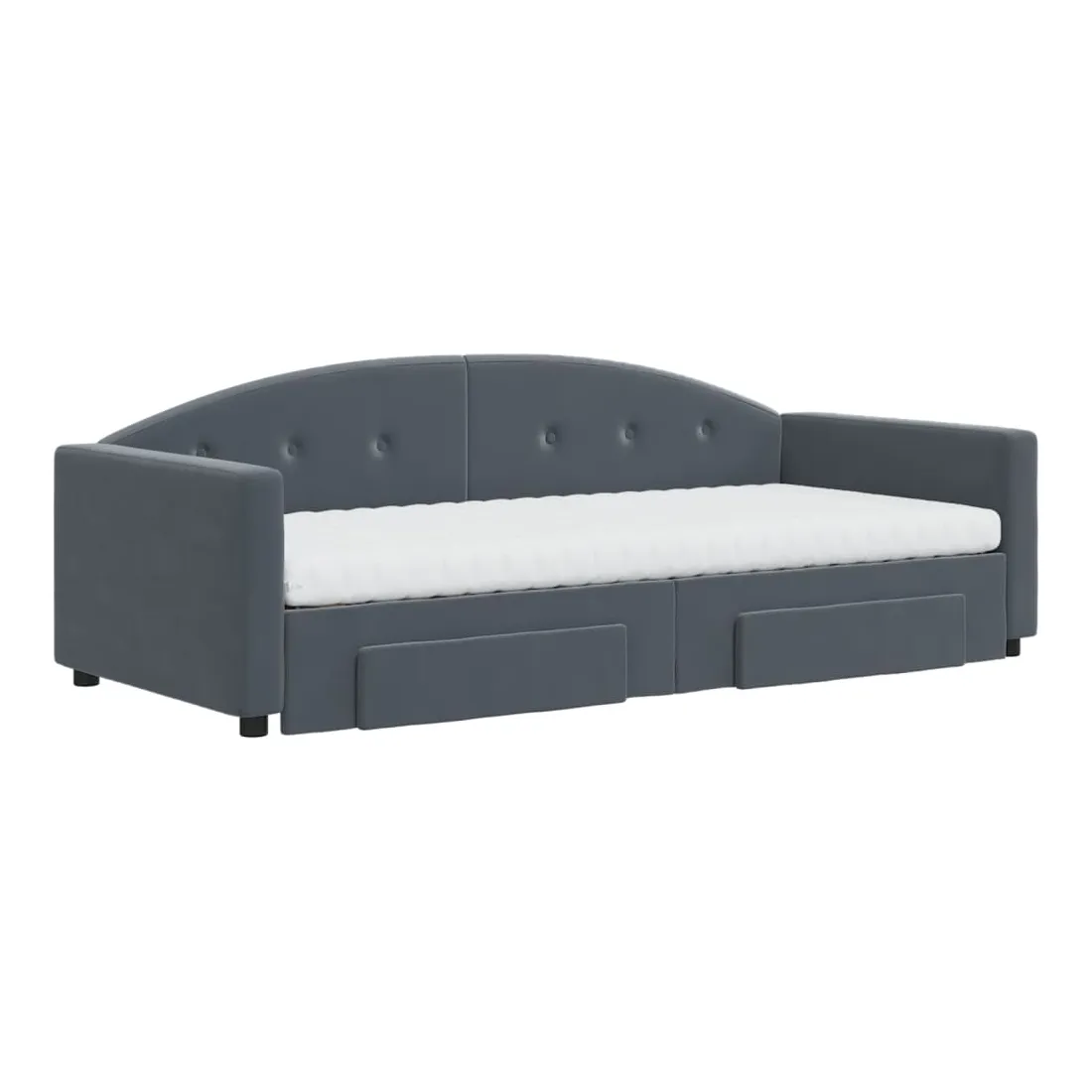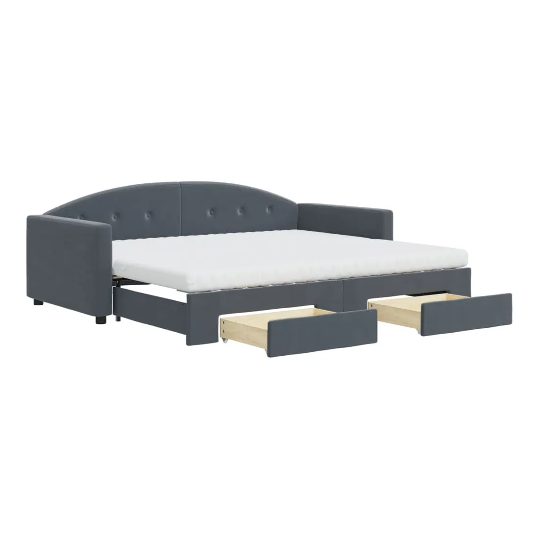 Ce lit de repos 2 en 1 avec lit gigogne et tiroirs, servant à la fois de canapé et de lit, constitue un ajout pratique et accrocheur à votre salon ou chambre à coucher. Lit de repos polyvalent : le canapé-lit fonctionne comme un canapé pendant la journée et se transforme facilement en lit double la nuit en retirant le lit gigogne, offrant une solution pratique pour accueillir des invités et maximiser l'espace. Grand espace de rangement : ce lit d'appoint dispose de deux tiroirs à roulettes qui offrent suffisamment d'espace pour ranger vos vêtements, chaussettes, jouets, coussins, etc. Matelas en mousse confortable : ce lit est fourni avec deux matelas en mousse pour un soutien maximal et un confort optimal. Velours doux et construction solide : ce canapé-lit a un cadre robuste en bois et en métal et est recouvert de velours doux et confortable.